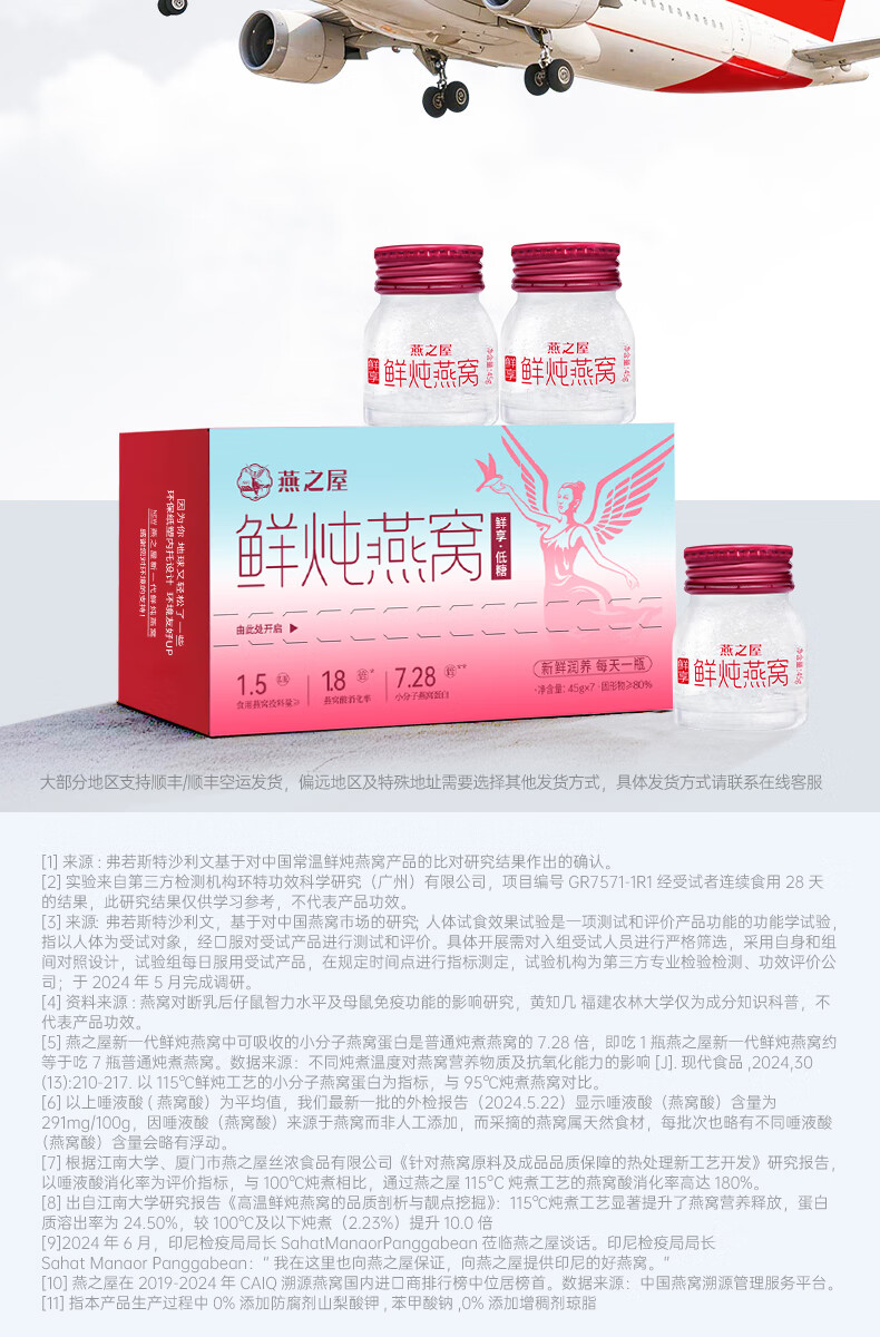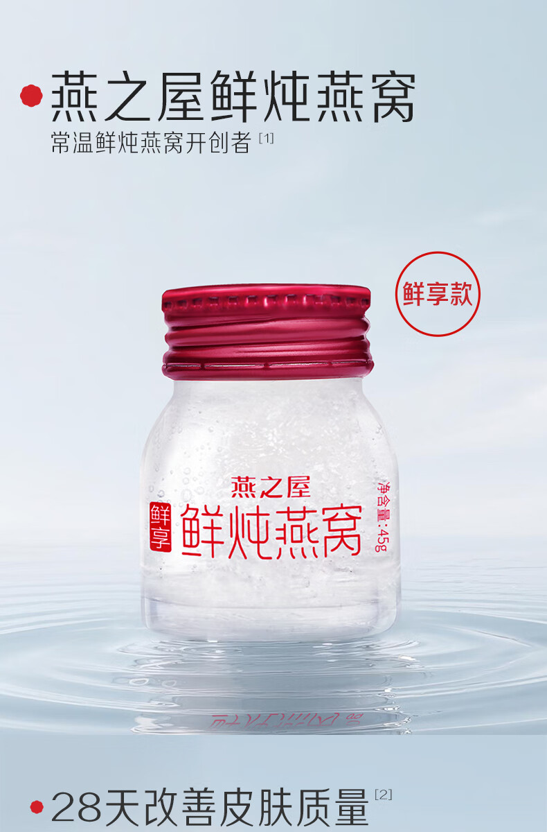 燕之屋鲜炖燕窝冰糖营养滋补【投料1.5g】孕妇礼品即食燕窝鲜享款45g 45g*28瓶 【低糖款】周套餐