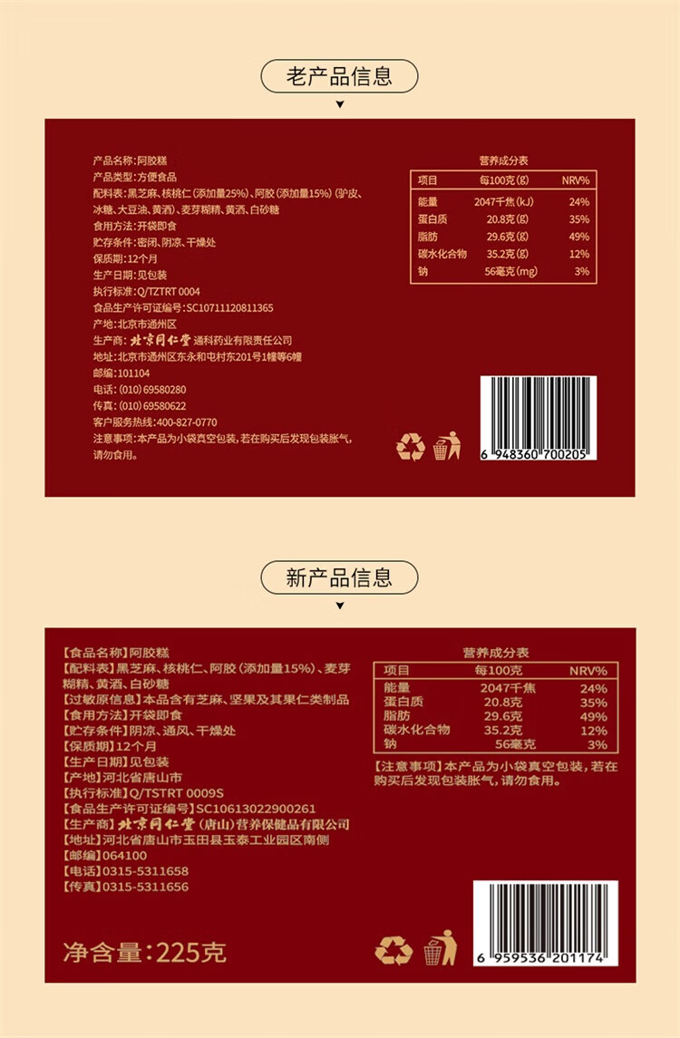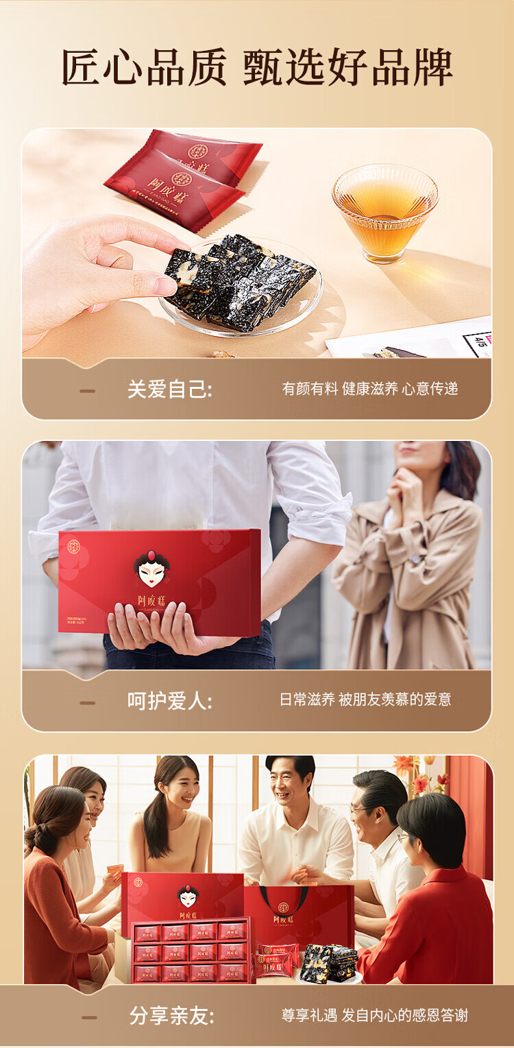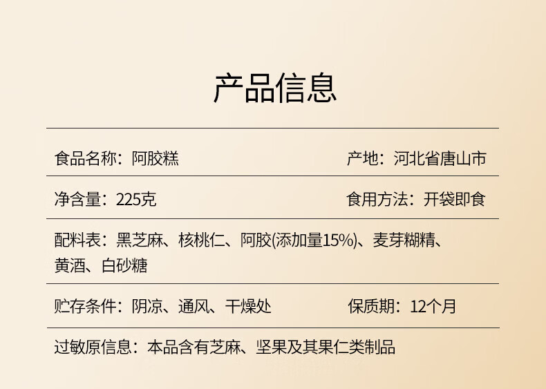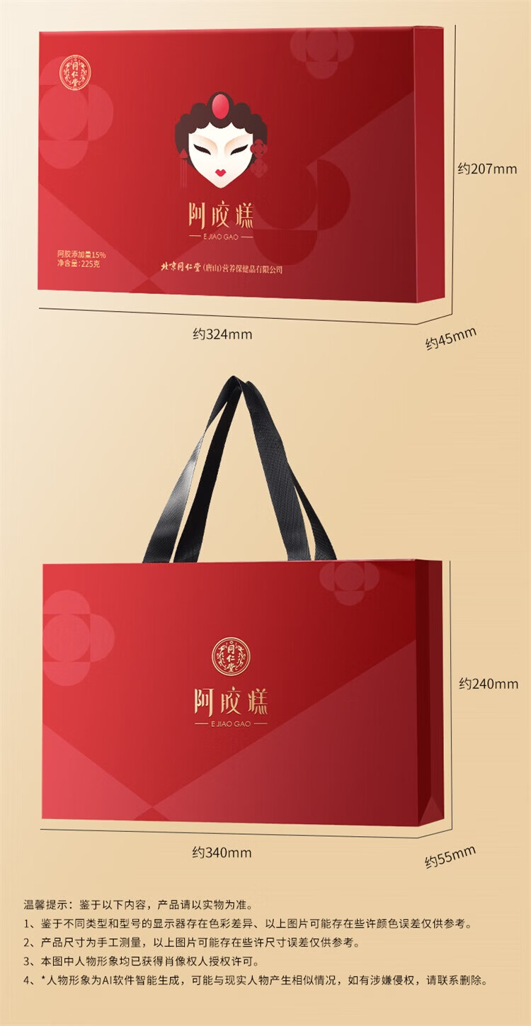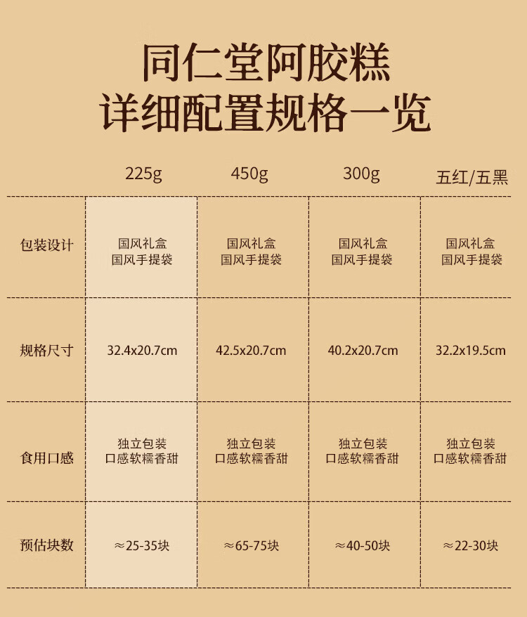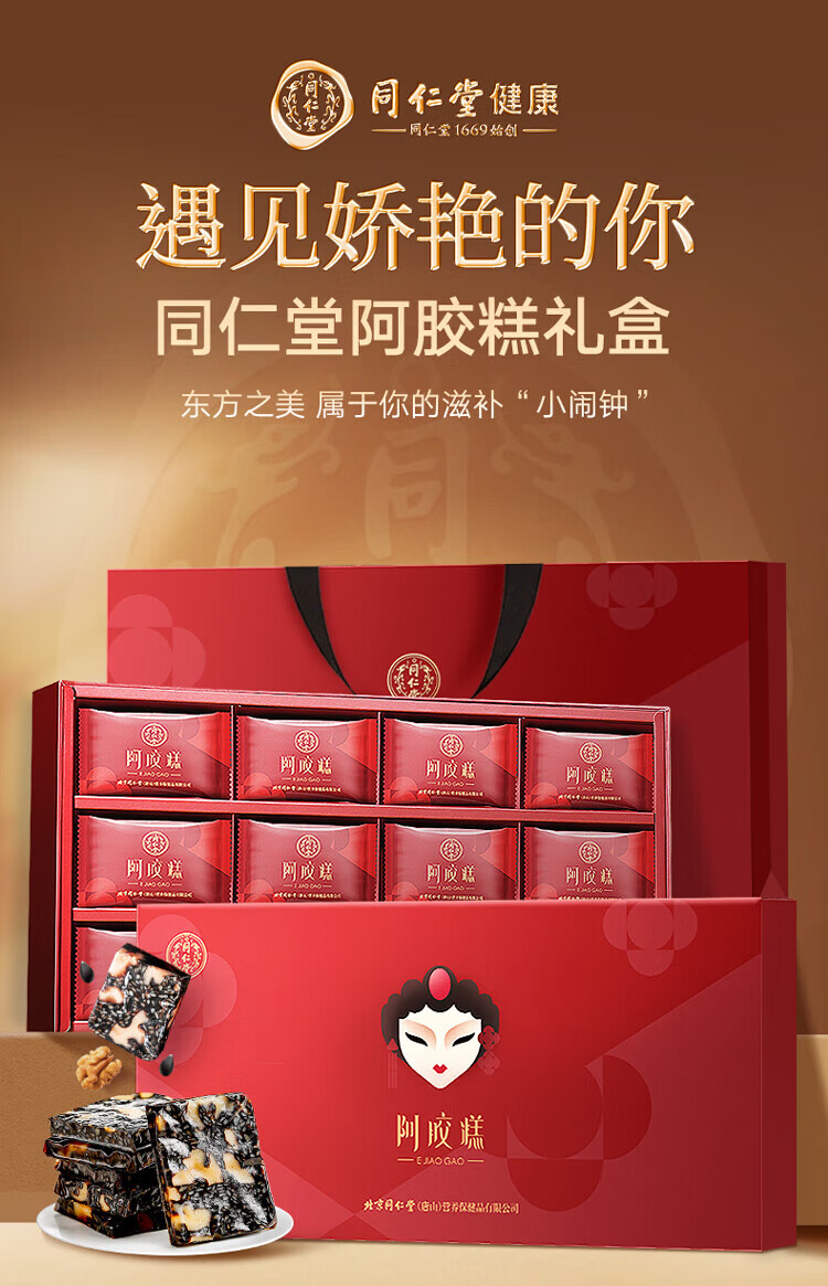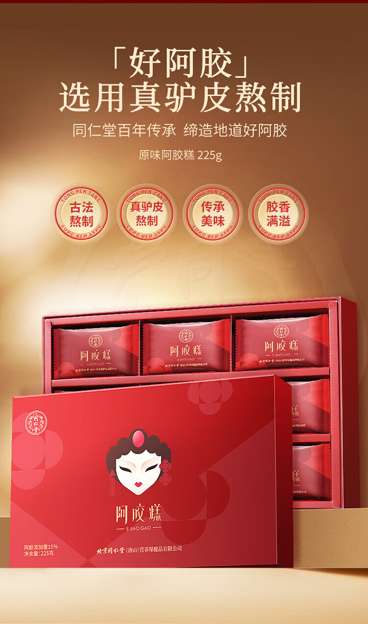 北京同仁堂 阿胶糕阿胶礼盒(15%阿胶)营养补品气血送妈妈长辈新年结婚礼物 【精致伴手礼】阿胶糕礼盒 225g*1盒