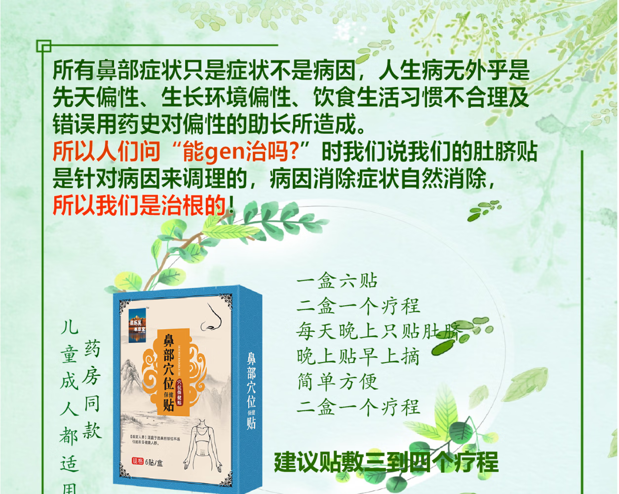 喜乐至 本草堂鼻炎肚脐贴儿童成人过敏性鼻炎鼻窦炎急慢性鼻炎鼻甲肥大鼻塞二盒 二盒一个疗程