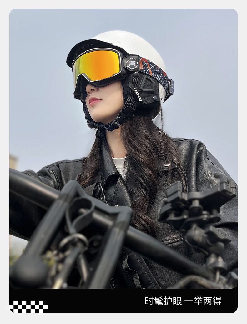 乐凯奇(LECAGE)摩托车风镜头盔护目镜男女复古机车骑行镜防风防晒近视风镜 黑框炫红变色(日夜两用)