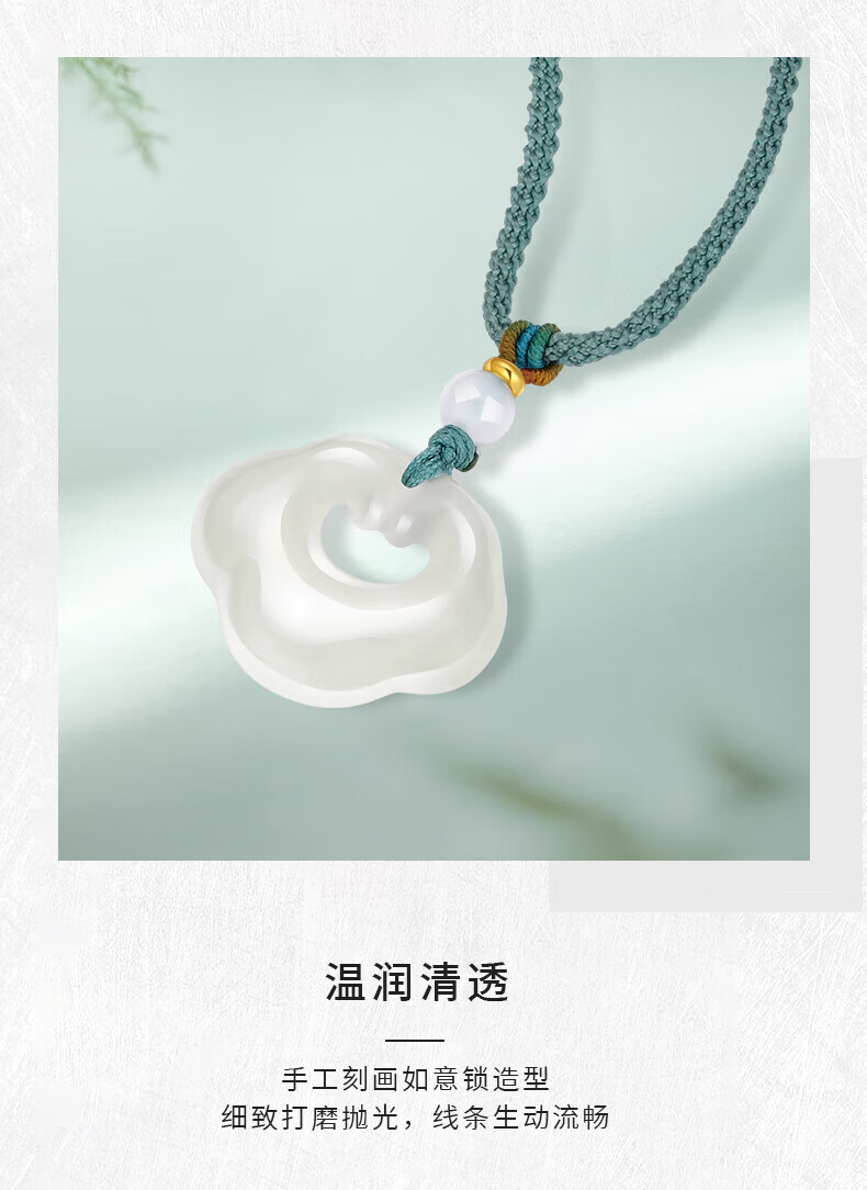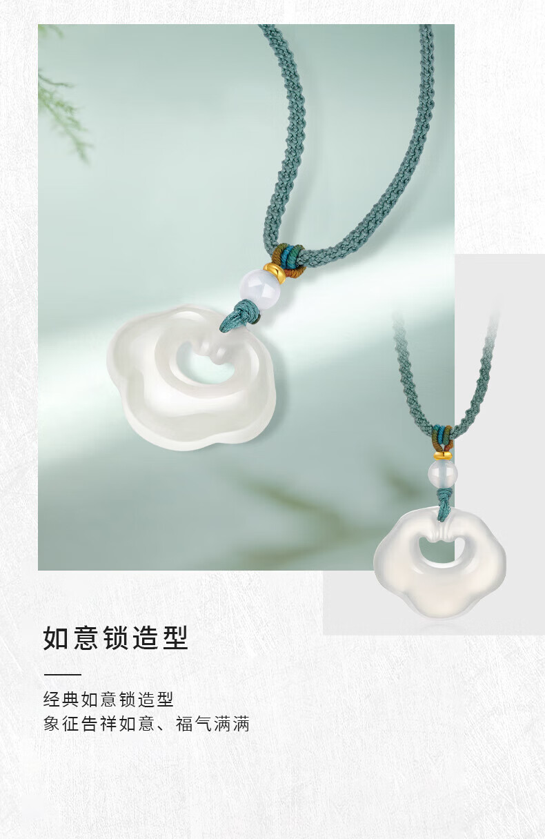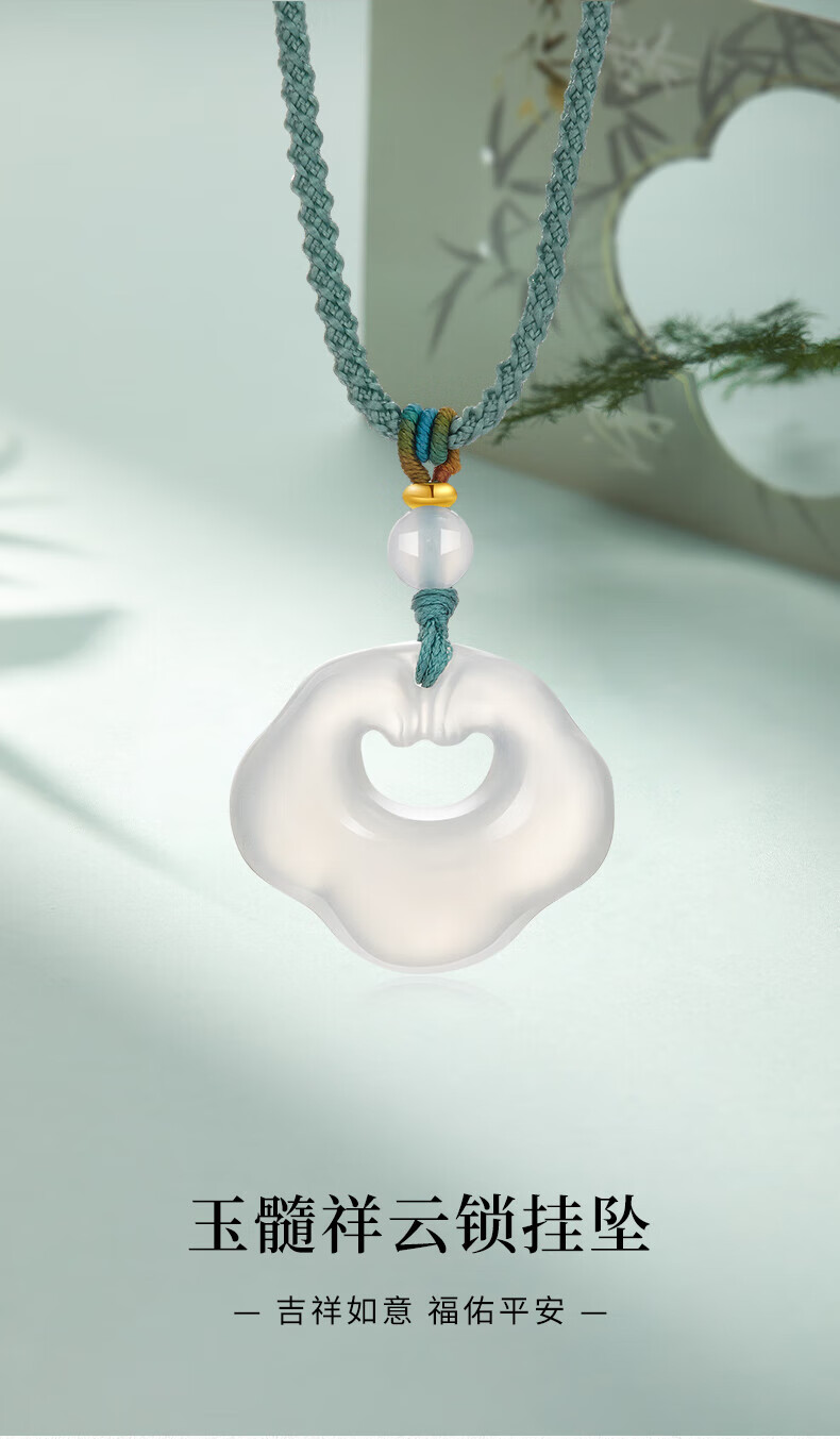 老凤祥祥云玉髓吊坠女冰透如意锁玉髓项链送女友送老婆圣诞节生日礼物 玉髓吊坠