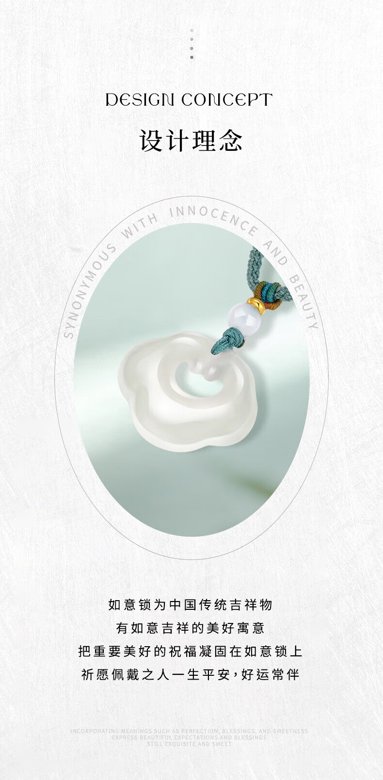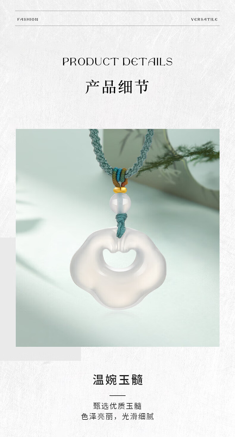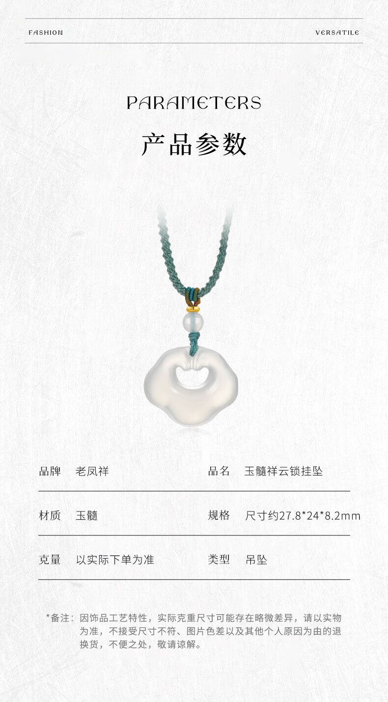 老凤祥祥云玉髓吊坠女冰透如意锁玉髓项链送女友送老婆圣诞节生日礼物 玉髓吊坠