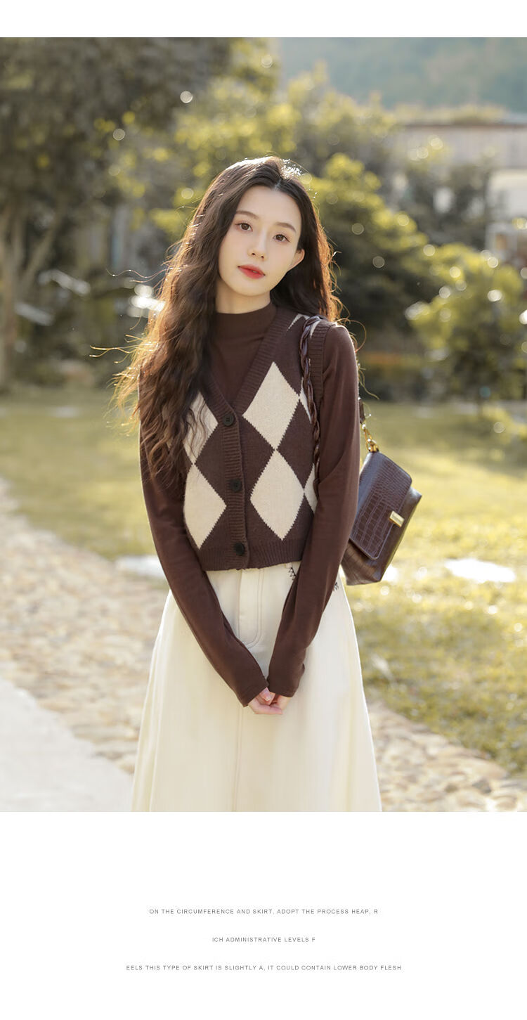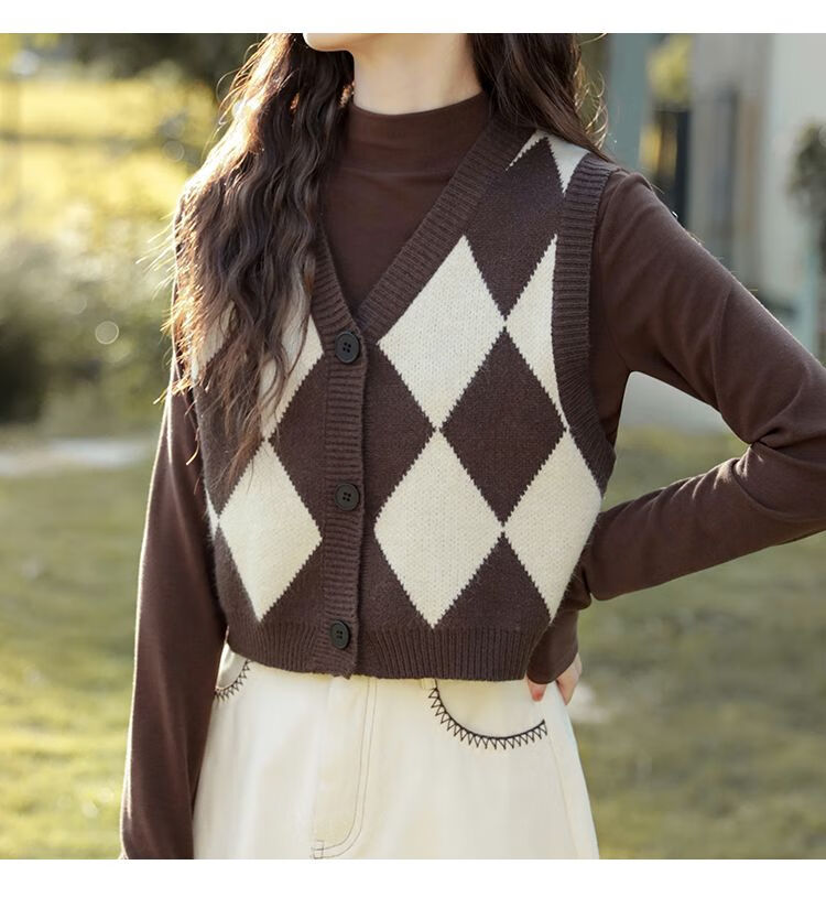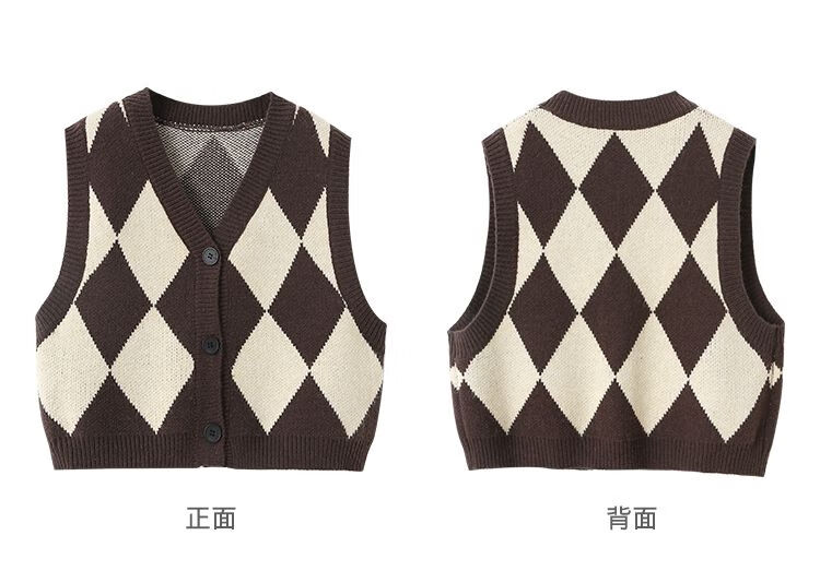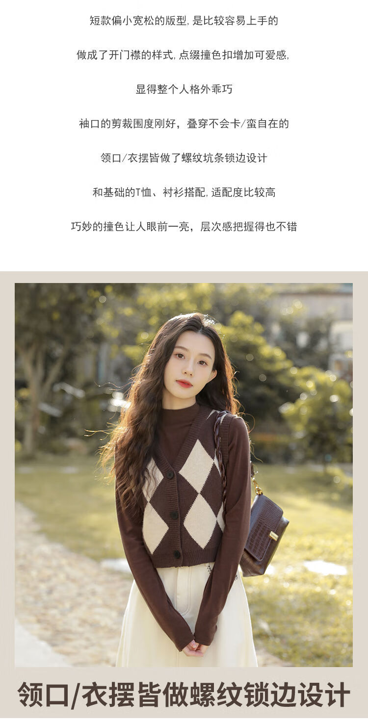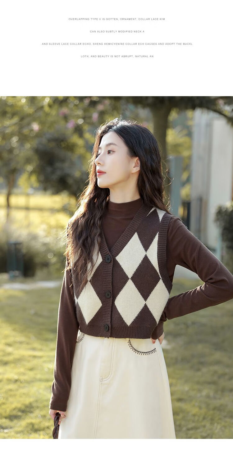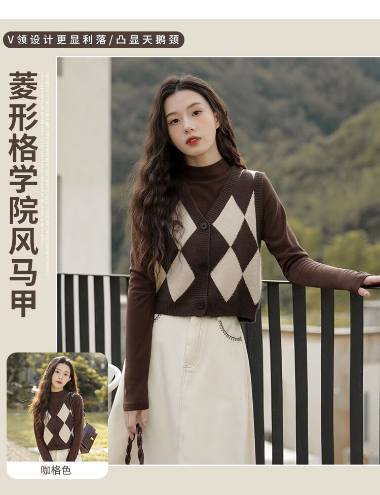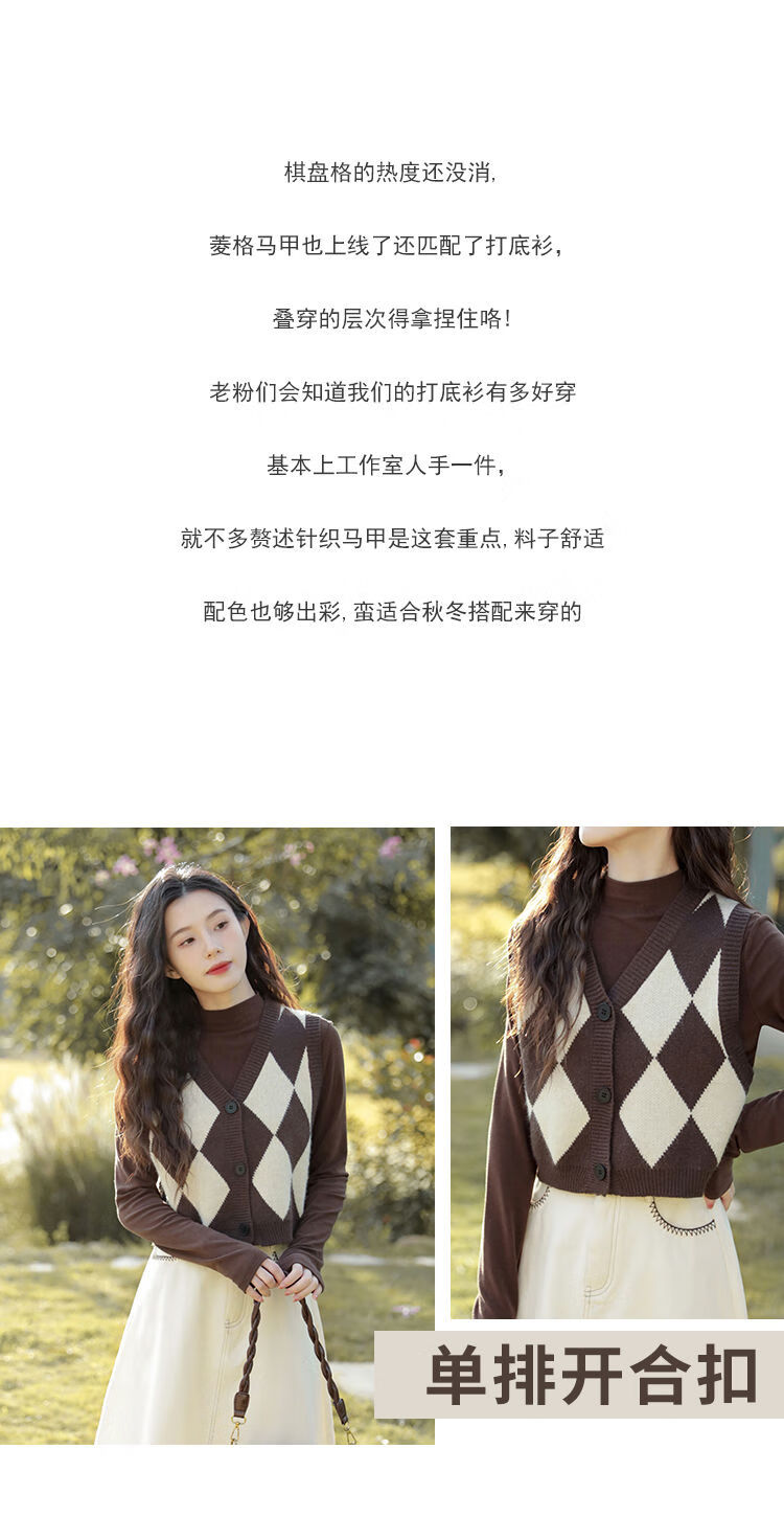 皮尔卡丹2025年春秋开衫上衣复古叠穿毛衣马夹菱格针织短款背心马甲女 黑+杏 马甲单件 M 90-105斤