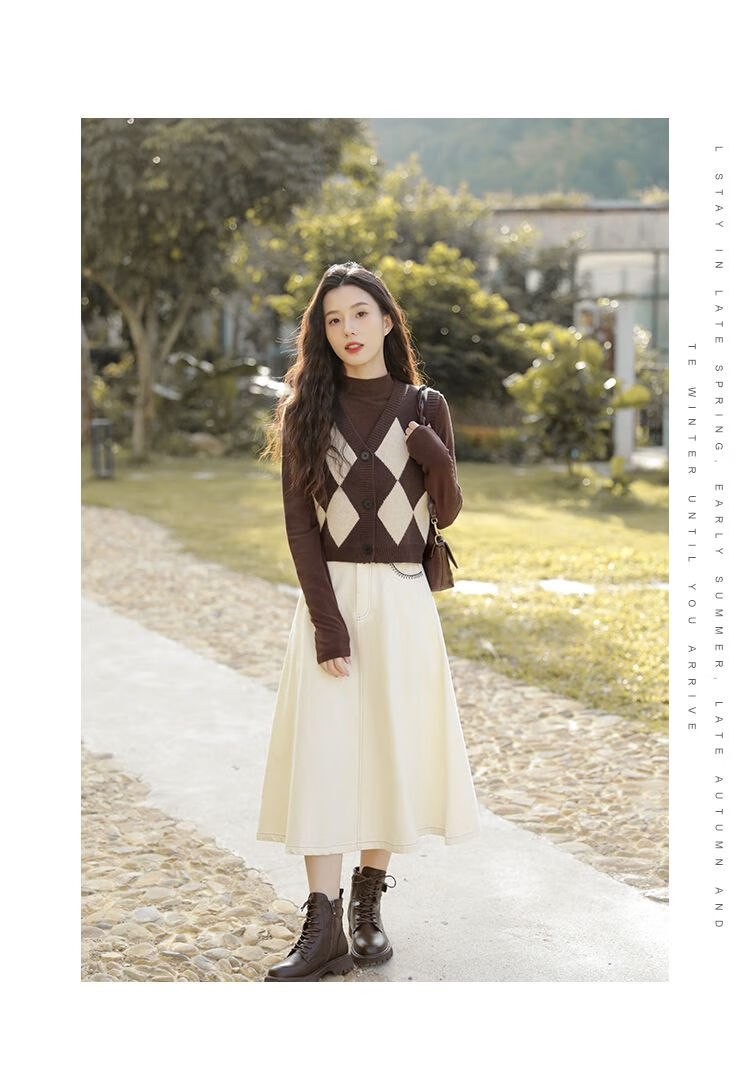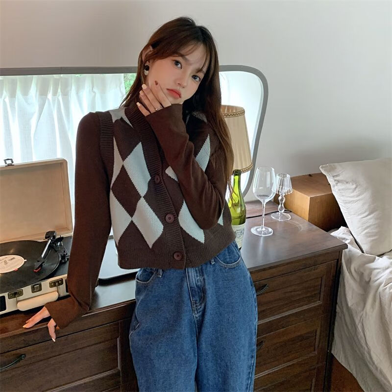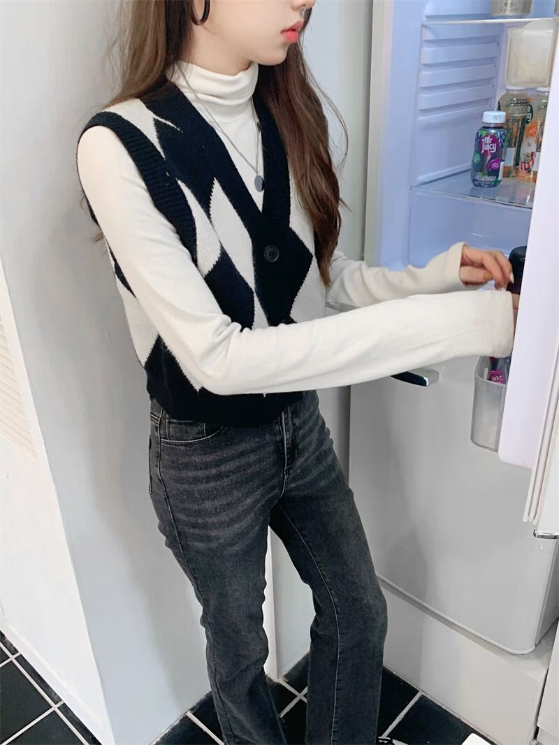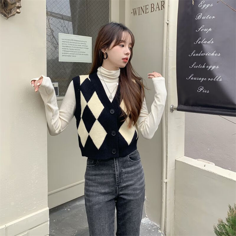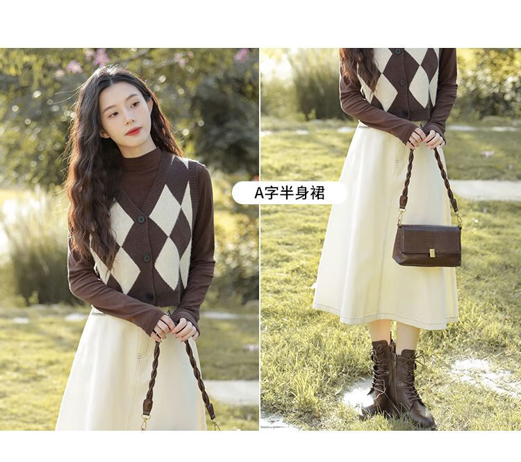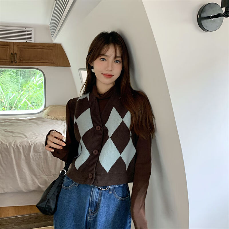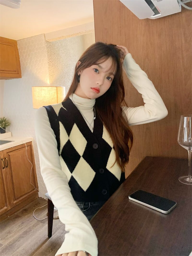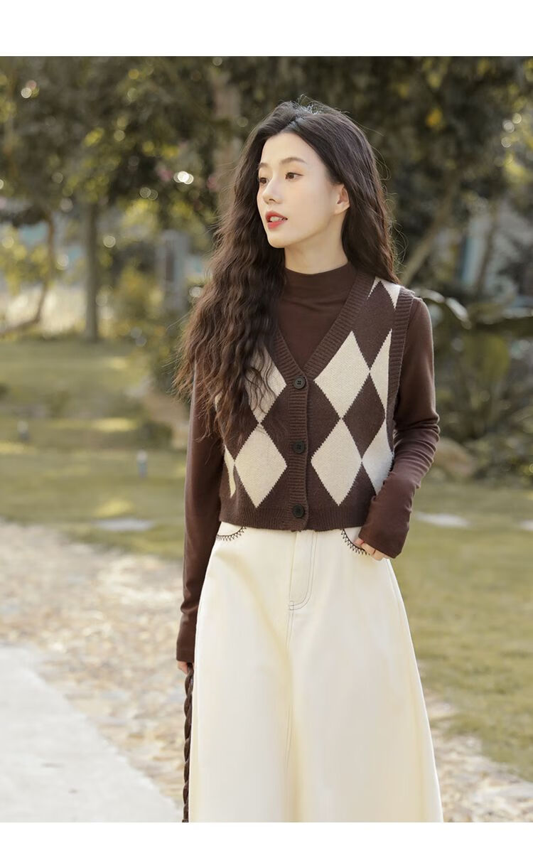 皮尔卡丹2025年春秋开衫上衣复古叠穿毛衣马夹菱格针织短款背心马甲女 黑+杏 马甲单件 M 90-105斤