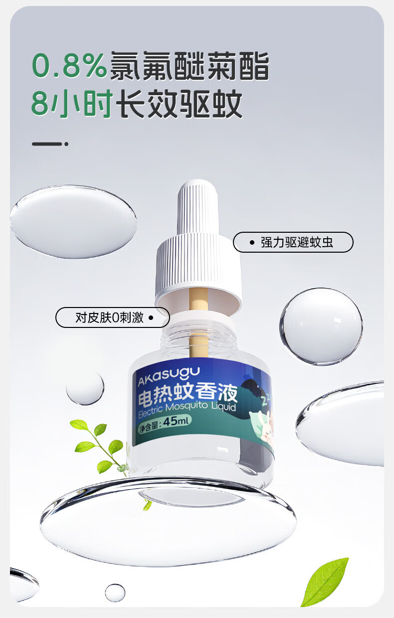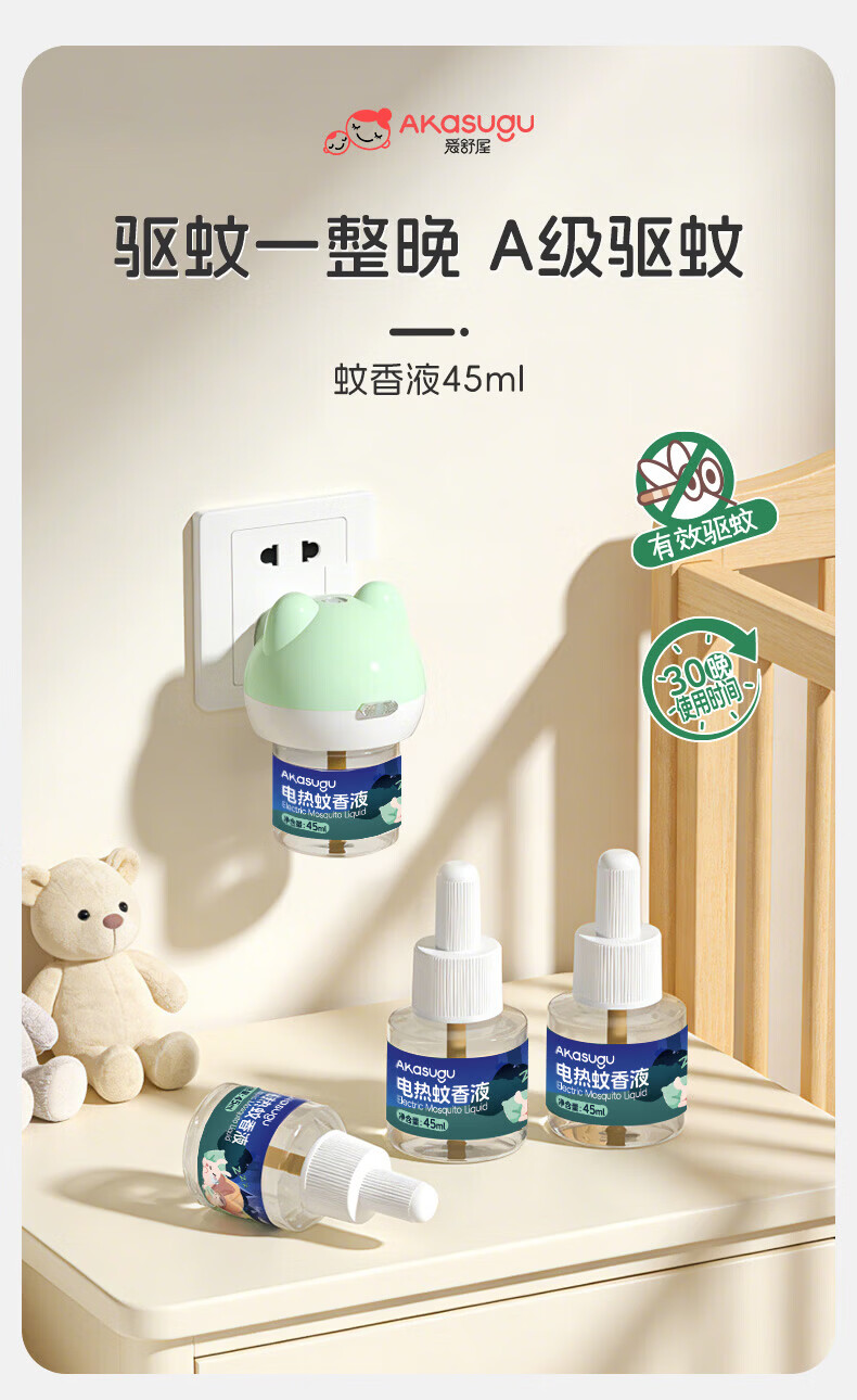 Akasugu爱舒屋电热蚊香液家用驱蚊液器插电式非无毒无灭防蚊补充液加热器 【26年新款】蚊香夜*8+加热器*2 超值装