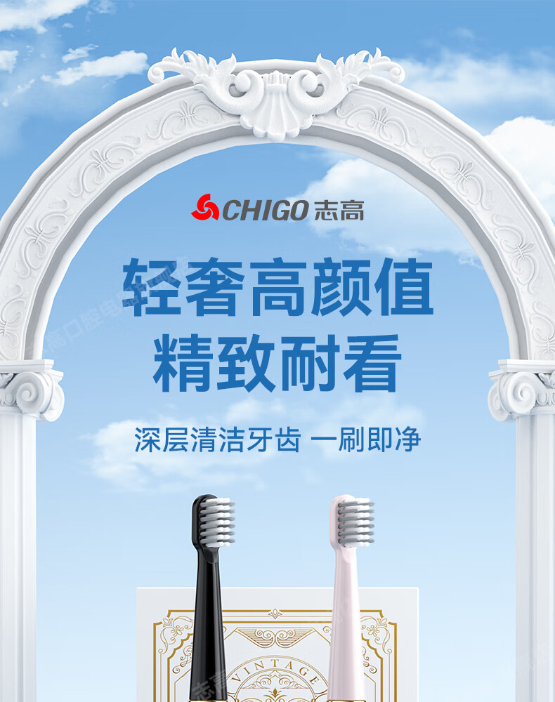 志高智能电动牙刷成人学生儿童情侣声波牙刷自动充电牙刷洁牙仪器生日礼物教师同价11.11实用送男女友 黑色【送四刷头】 【和主机一起发出】志高包装配件赠品