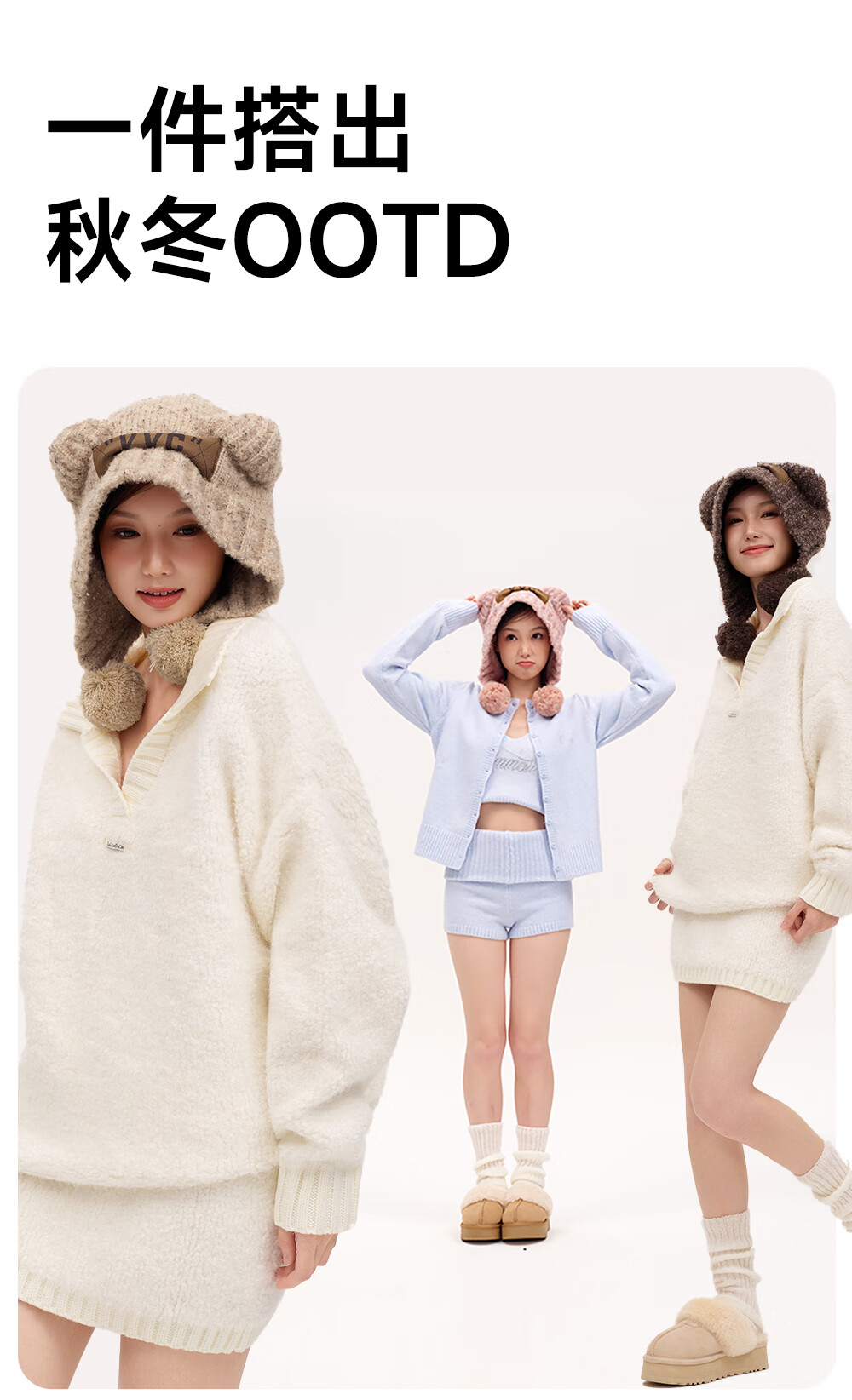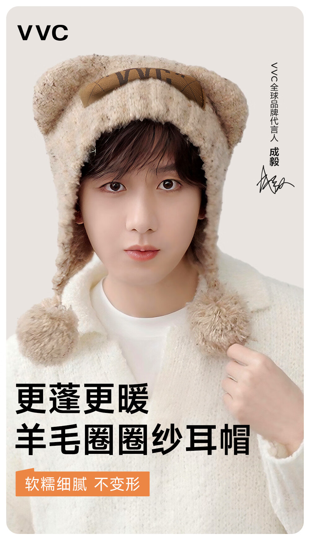 VVC【成毅同款】围巾冬季围脖男女通用防风保暖护耳帽子 暖卡其 均码