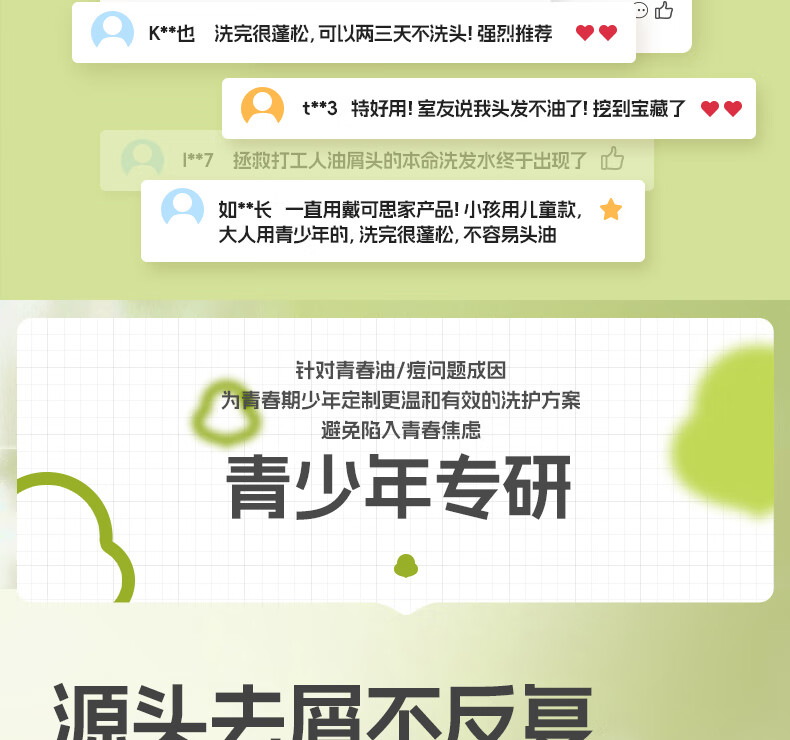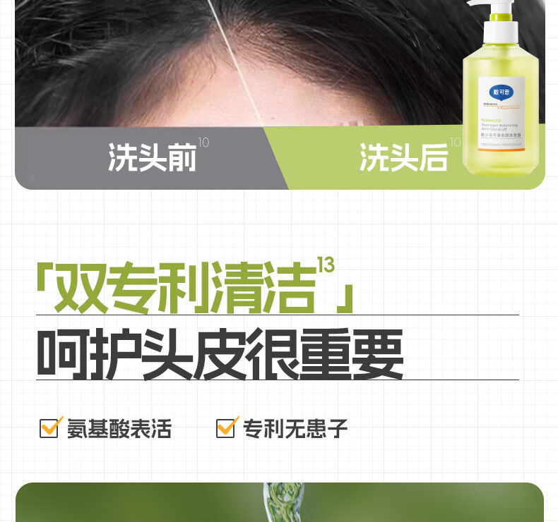 戴·可·思(Dexter)青少年洗发水去屑控油蓬松男孩女孩学生专用洗发露 青少年洗发水300ml