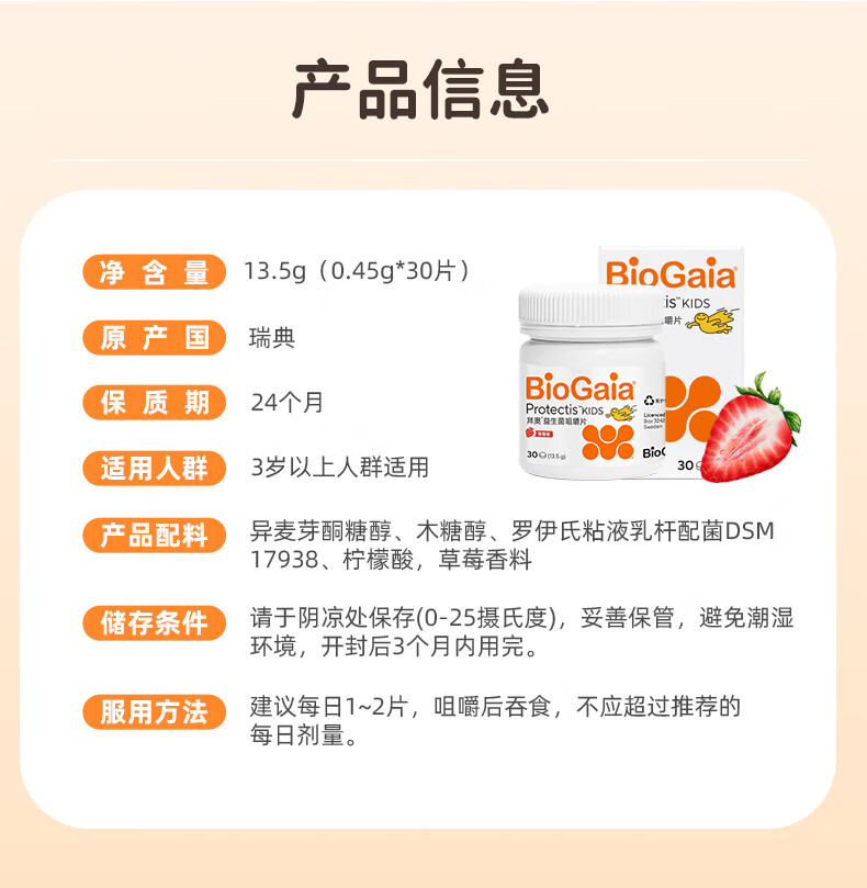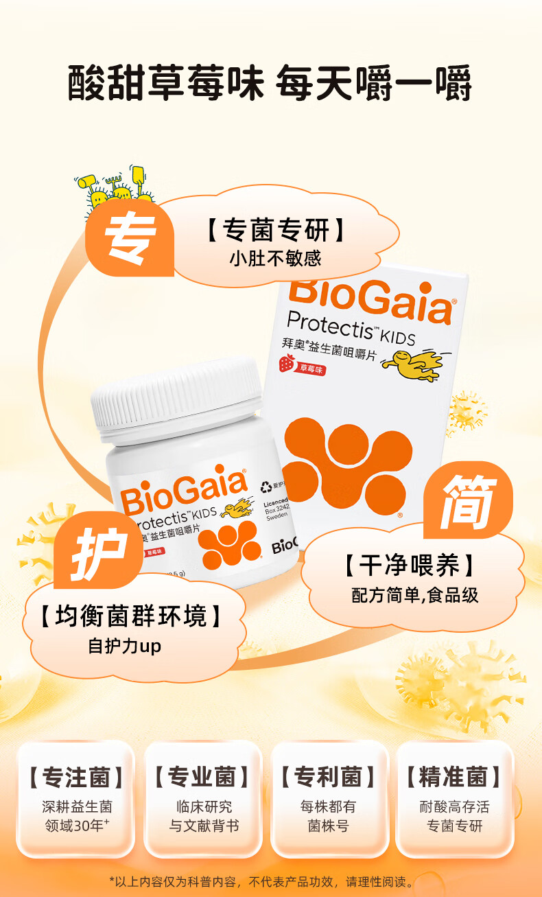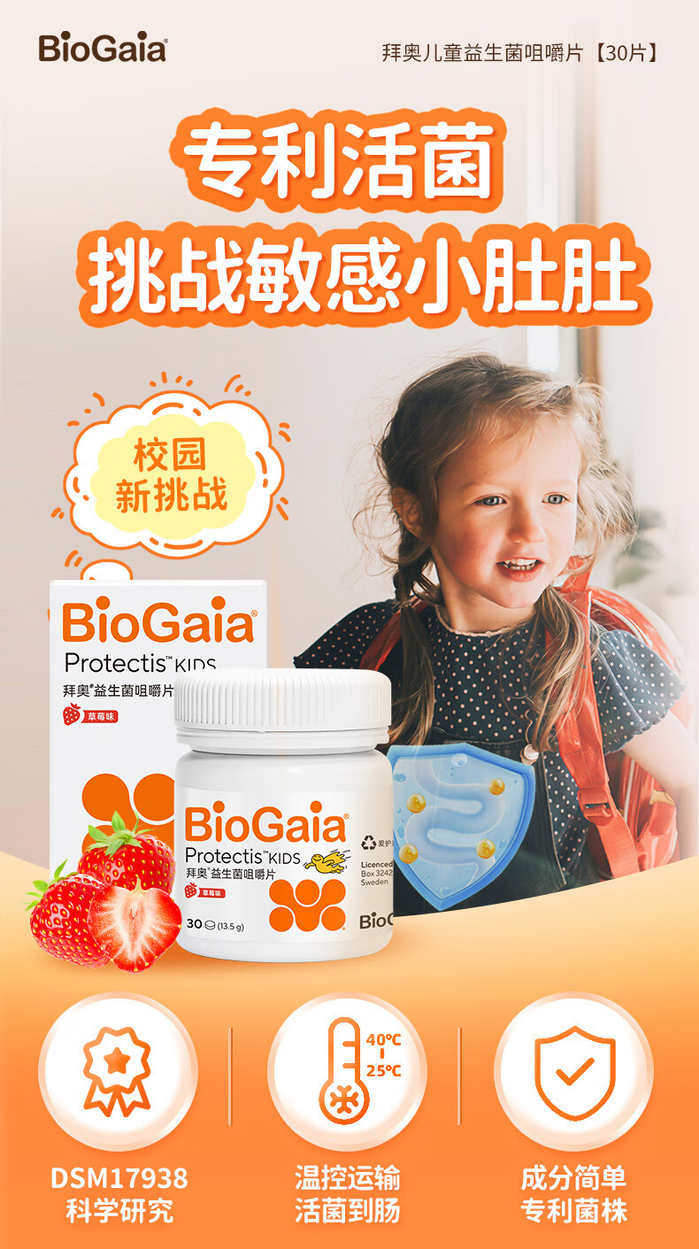 拜奥益生菌肠胃咀嚼片 儿童3岁+可用草莓味 罗伊氏粘液乳杆菌 【联系客服领取优惠】儿童咀嚼片 30片*1瓶 -草莓味