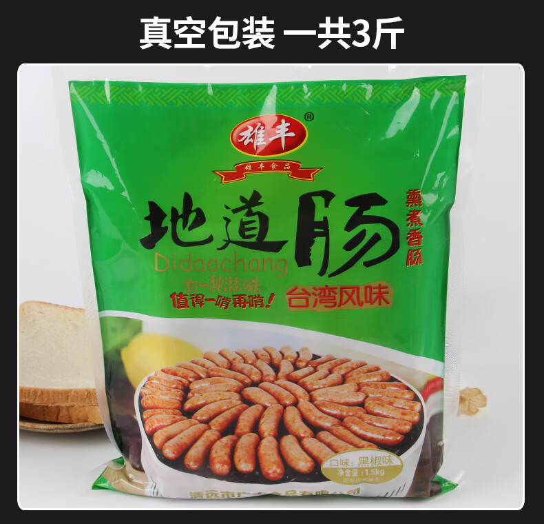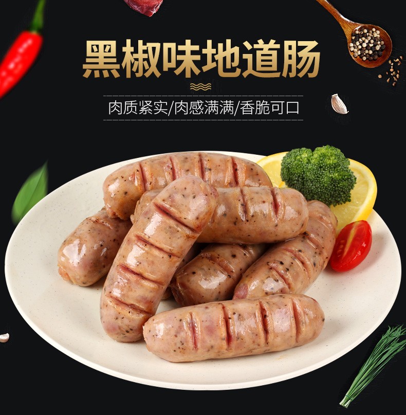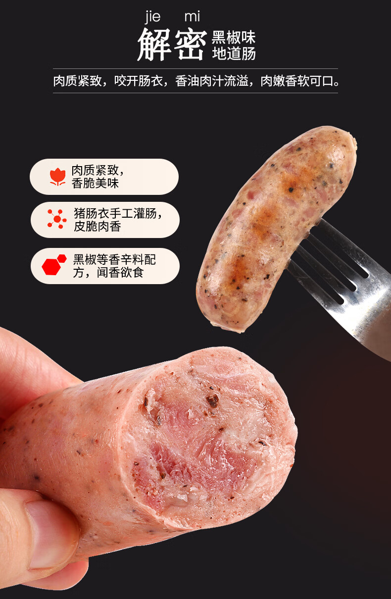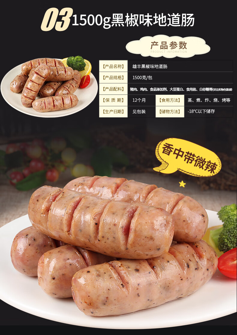 雄丰黑椒味地道肠3斤猪肉肠火山石烤肠肉肠烧烤早餐香肠预制菜肉制品