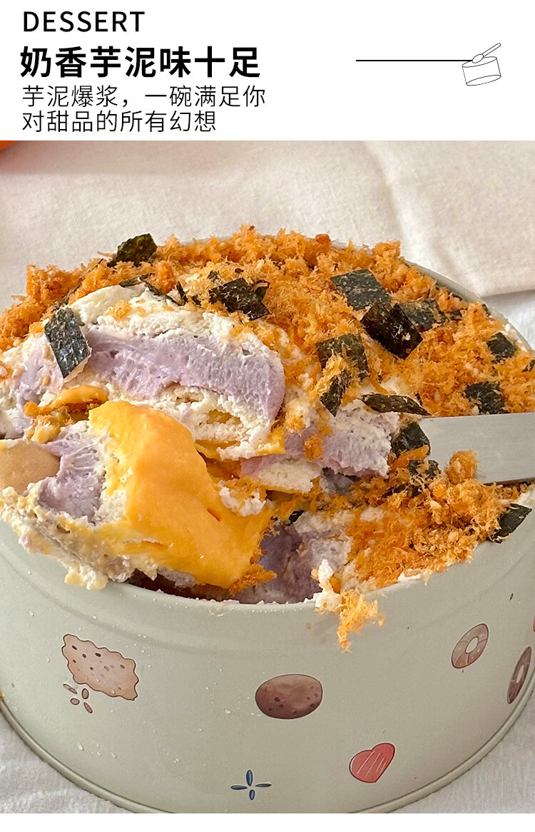 焙尔妈妈奶黄芋泥肉松蛋糕·五寸动物奶油新鲜好吃生日蛋糕下午茶休闲甜品 奶黄芋泥蛋糕铁罐5寸600g*1盒 顺丰发货(下单前请看详情页第一张)