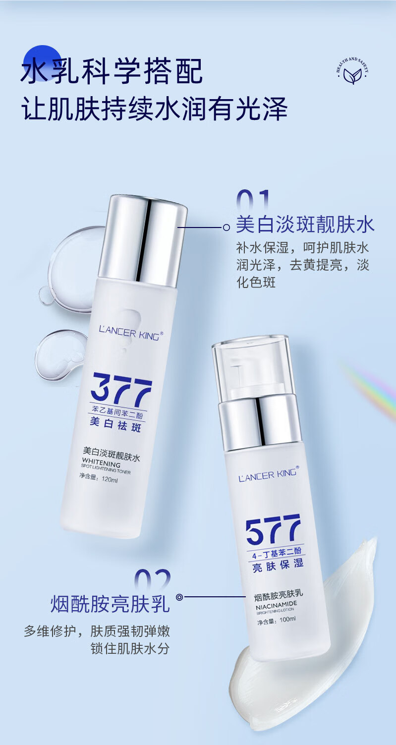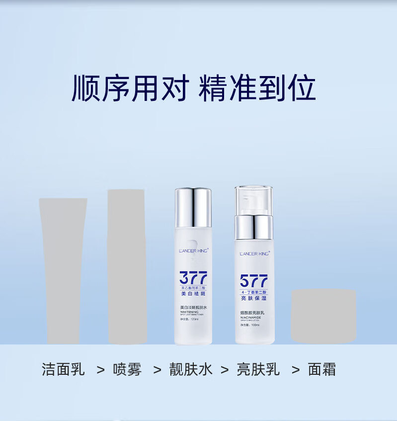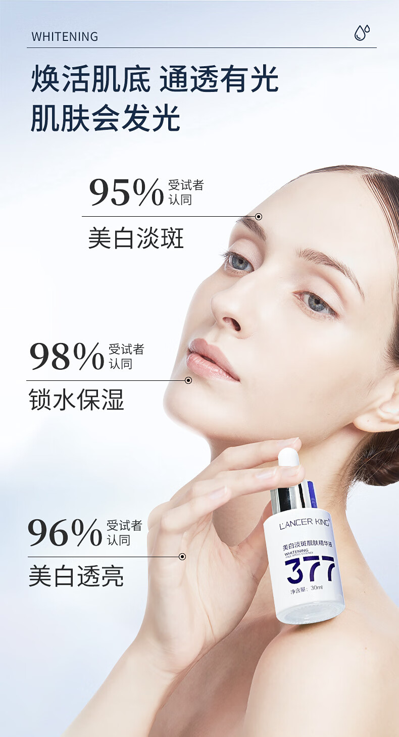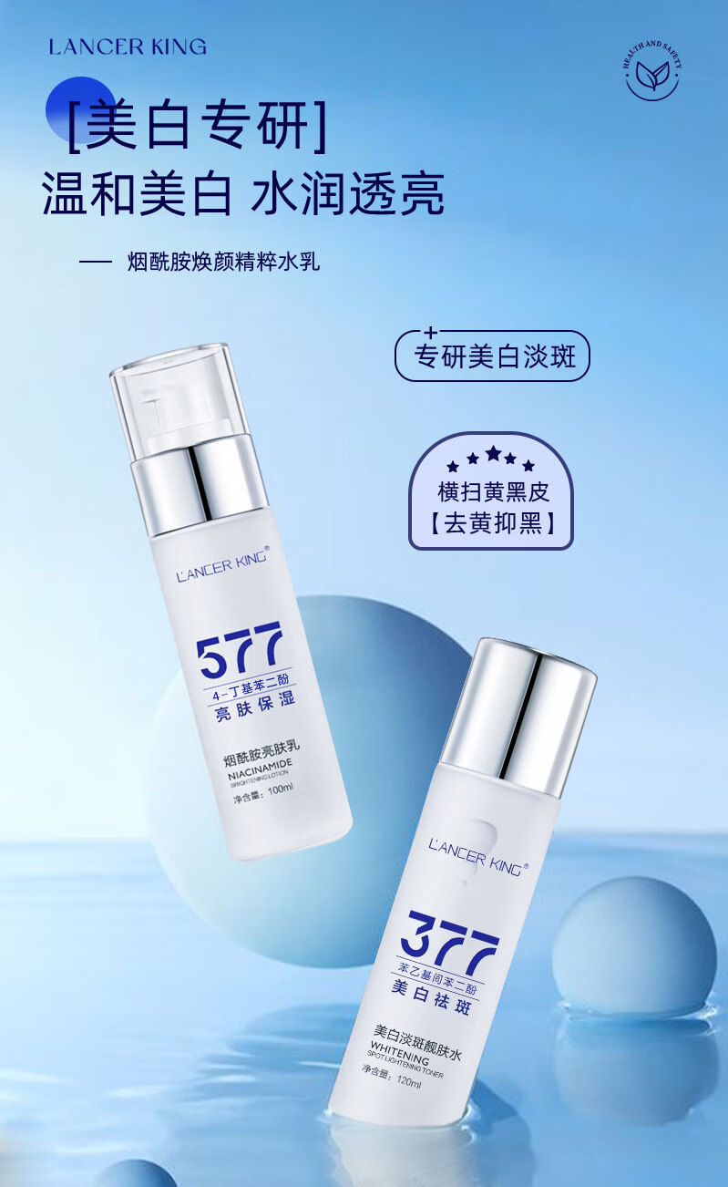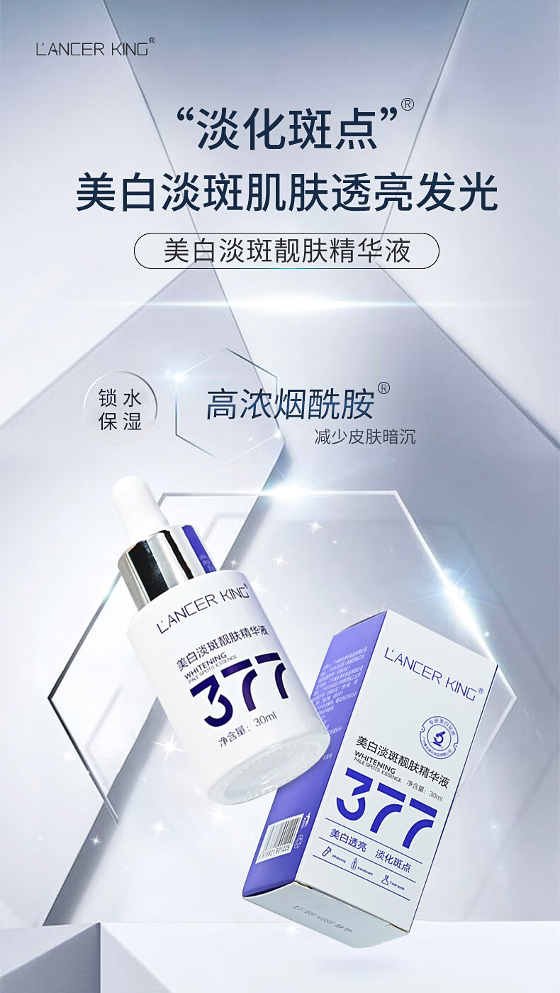 Lancer King377+577美白淡斑水乳霜套装去黄提亮补水保湿爽肤水精华水精华油 美白淡斑精华液30ml*2瓶