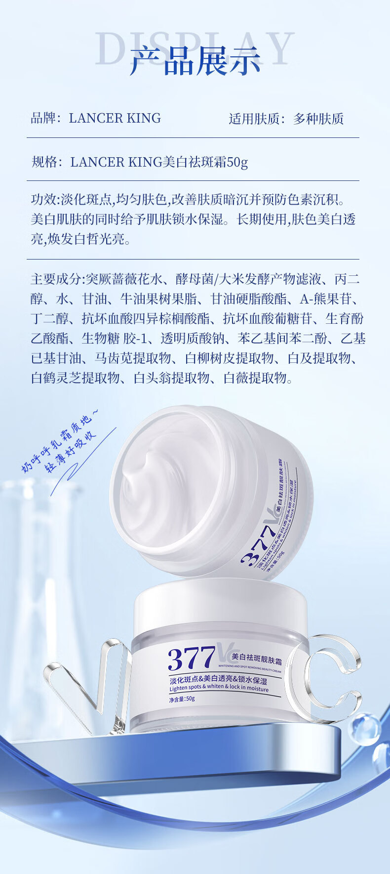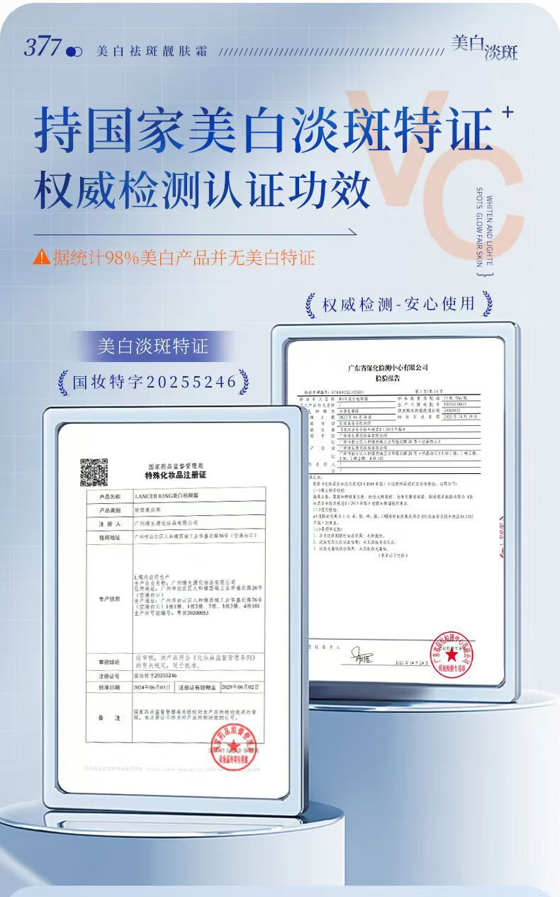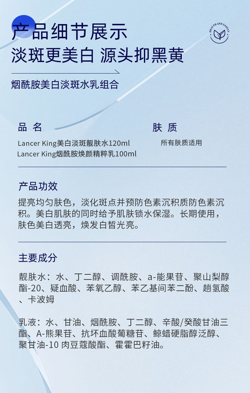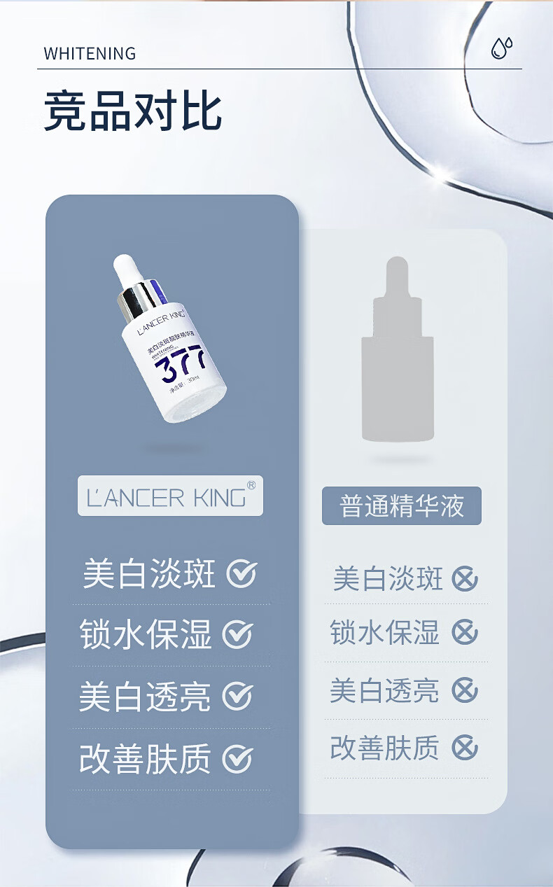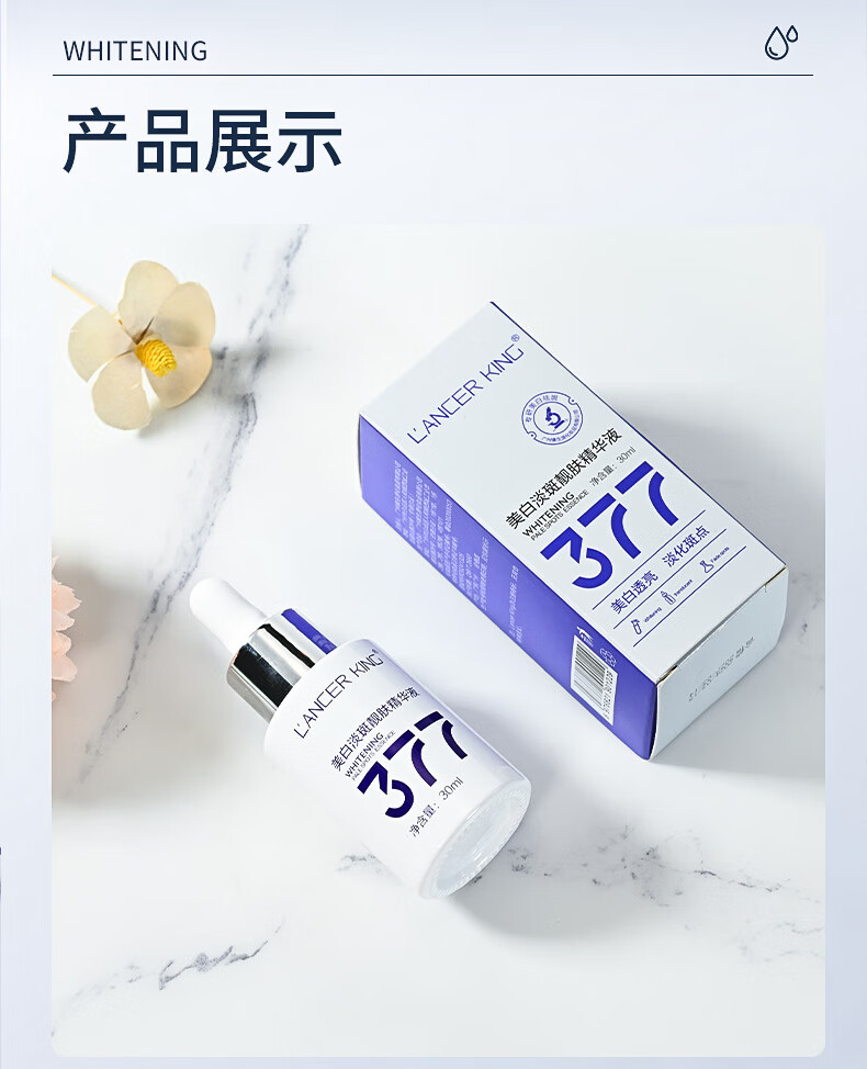 Lancer King377+577美白淡斑水乳霜套装去黄提亮补水保湿爽肤水精华水精华油 美白淡斑精华液30ml*2瓶