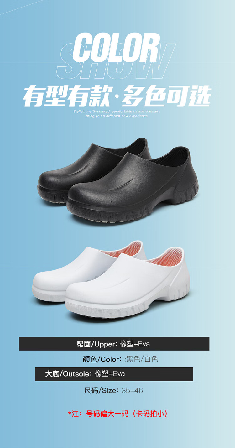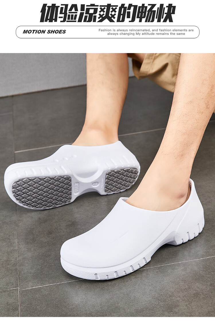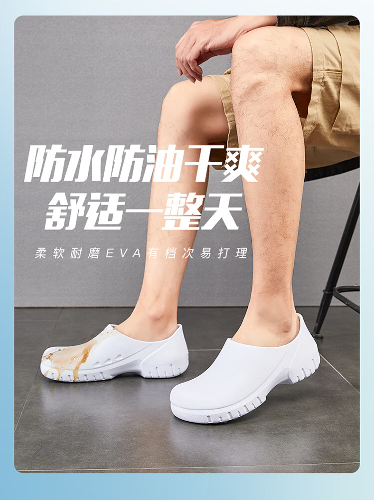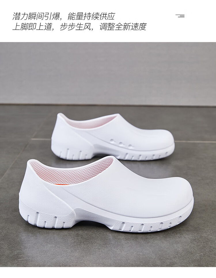 TEER厨房安全鞋防滑厨师鞋防水工作鞋防油护士鞋雨鞋老人鞋妈妈后厨 白色 35 (225mm) 偏大一码,拍小一码
