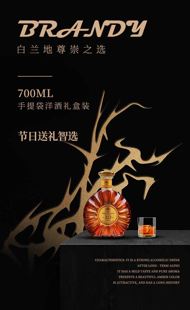 禛富40°法国进口XO白兰地XO 700mL 700mL 1瓶 礼盒装