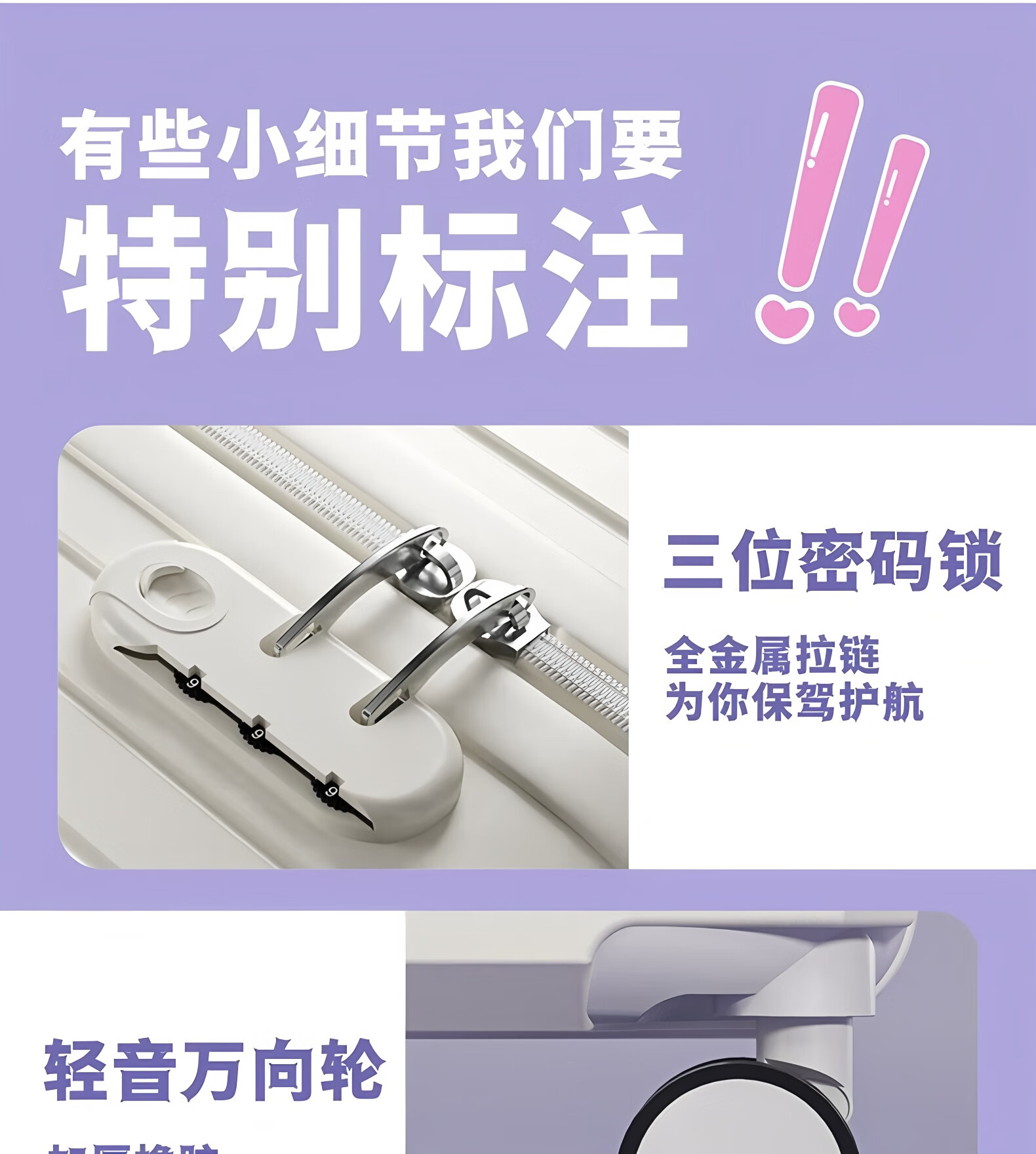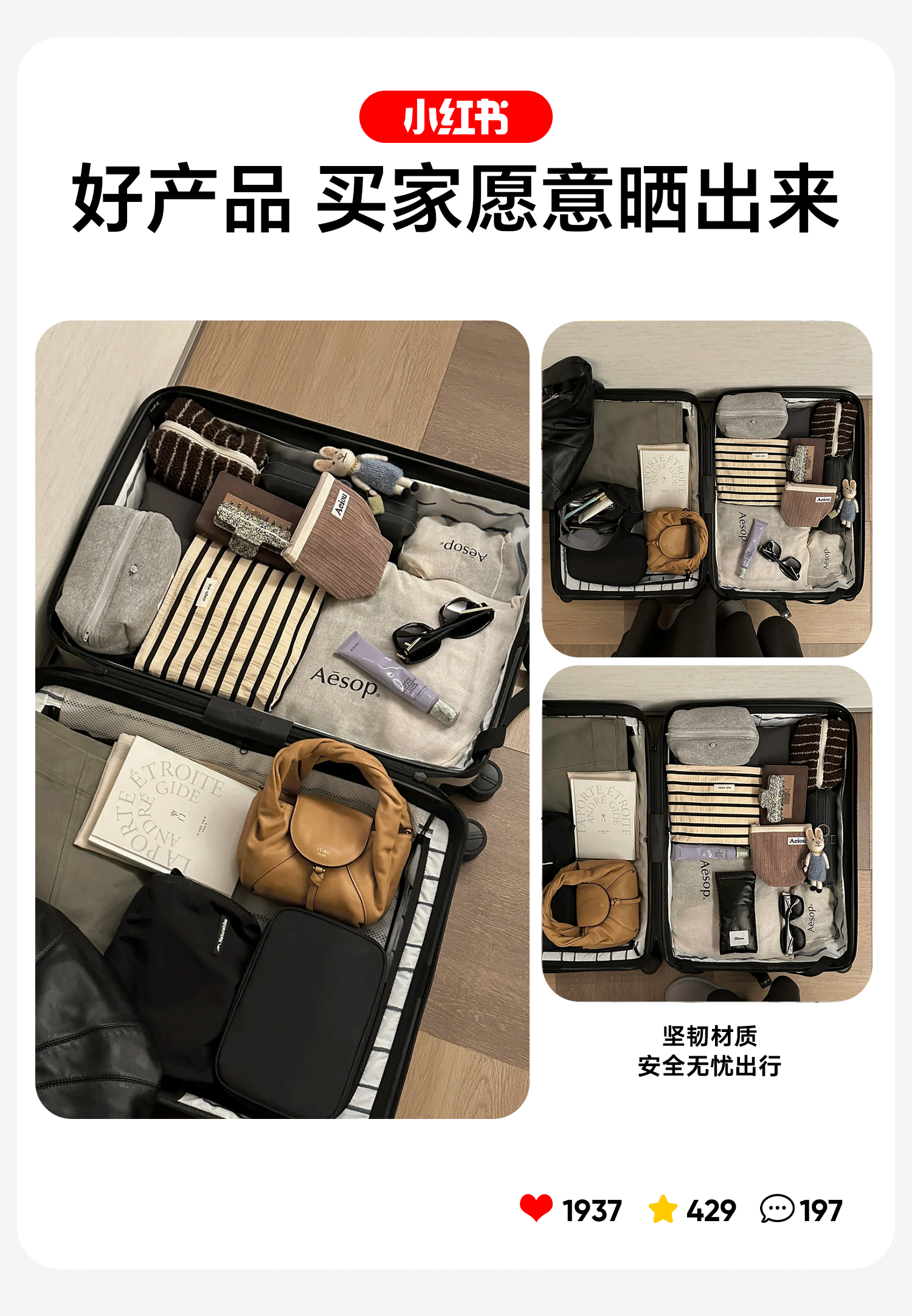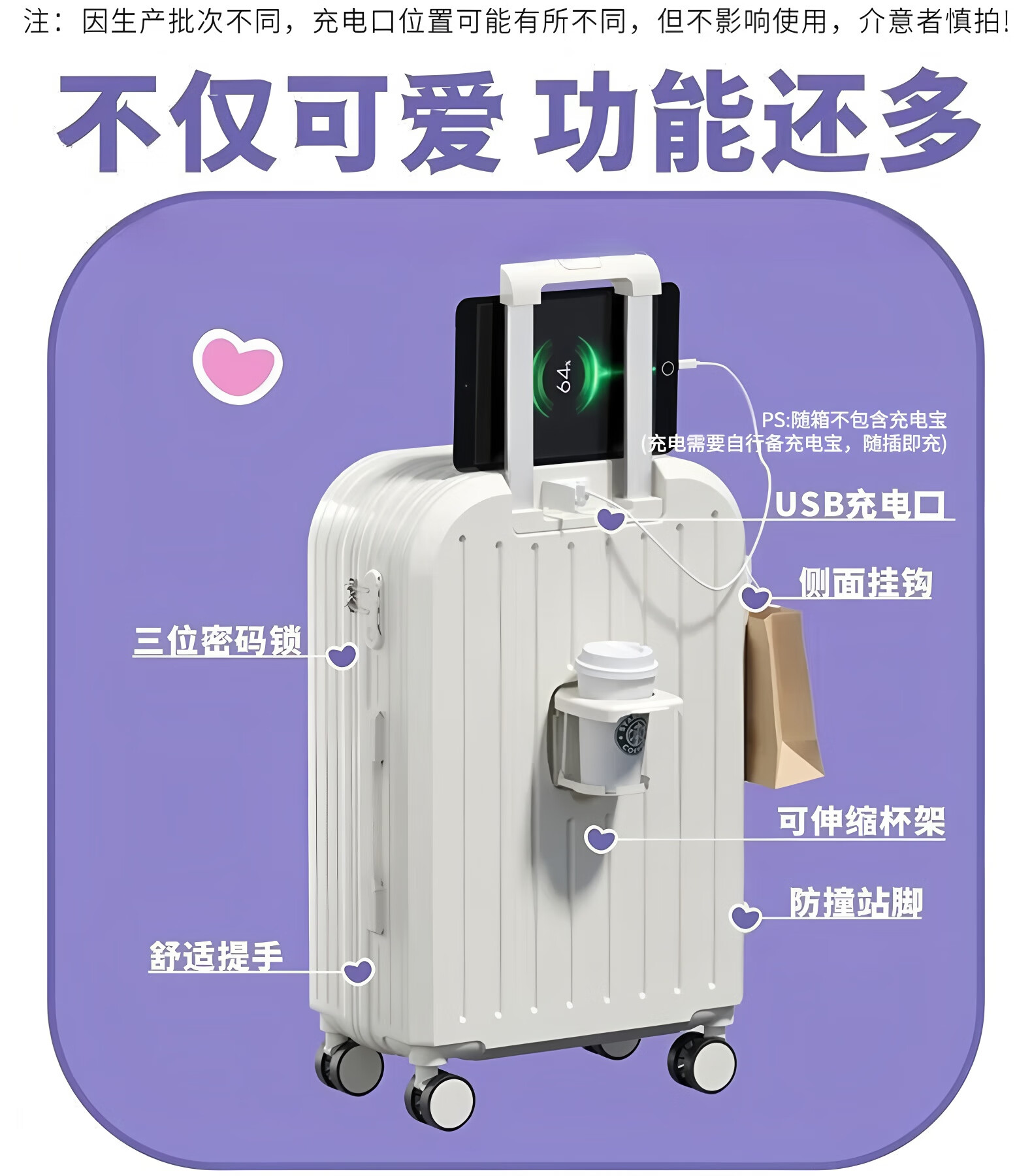 冇力行李箱20寸登机箱多功能拉杆箱女结实耐用小型旅行箱 谷物白【轻颜便携】经典款 20英寸 【登机箱】