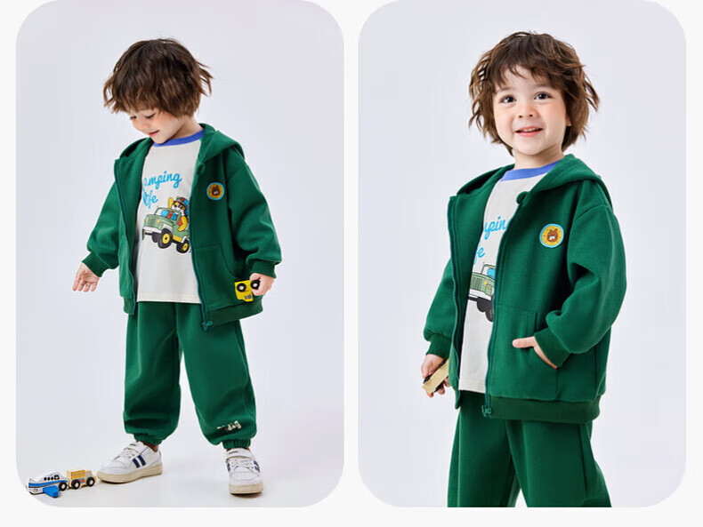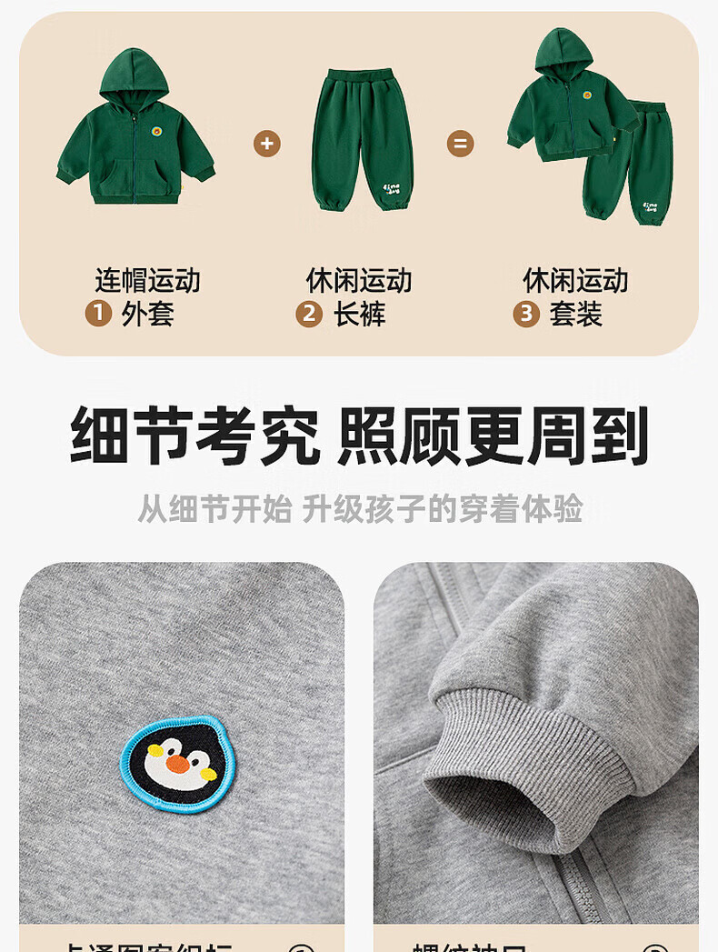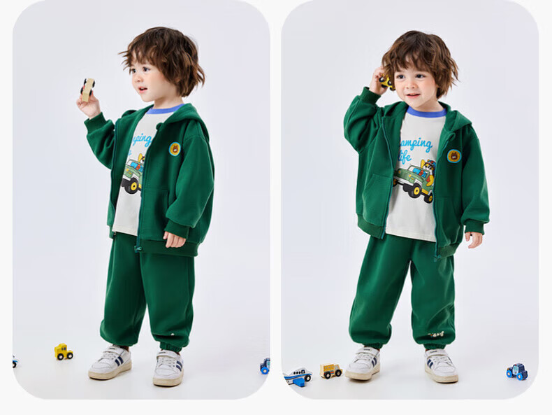 嘟嘟家儿童运动套装春秋宝宝卫衣卫裤两件套男童休闲童装秋款女童春装潮 绿色 90