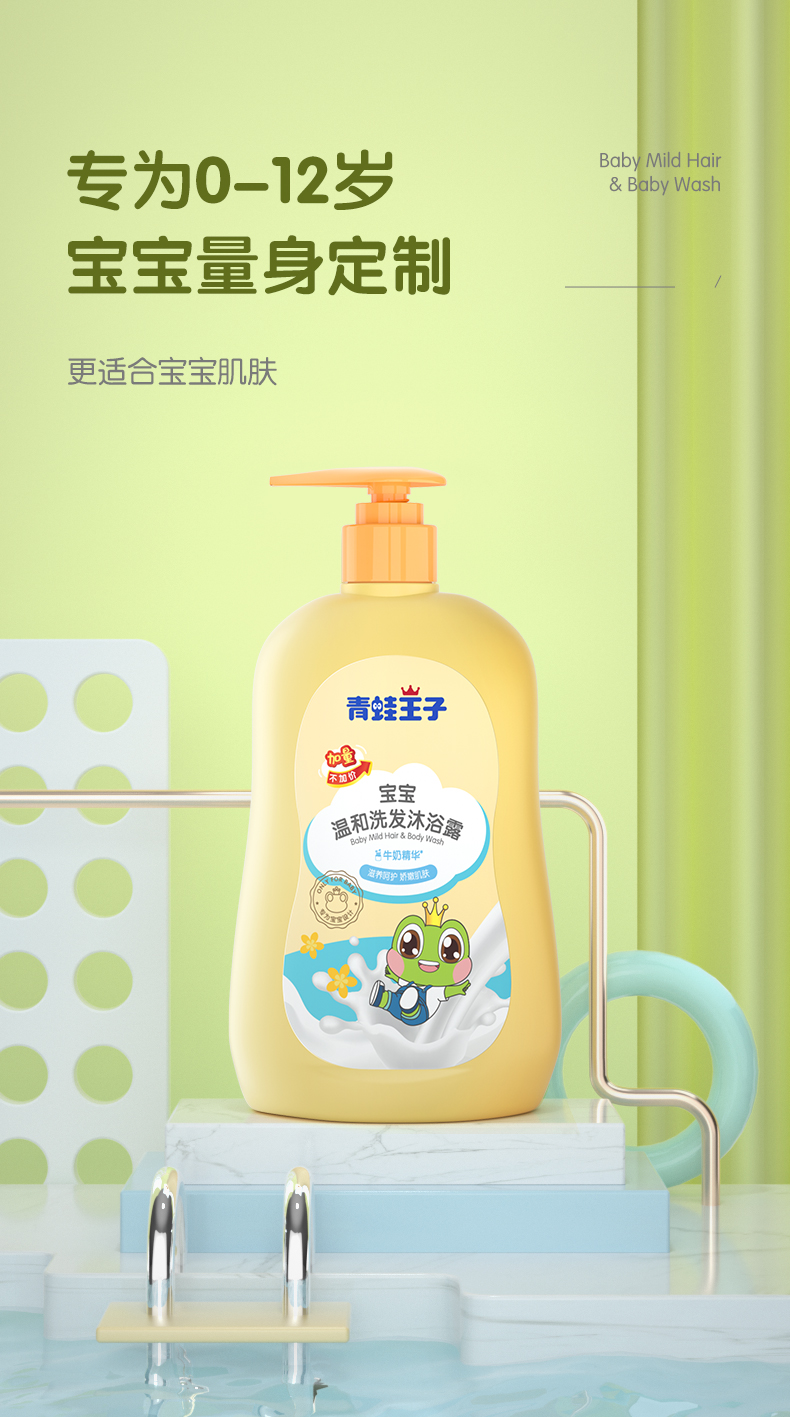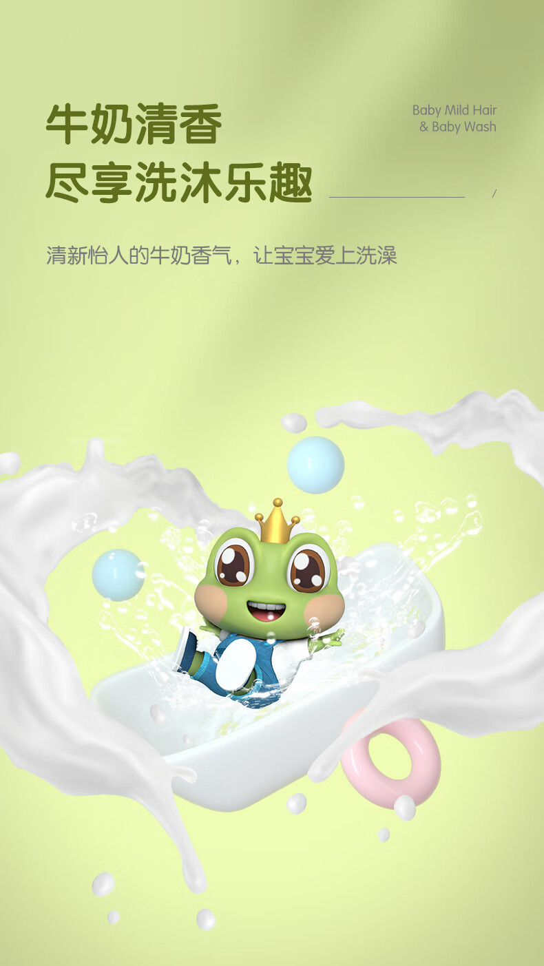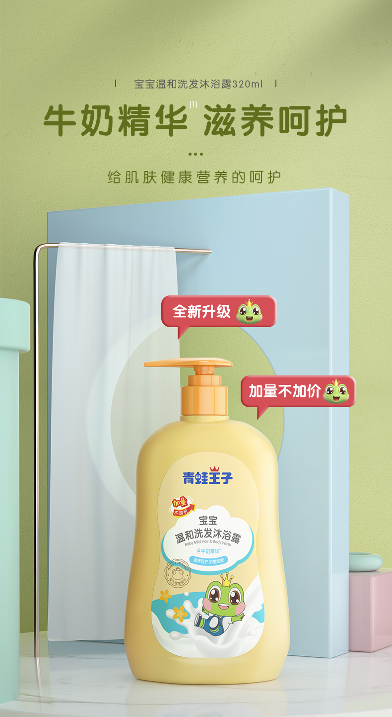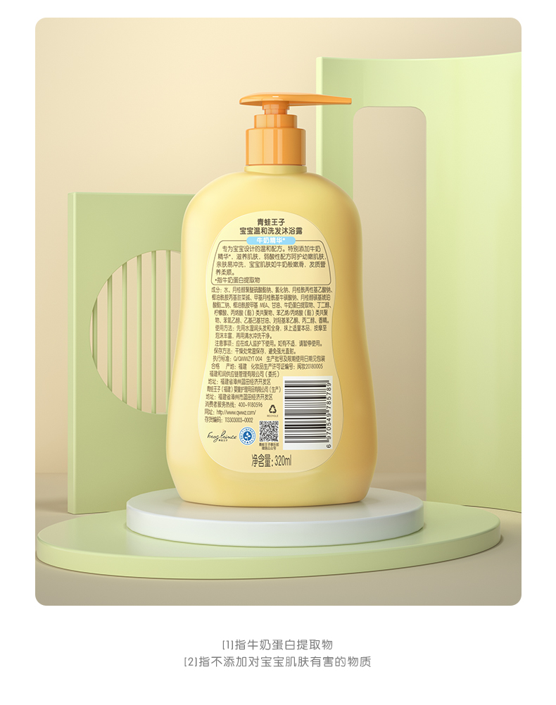 青蛙王子 婴儿沐浴露 婴儿洗发水沐浴露二合一 牛奶精华 320ml
