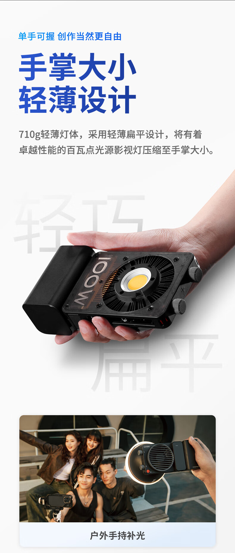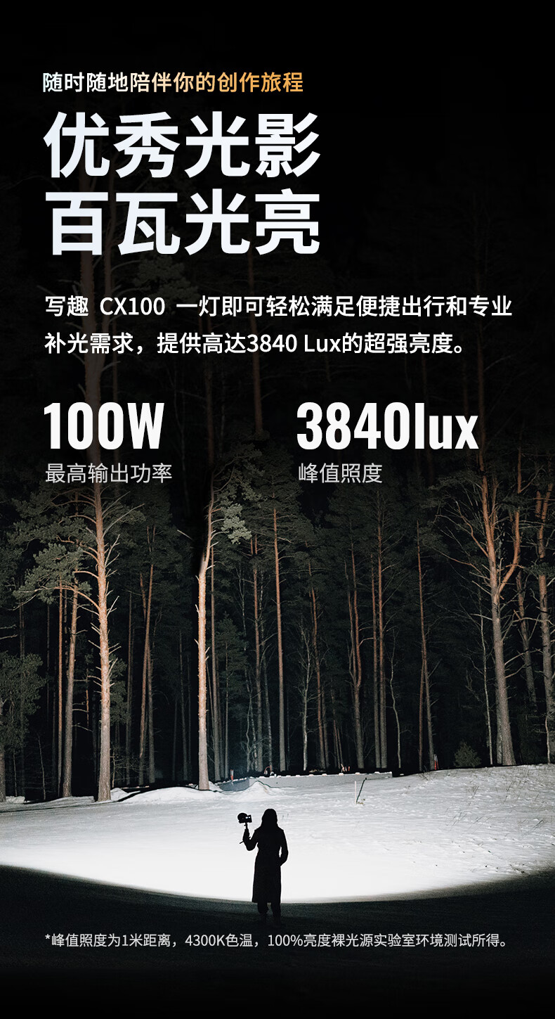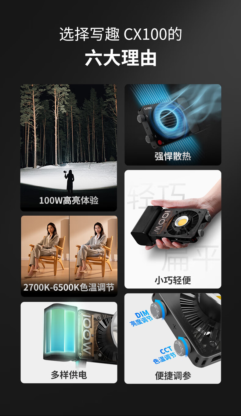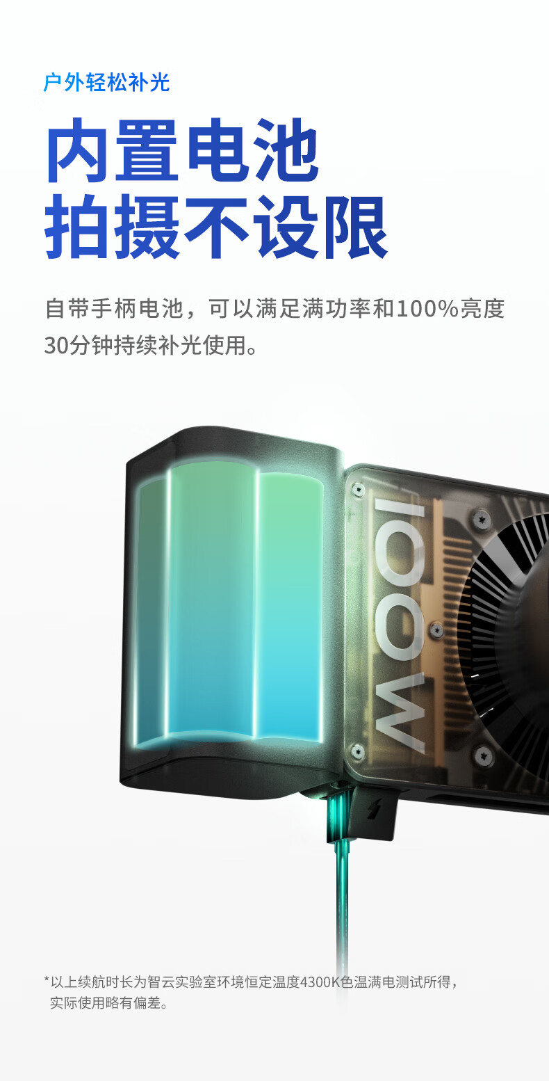 智云 写趣CX100补光灯直播摄影灯 100W专业便携打光灯手机相机影视灯室内户外视频常亮口袋灯