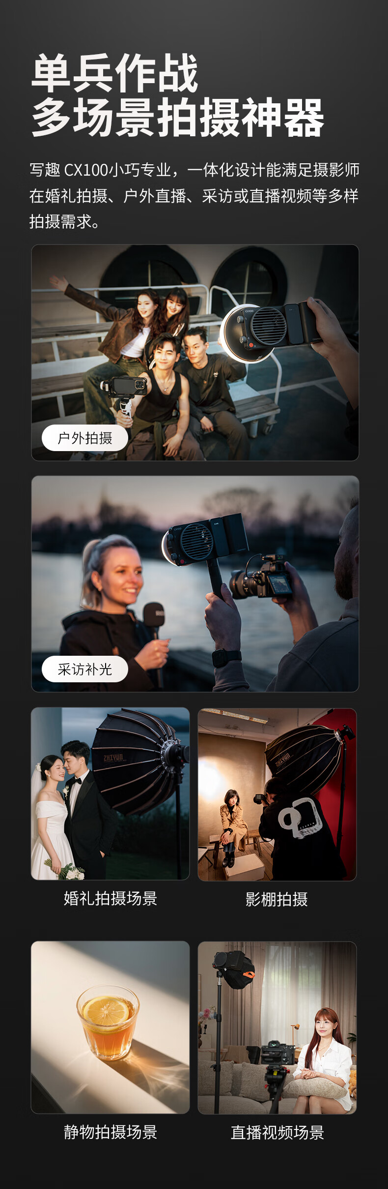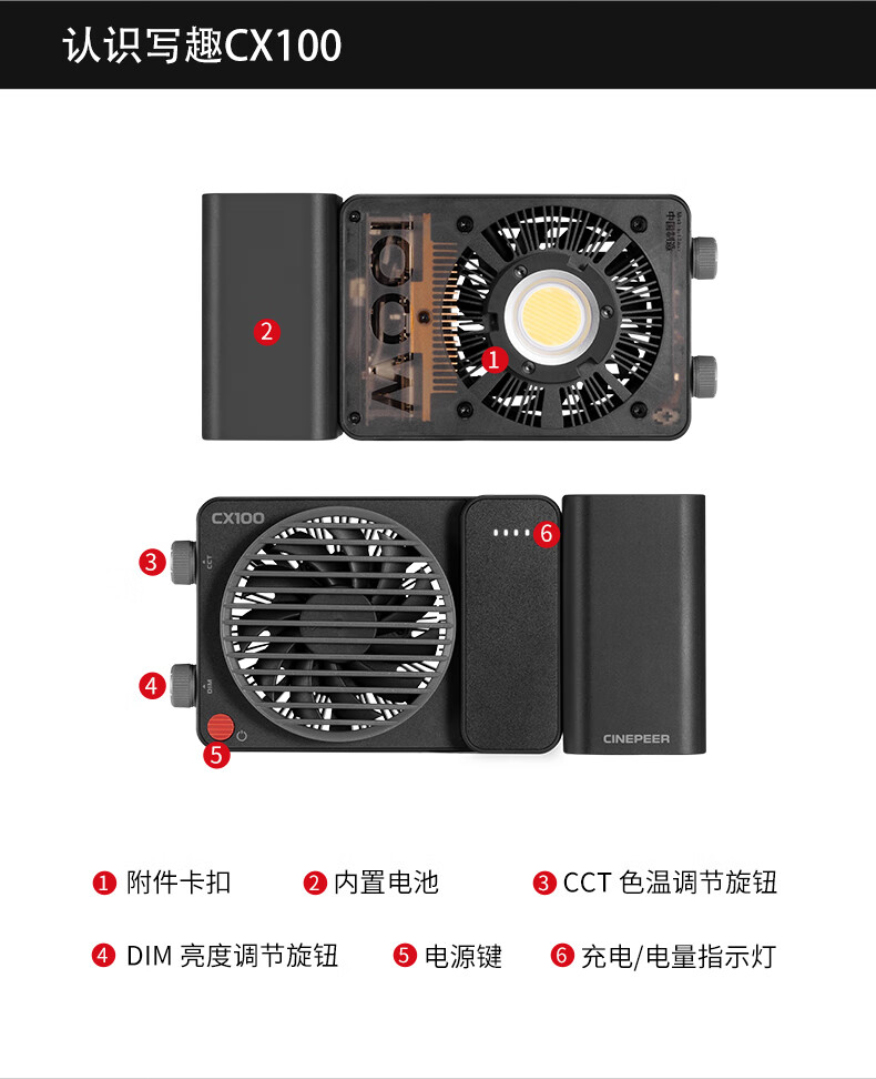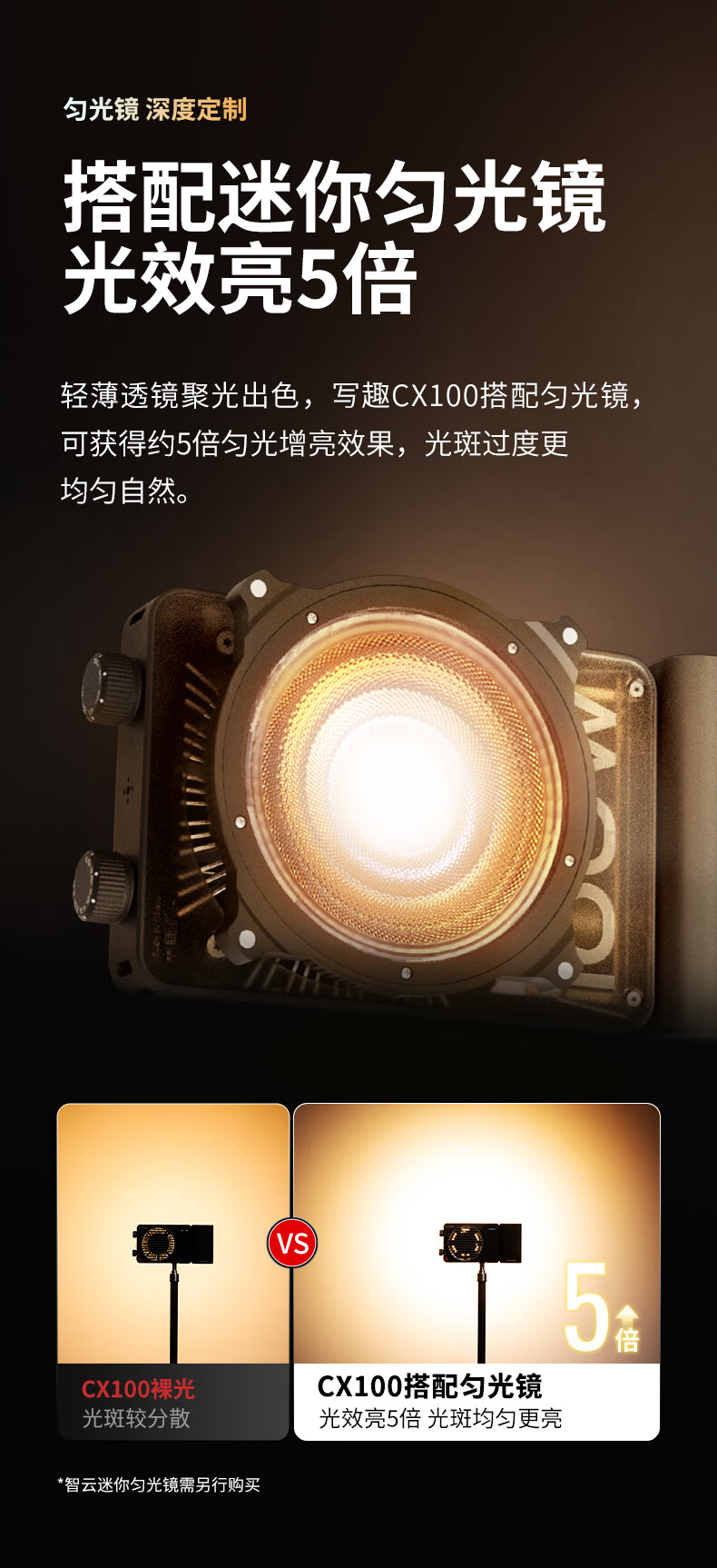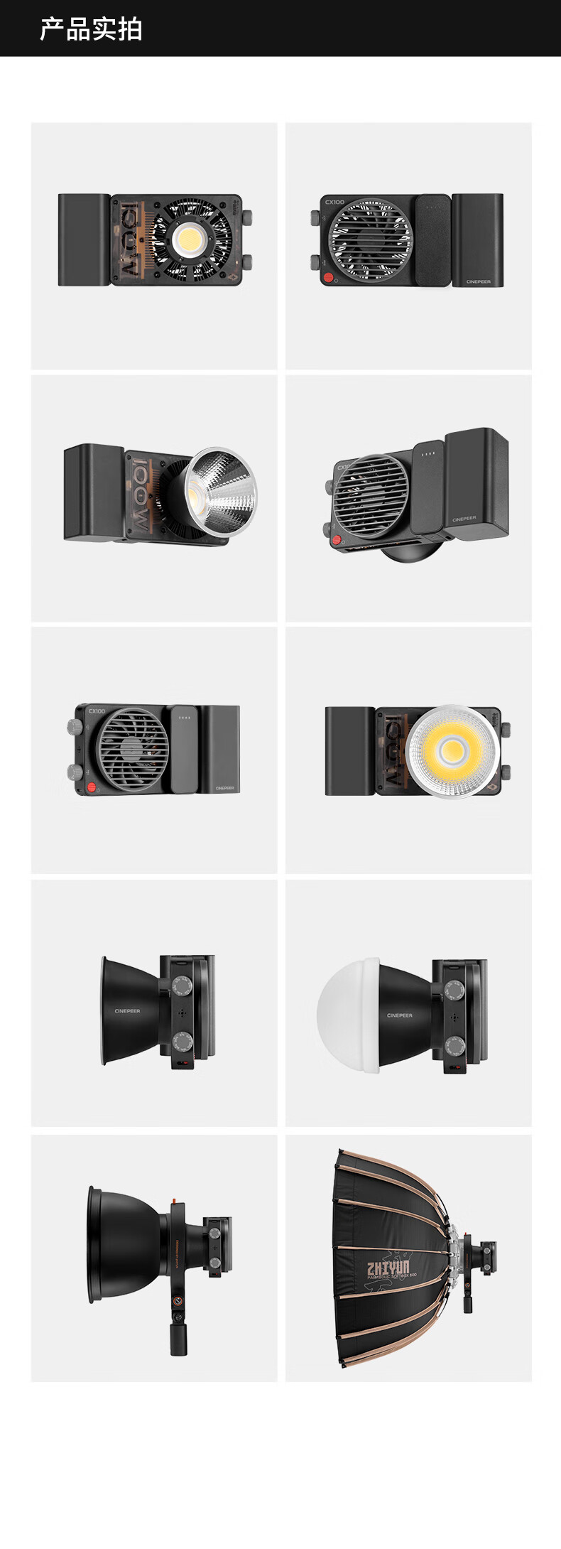 智云 写趣CX100补光灯直播摄影灯 100W专业便携打光灯手机相机影视灯室内户外视频常亮口袋灯