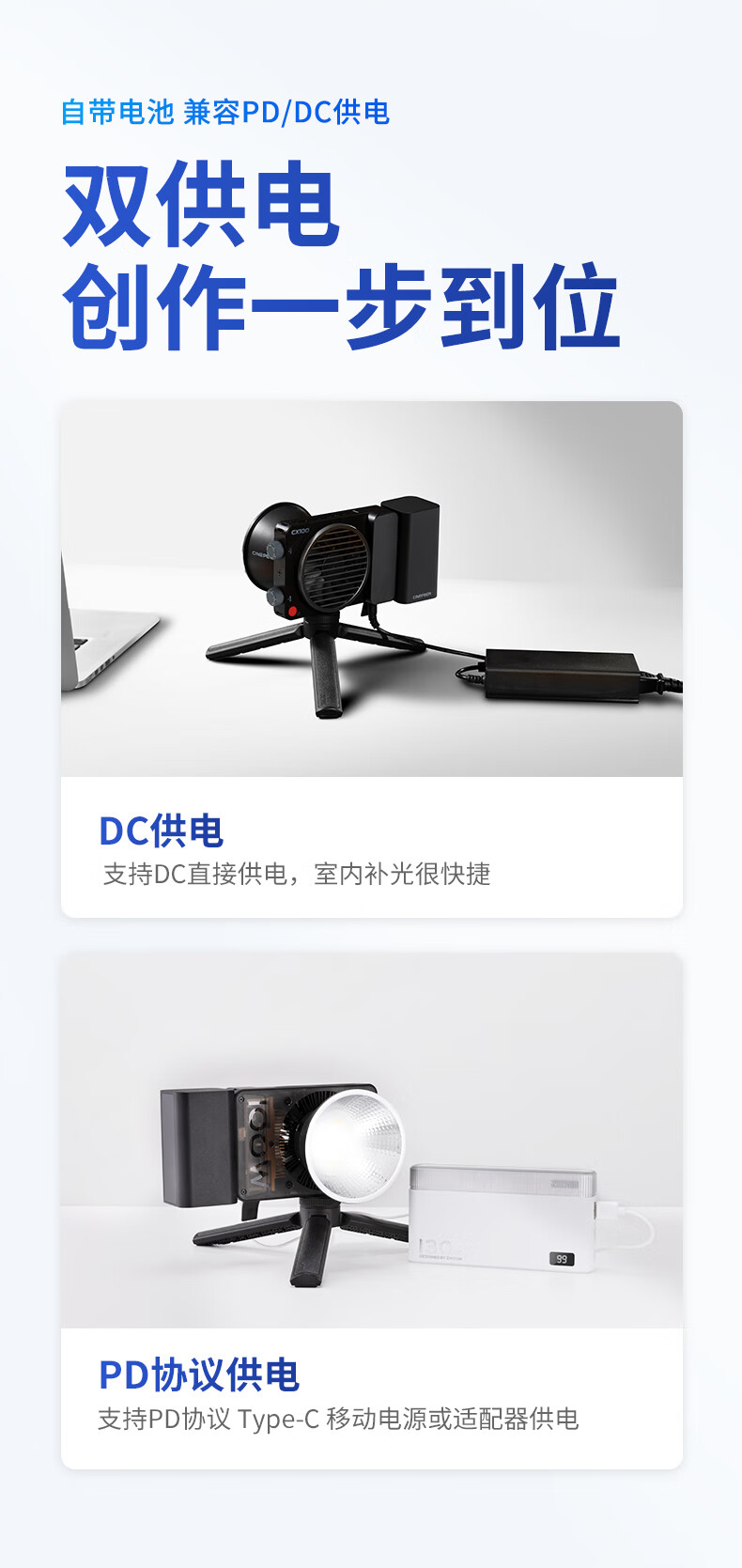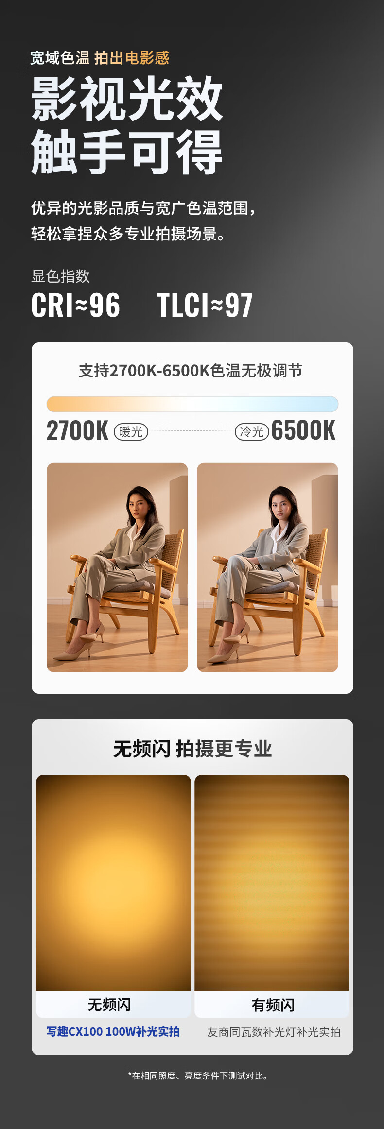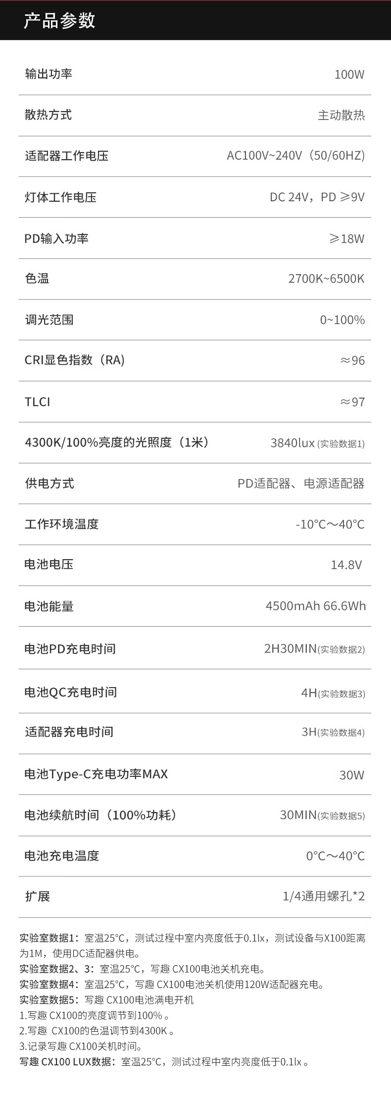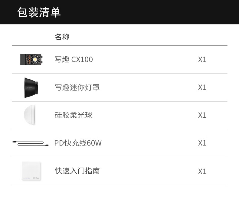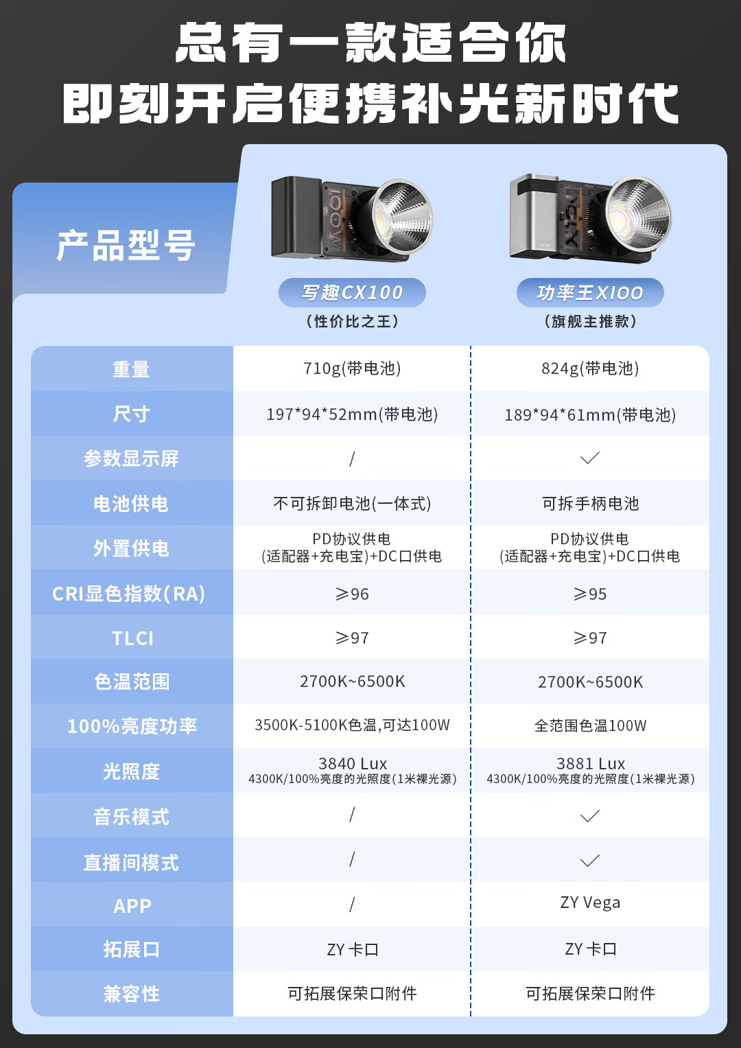 智云 写趣CX100补光灯直播摄影灯 100W专业便携打光灯手机相机影视灯室内户外视频常亮口袋灯