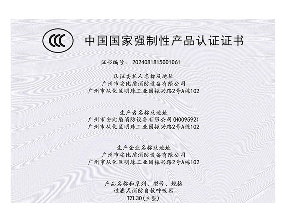 准航 防毒面具消防面罩防烟防火面罩3C认证逃生过滤式自救呼吸器TZL30