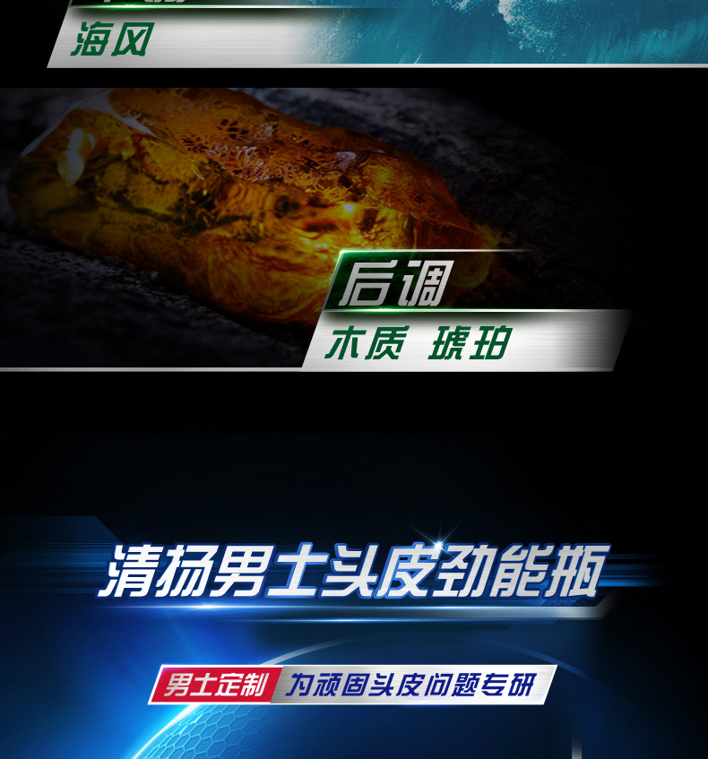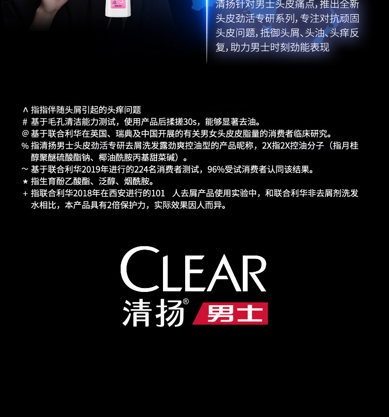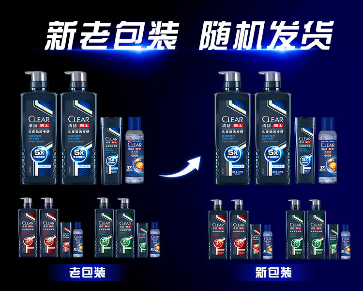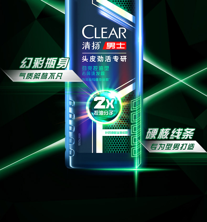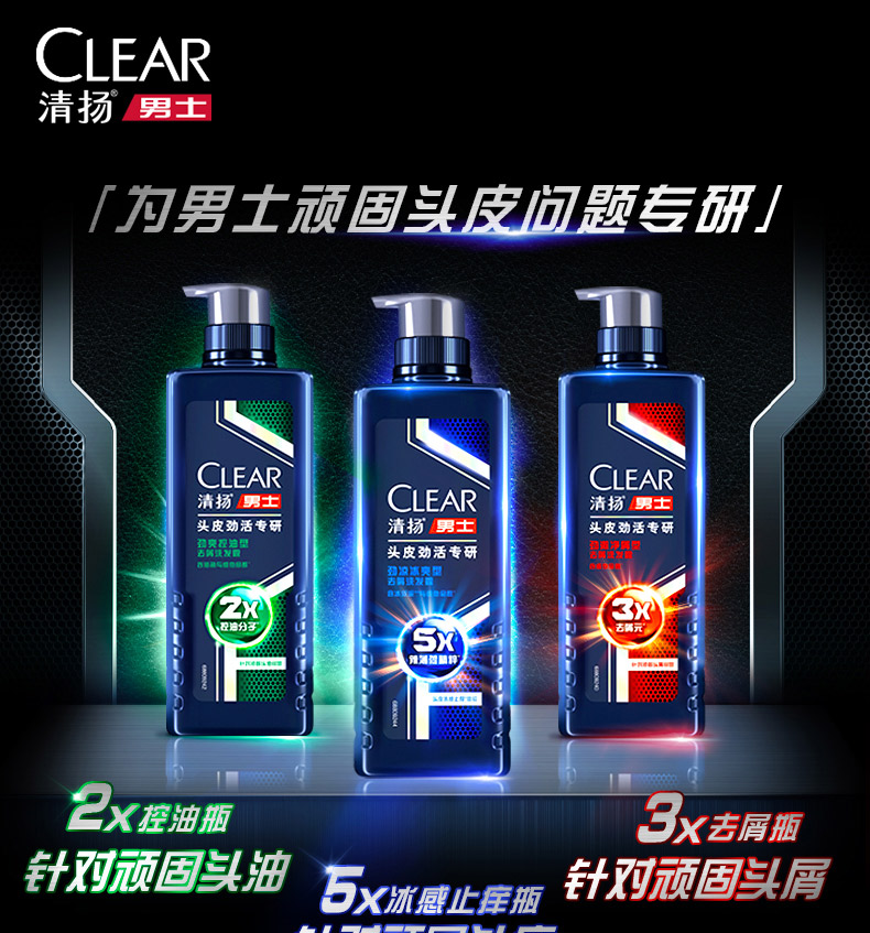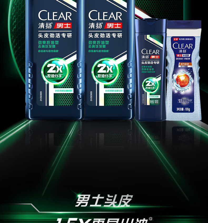 清扬(CLEAR)男士劲能瓶头皮专研控油蓬松洗发露570gX2+洗发100g+沐浴100g