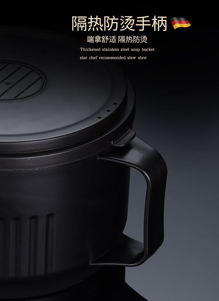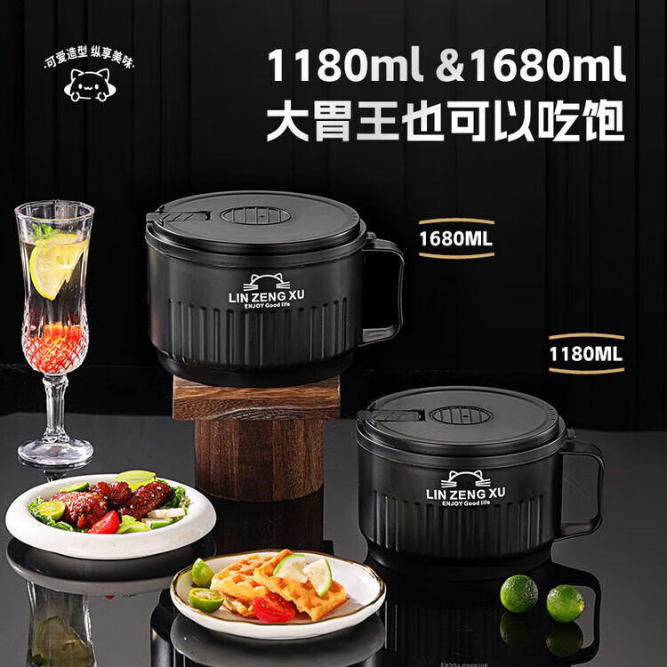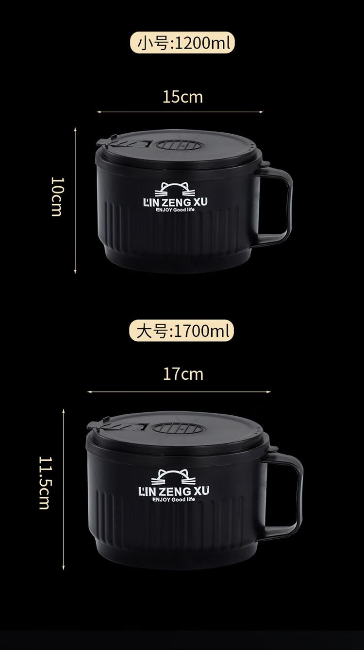 DEATKN德国304不锈钢泡面碗宿舍学生带盖日式保温大容量食堂打饭方便面 酷黑【304不锈钢】支持检测 加大【1700ML+餐具】附加可沥水+当支架
