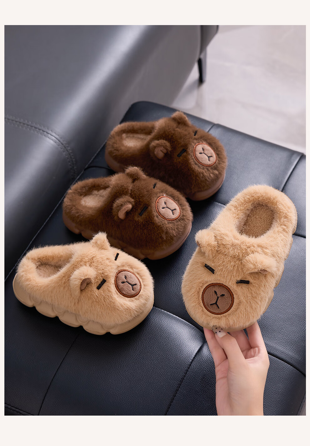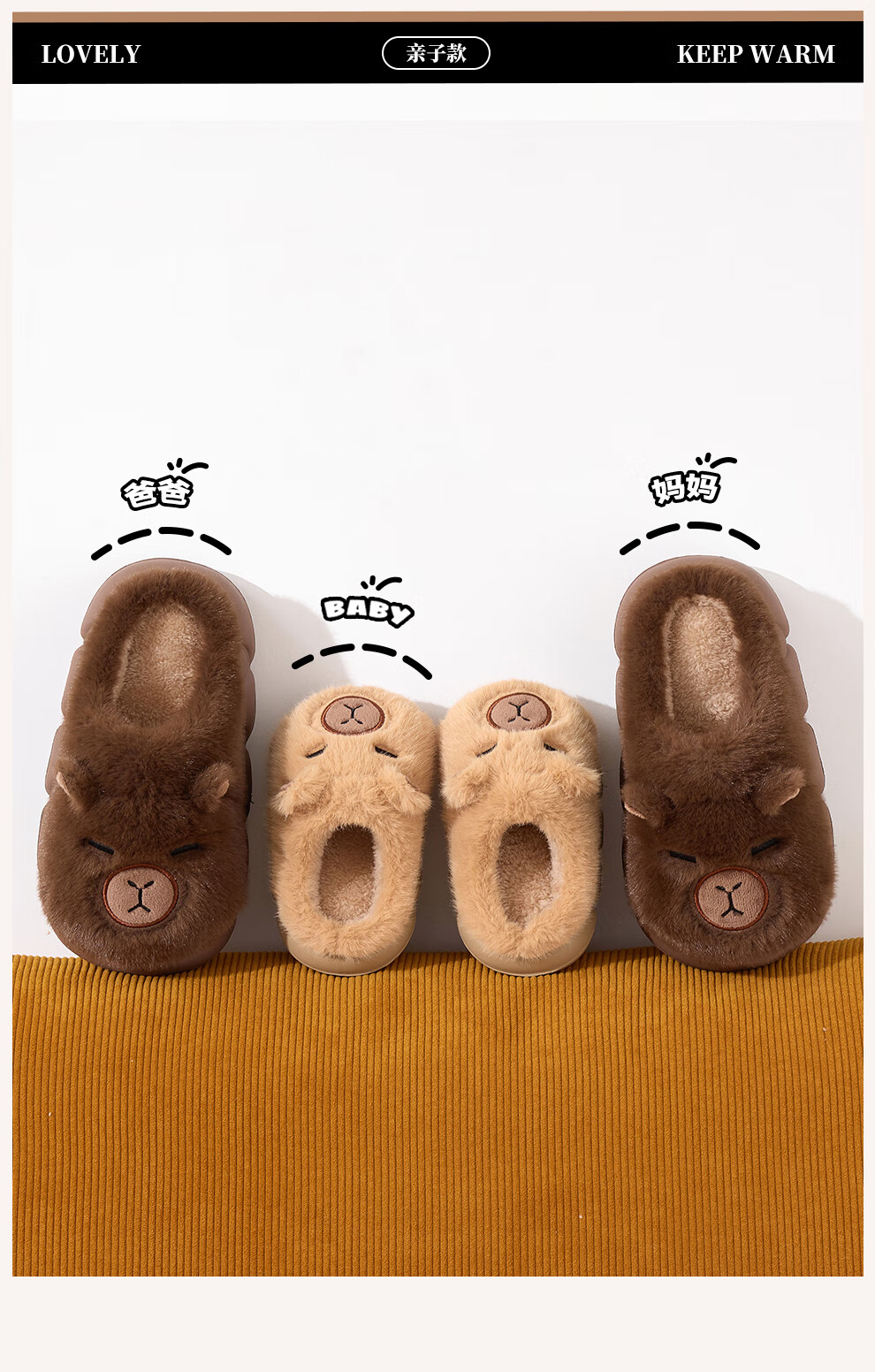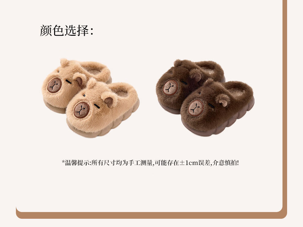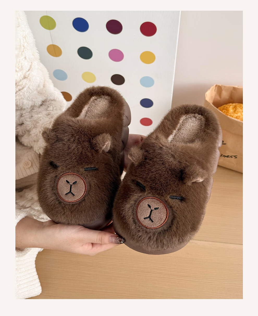 FZT卡皮巴拉冬季儿童包跟棉鞋保暖居家防滑可爱中小童男女棉拖亲子款 深咖【半包】 32-33 内长20CM适合脚长19