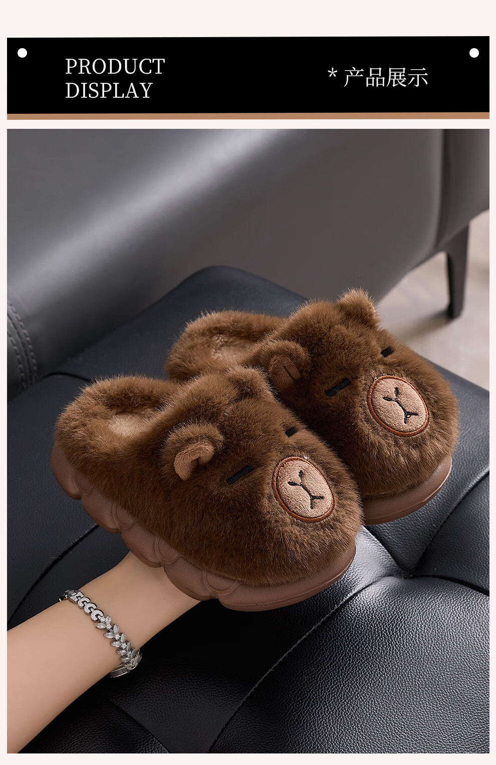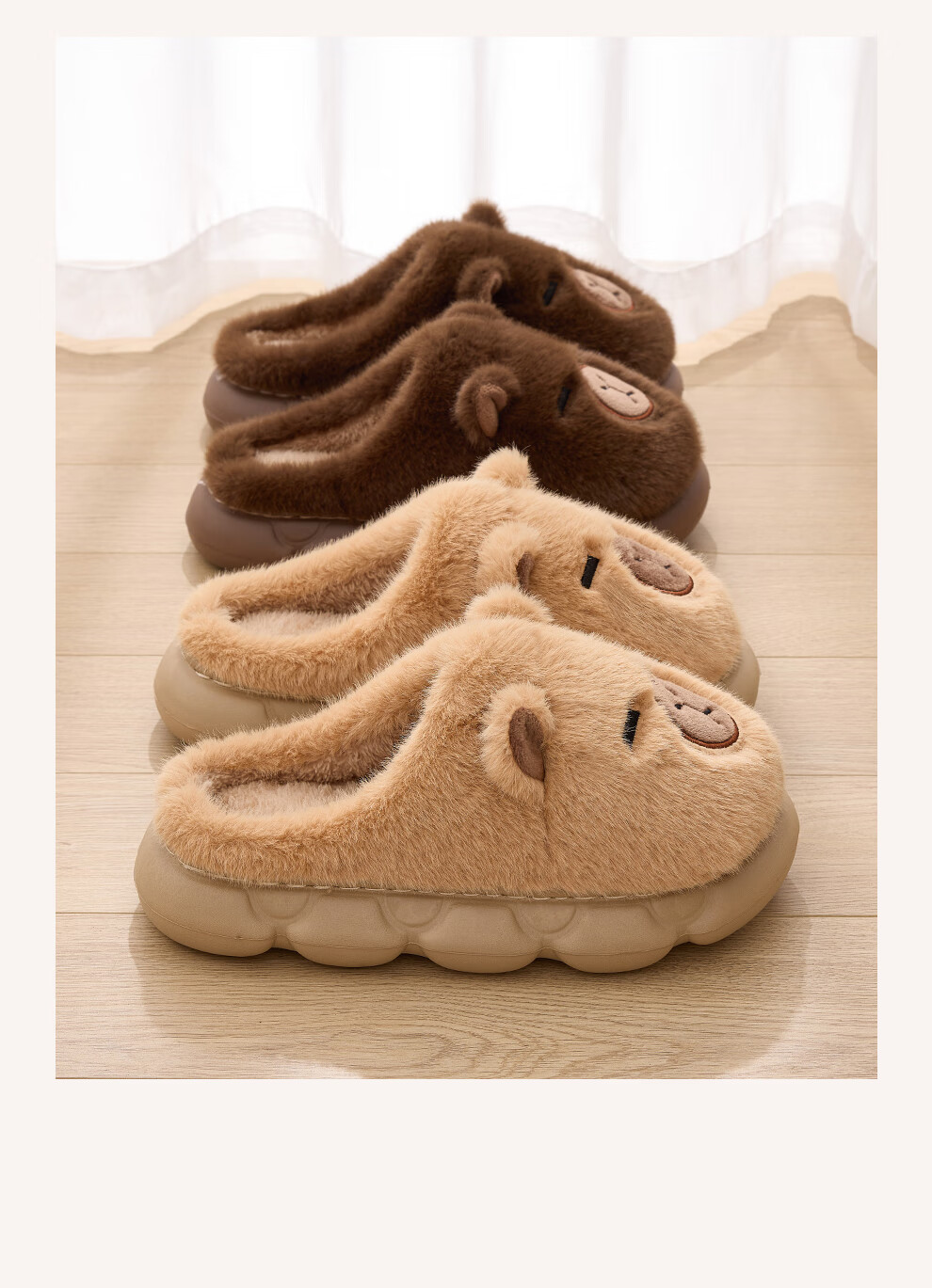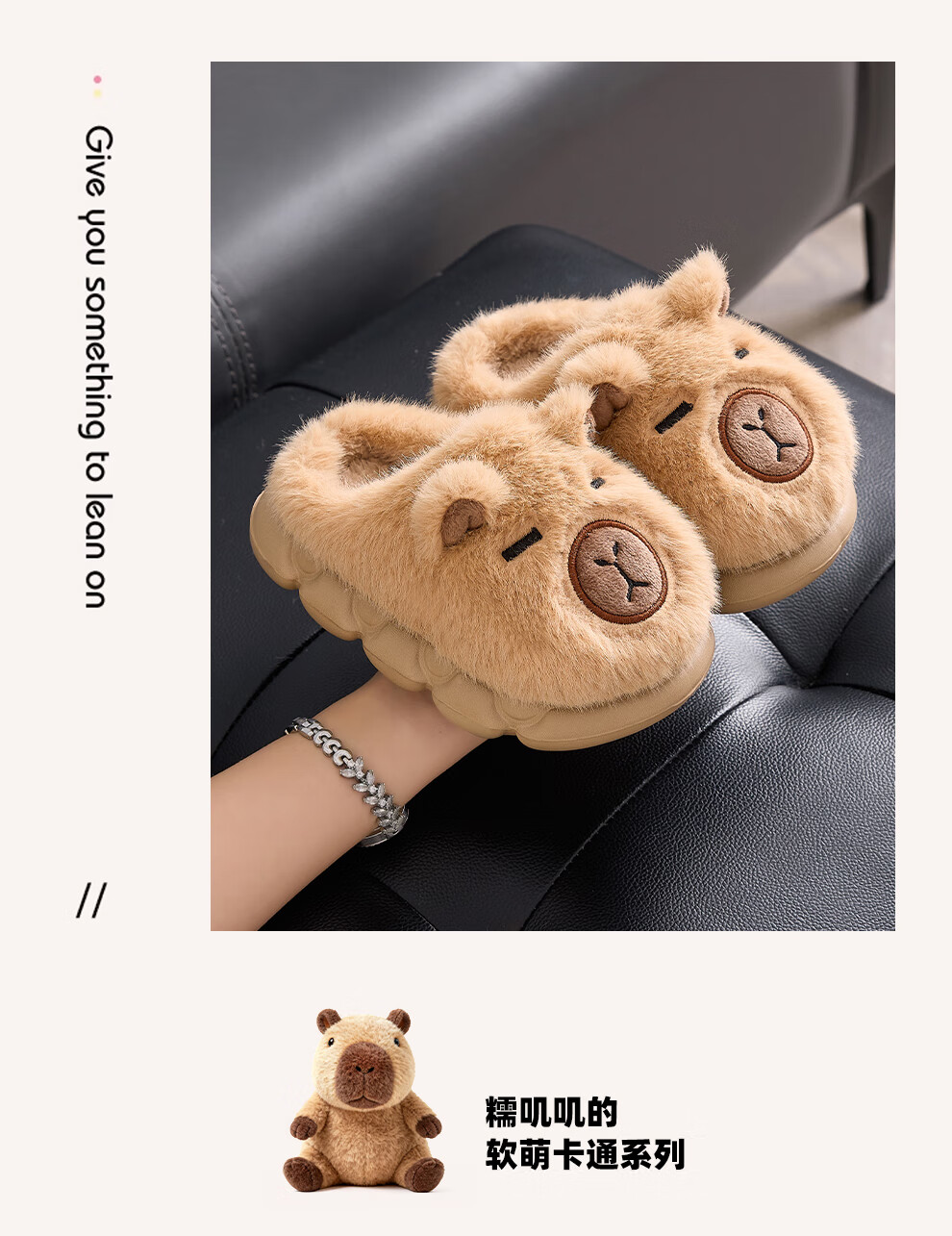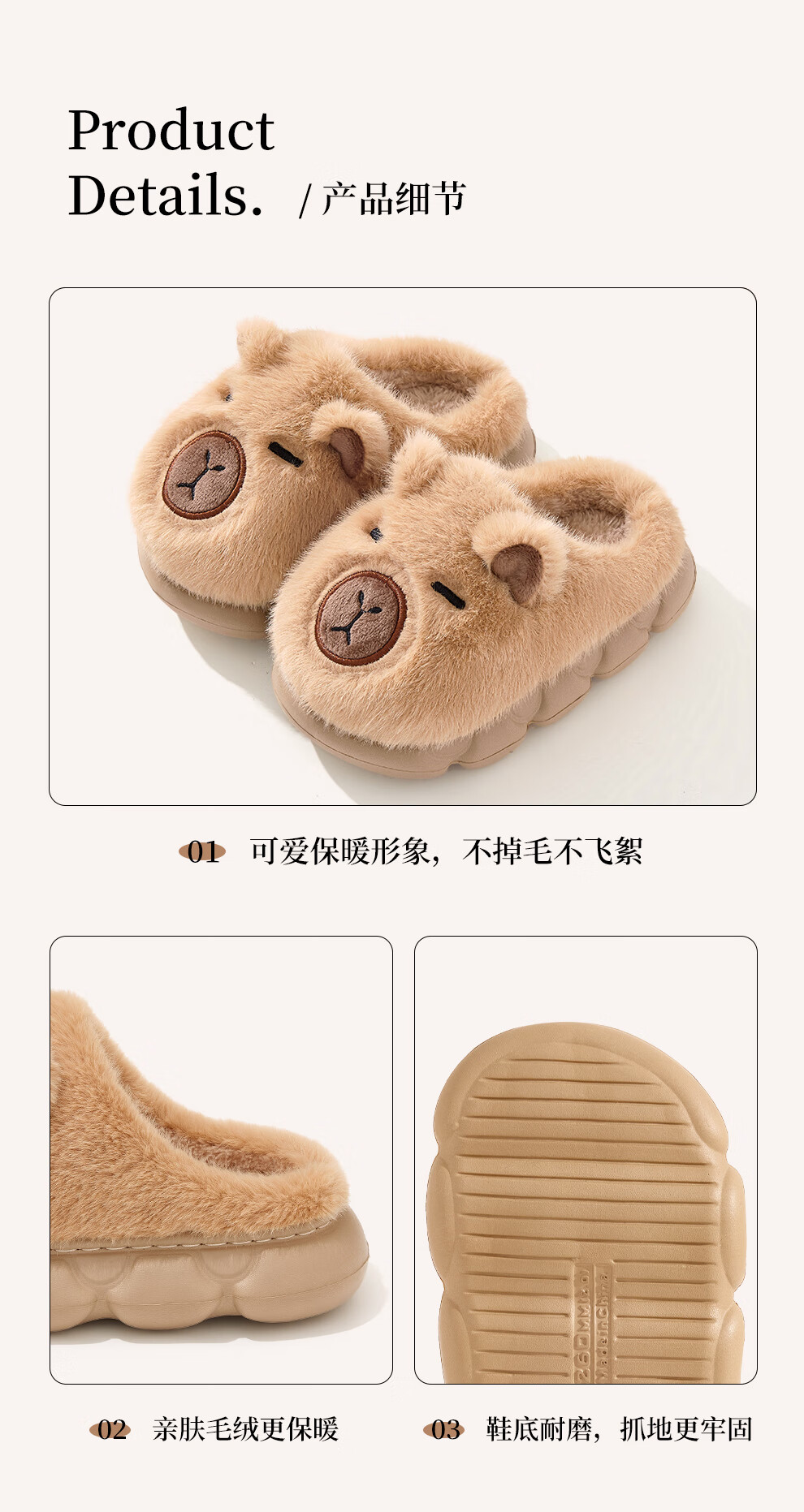 FZT卡皮巴拉冬季儿童包跟棉鞋保暖居家防滑可爱中小童男女棉拖亲子款 深咖【半包】 32-33 内长20CM适合脚长19