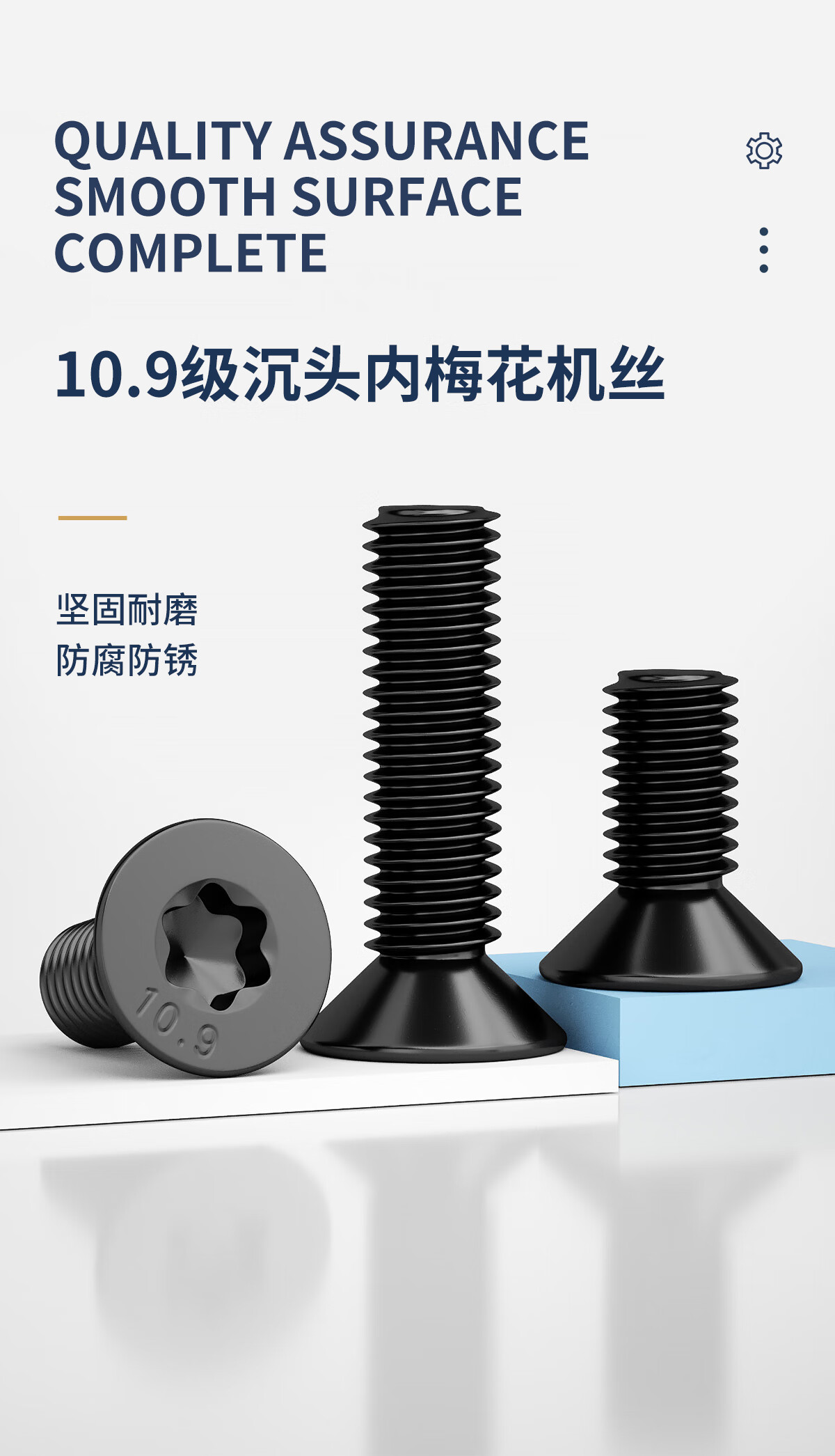 固万基(GUWANJI)10.9级高强度黑色沉头内梅花螺丝钉平头防盗螺栓M2M3M4M5M6M8M10 M8x16(20只)