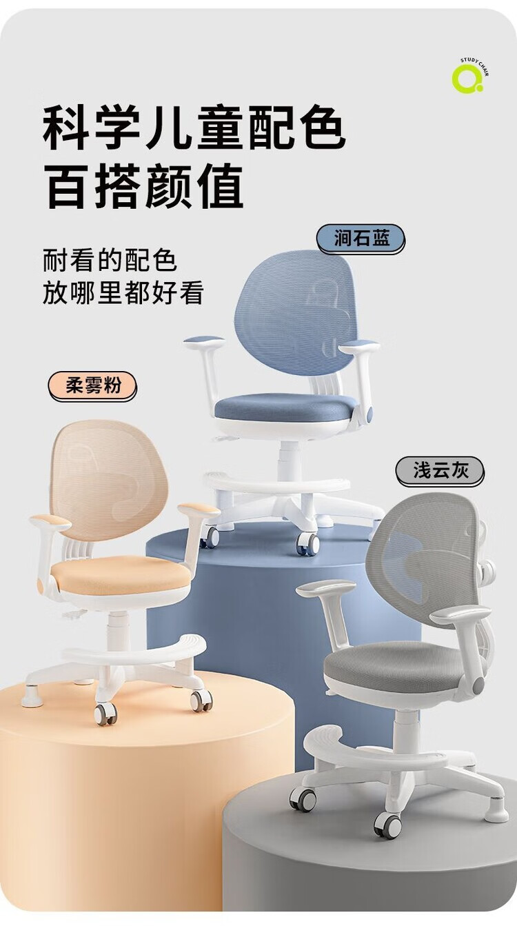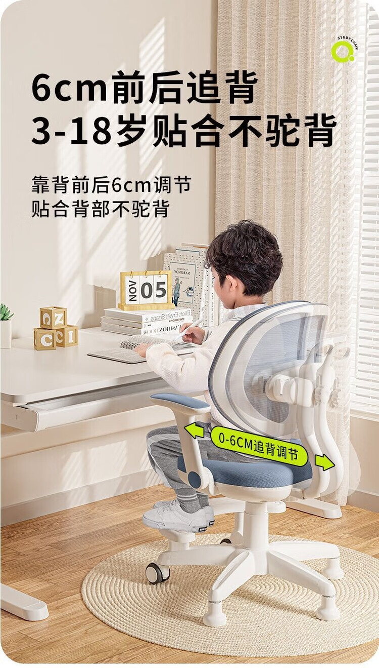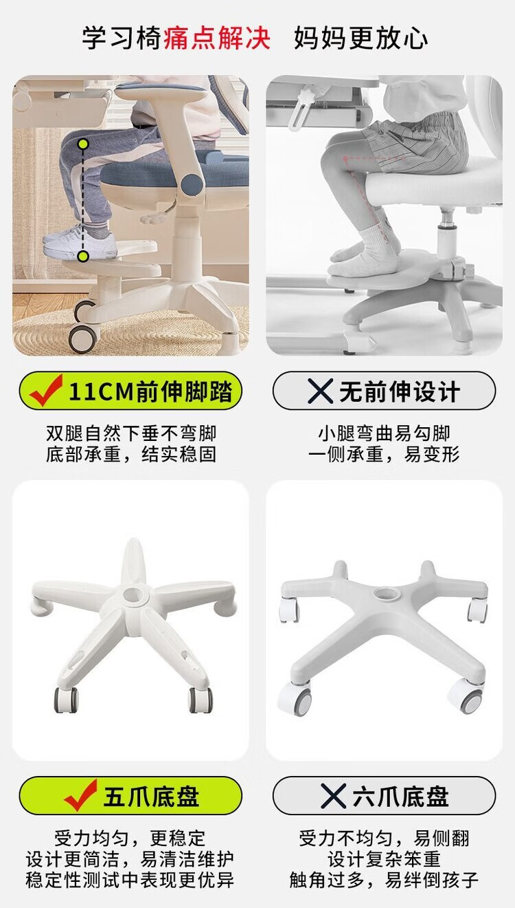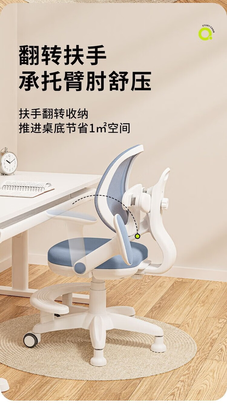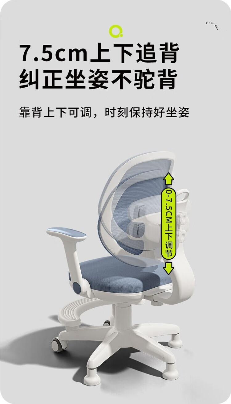 弘星隆儿童学习椅中小学生矫正坐姿追背可升降写字作业椅多功能座椅 【可旋转灰】坐高12cm可调/可承重300斤