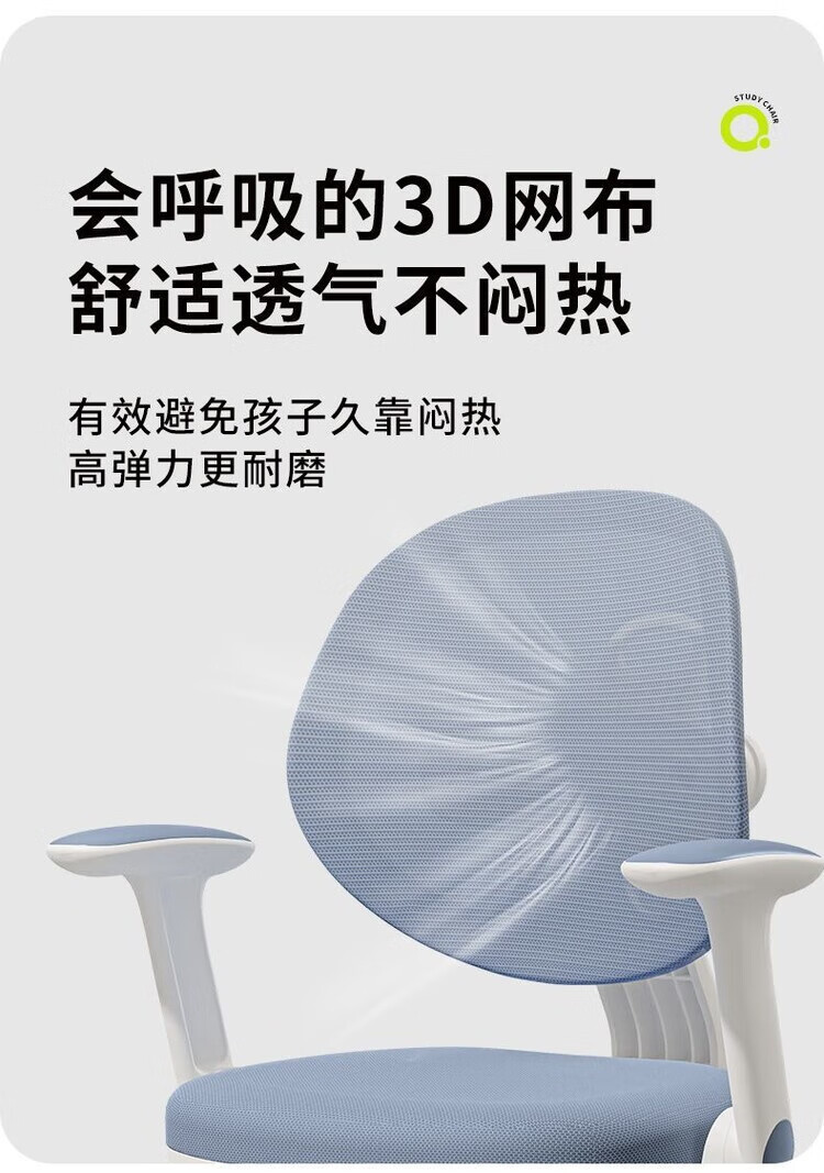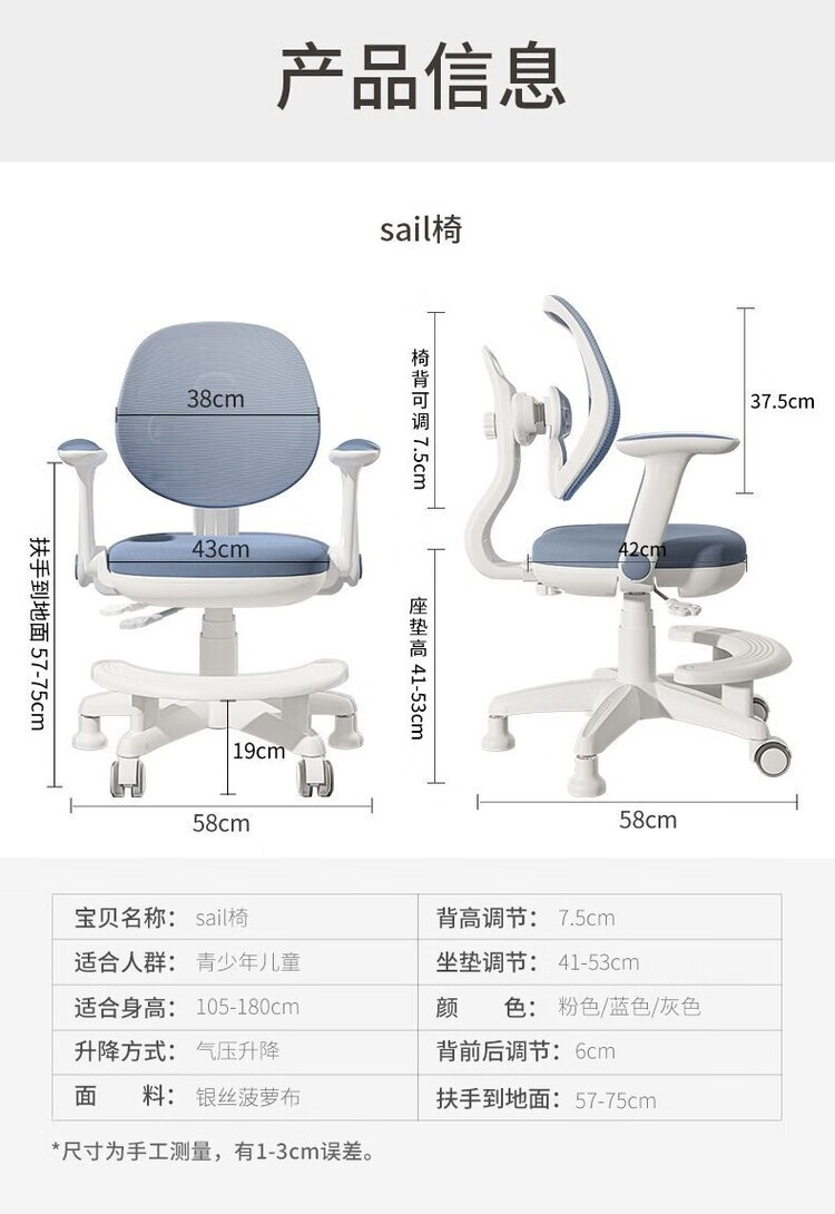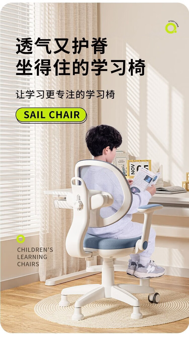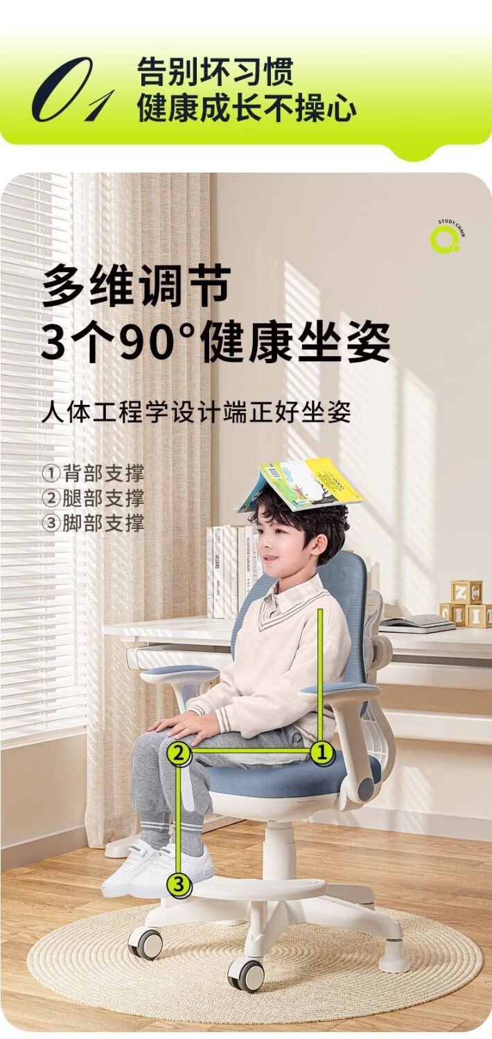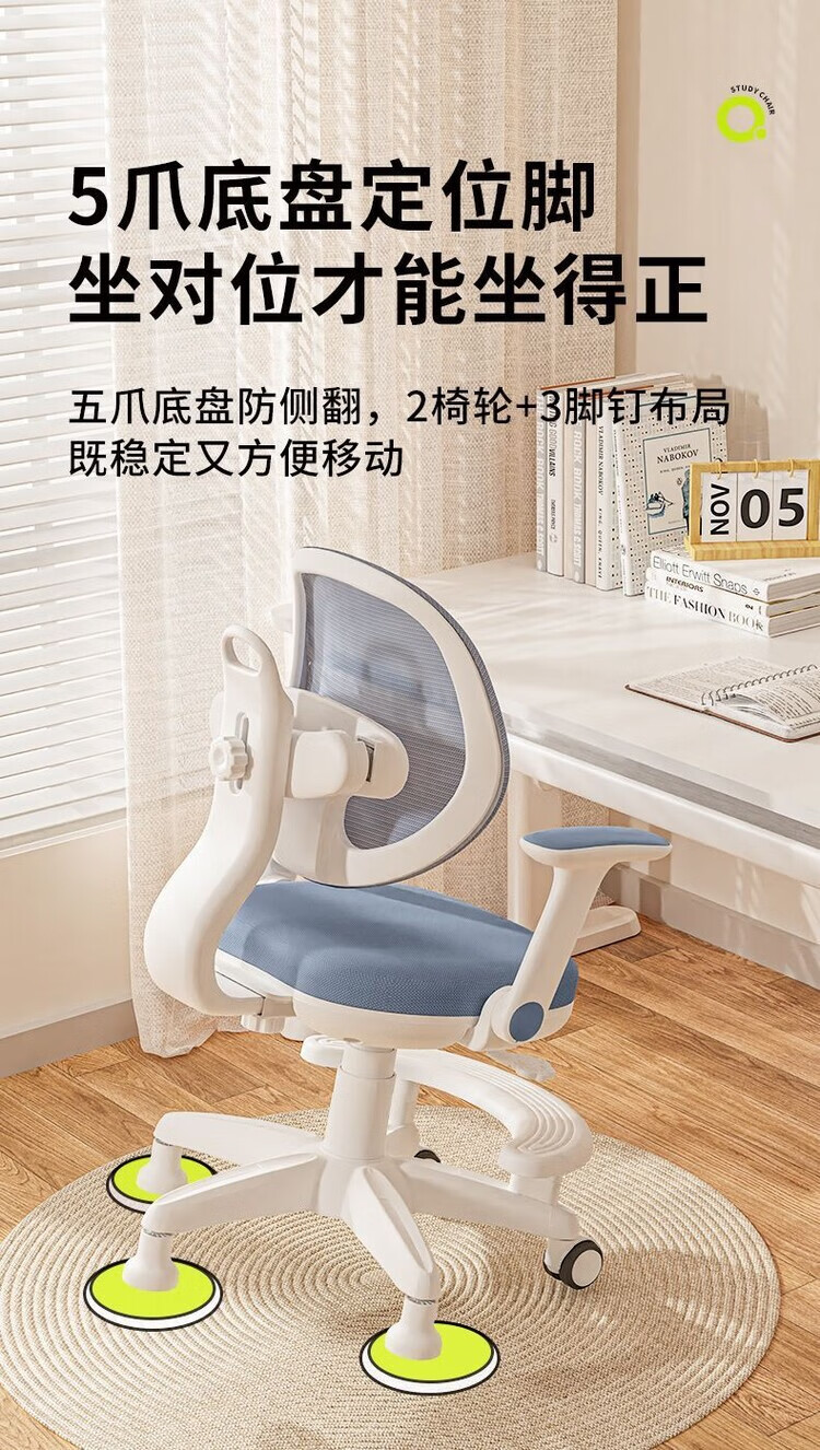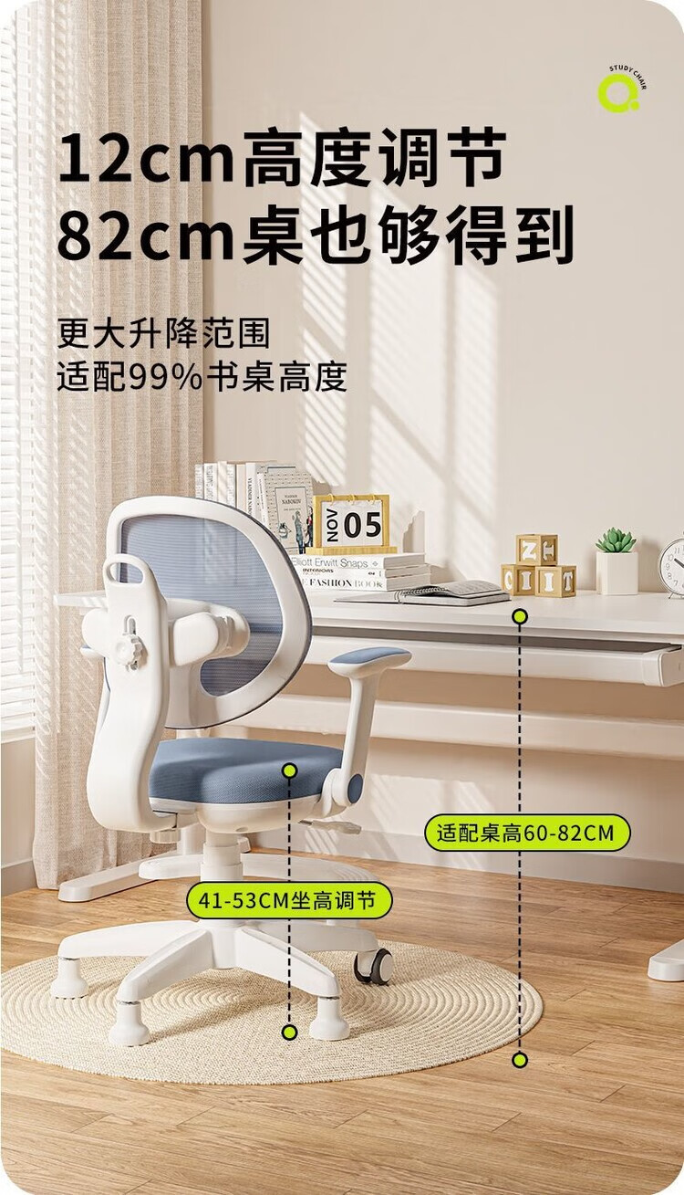 弘星隆儿童学习椅中小学生矫正坐姿追背可升降写字作业椅多功能座椅 【可旋转灰】坐高12cm可调/可承重300斤