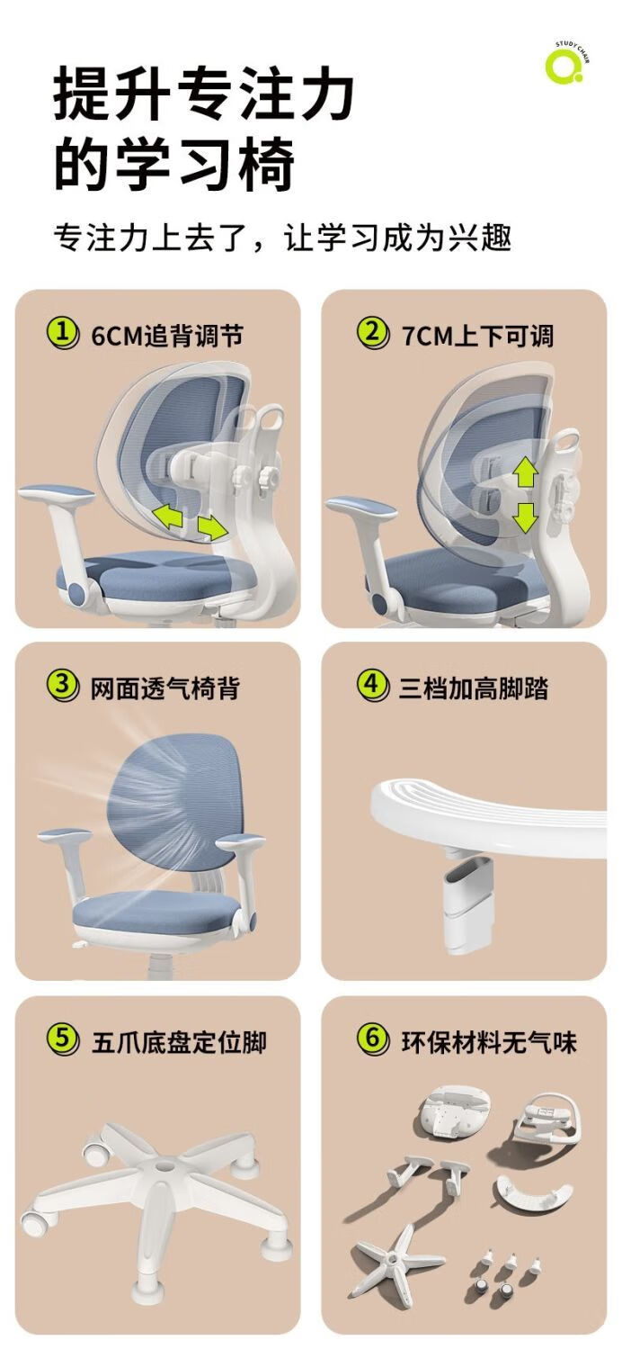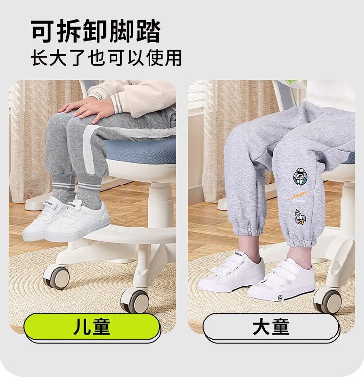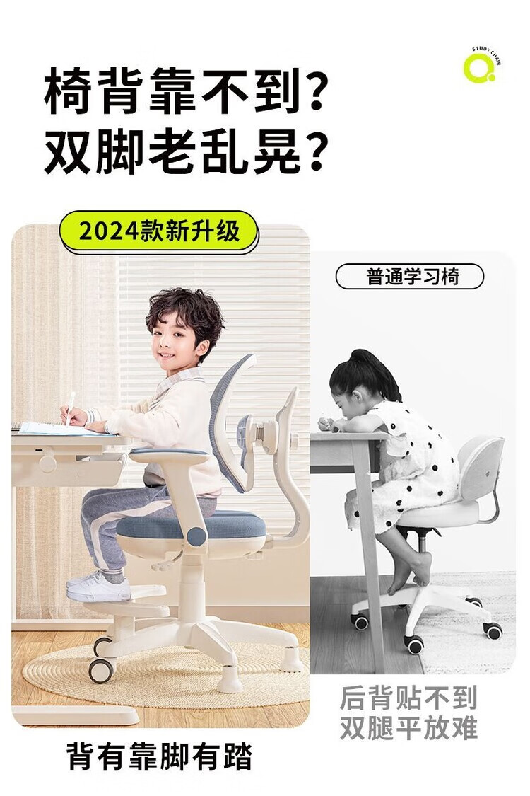 喵同学儿童学习椅子儿童座椅可升降调节中小学生专用写字椅追背椅靠背椅 自由升降+经典脚踏-加高款-灰