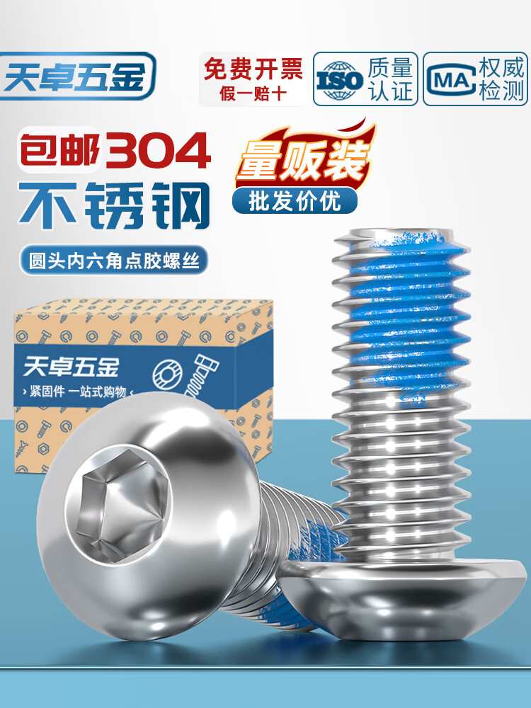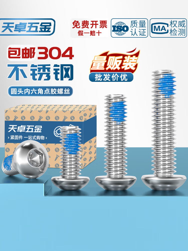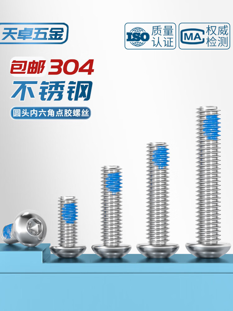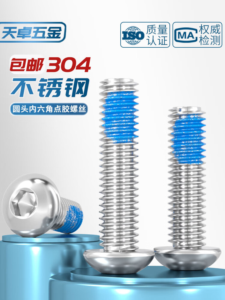 天卓五金304不锈钢圆头内六角点胶螺丝涂胶防松防滑耐脱螺钉M2M3M4M5-M12 M1.6*3【150个】