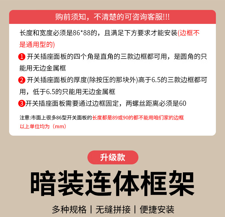 国际电工86型超薄连体开关面板边框修复器肤感家用插座底盒接线盒二联框架 二联框架(奶油白) 配件类