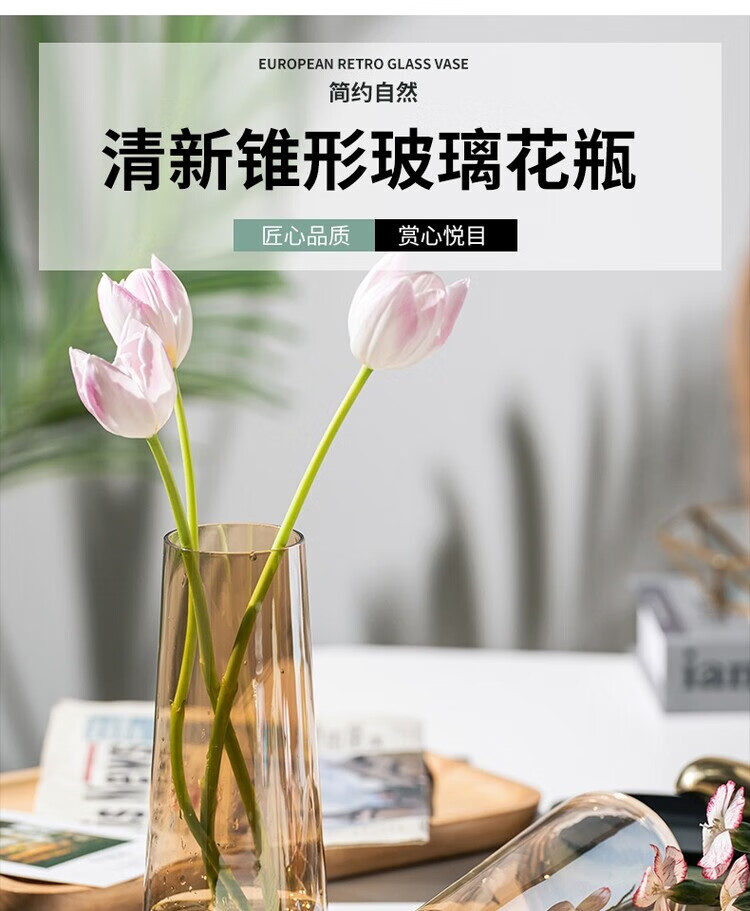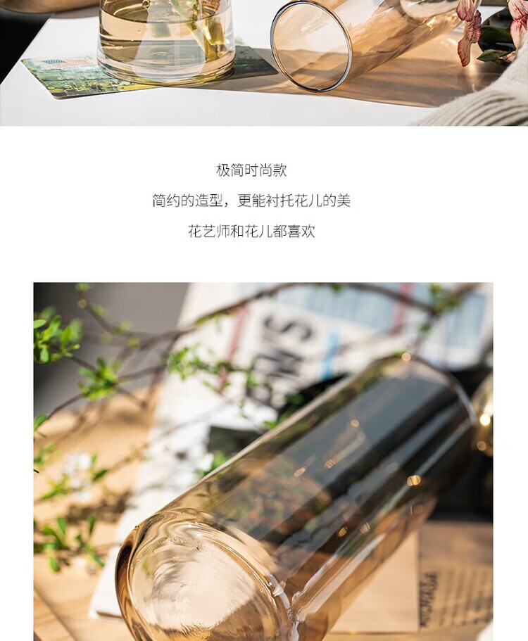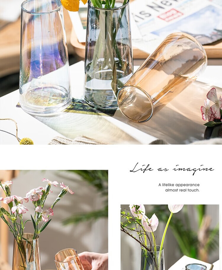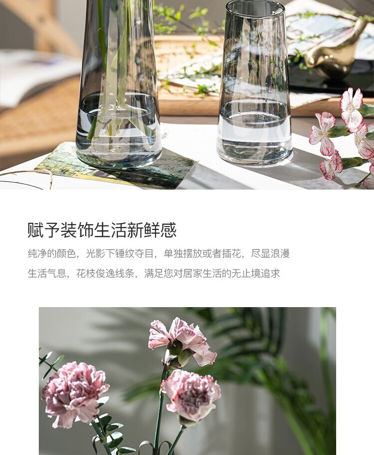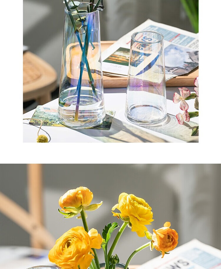 OYKTN北欧ins风简约透明玻璃花瓶水培鲜花插花小花瓶客厅水养创意摆件 北欧款小号(透明色) 中等