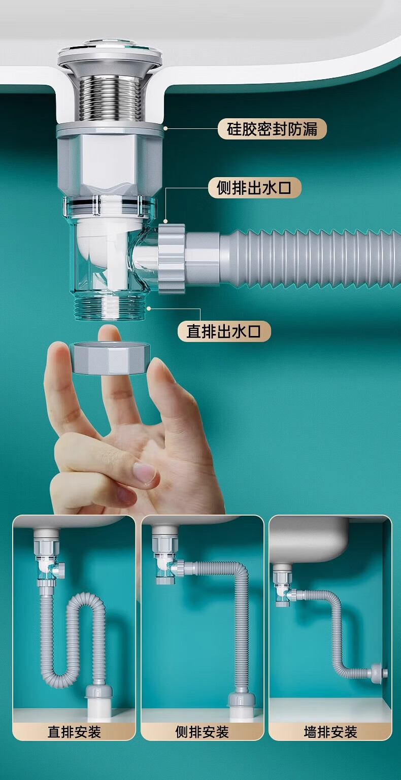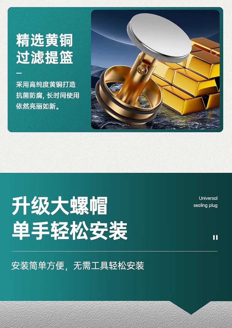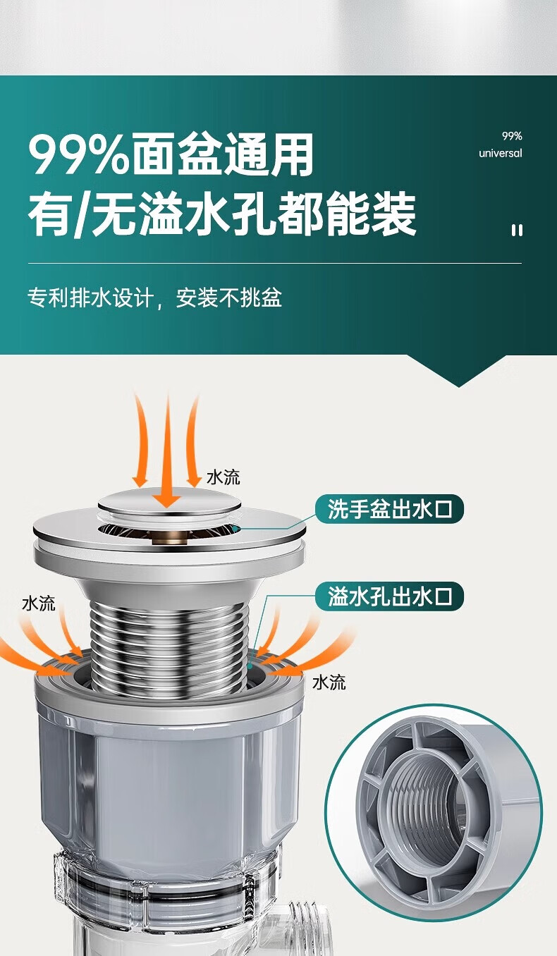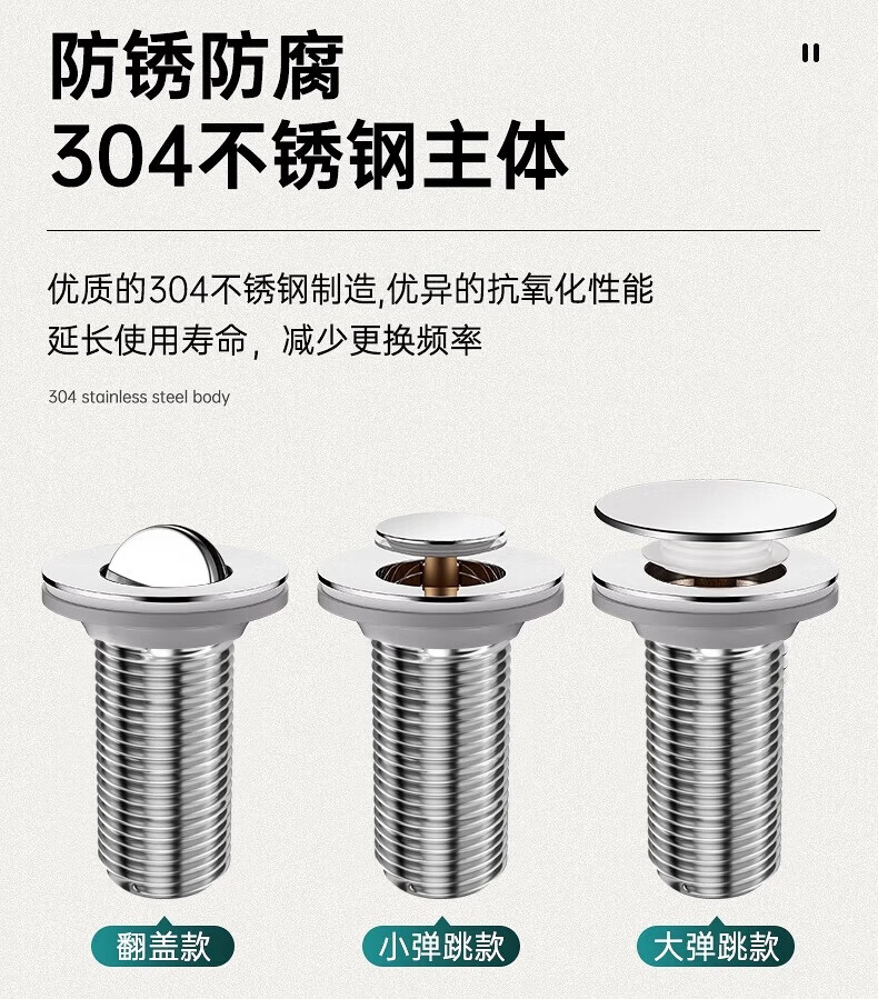 壹品印象洗手盆弹跳下水器套装 【大盖】304不锈钢下水器套装