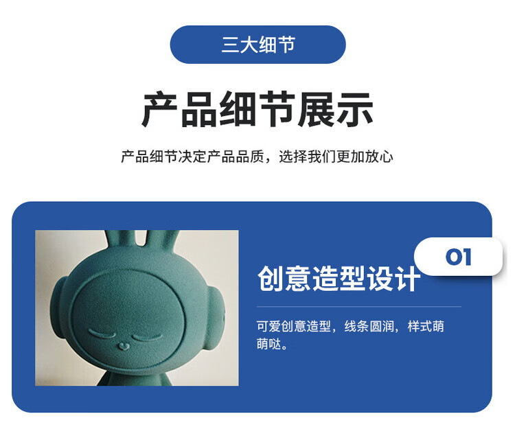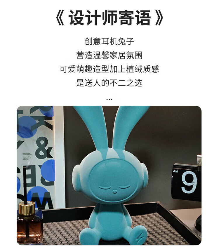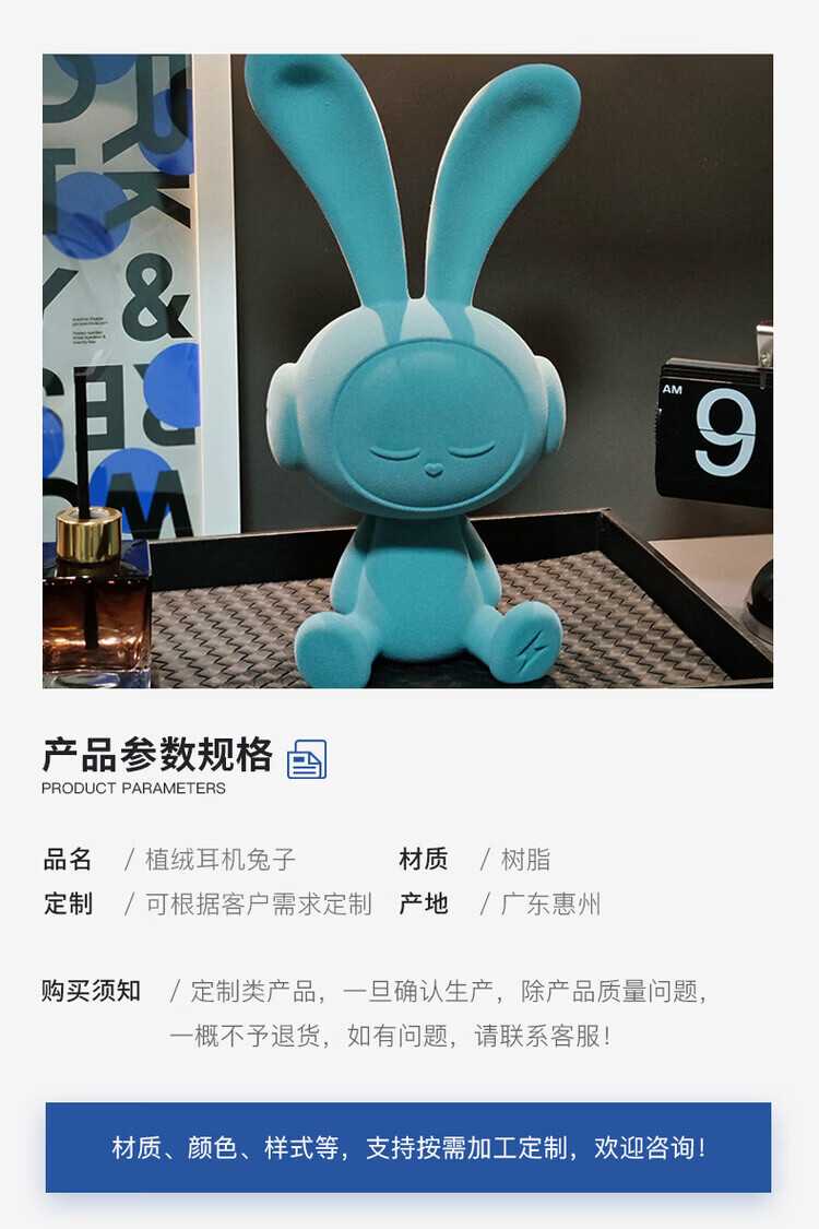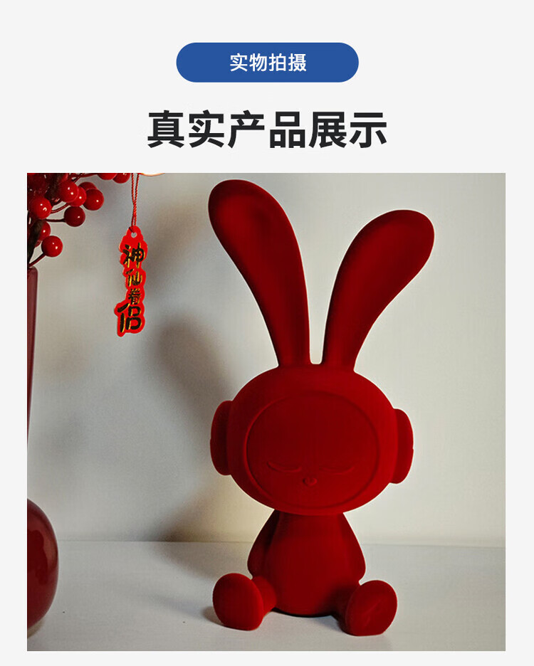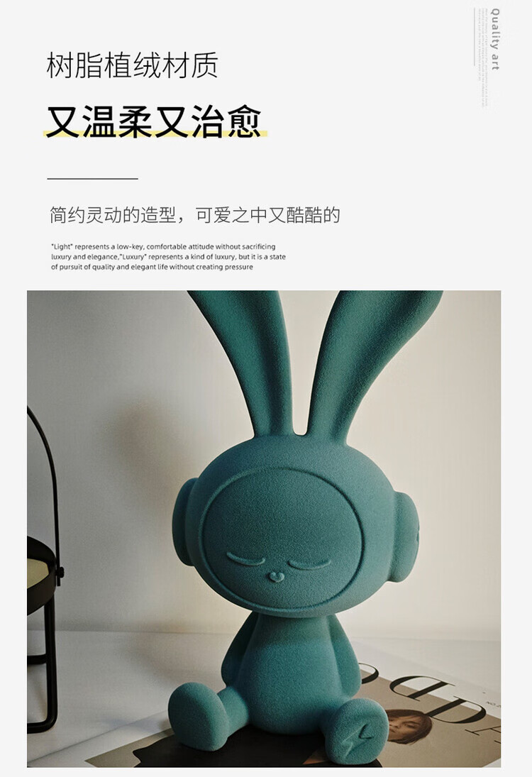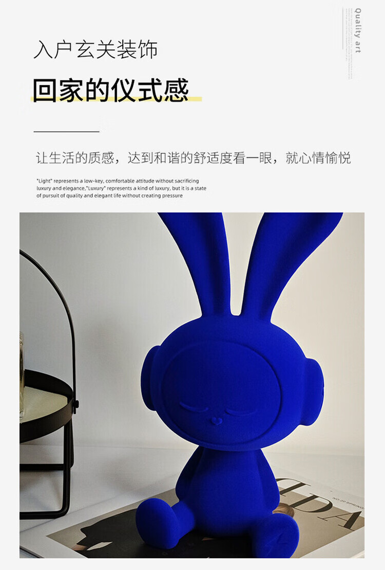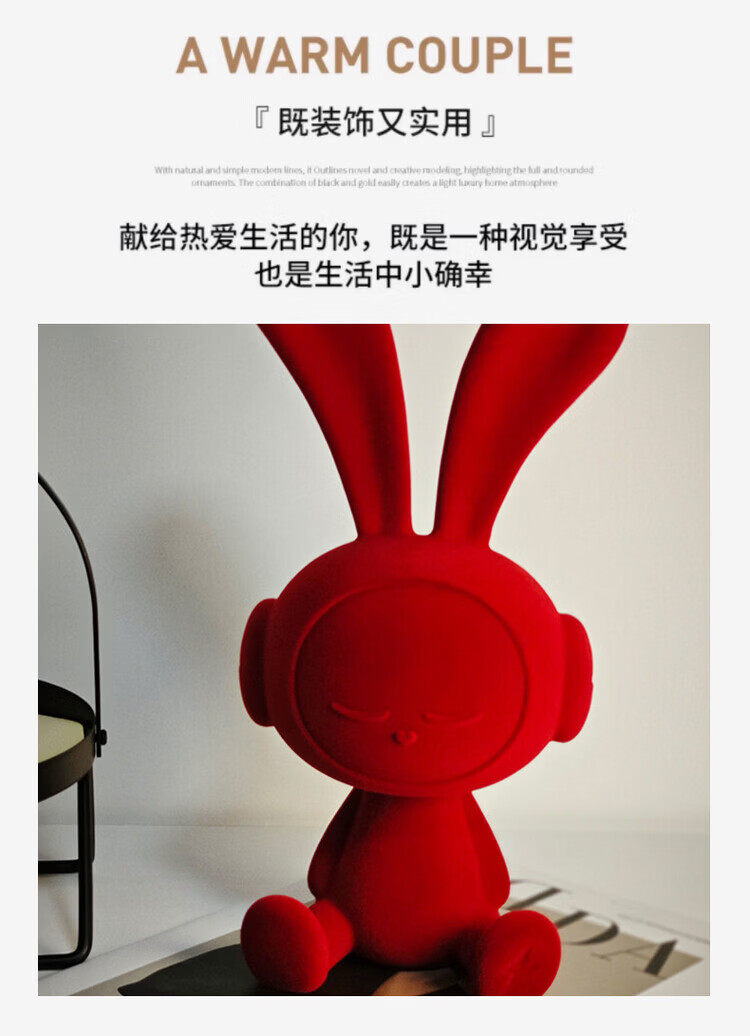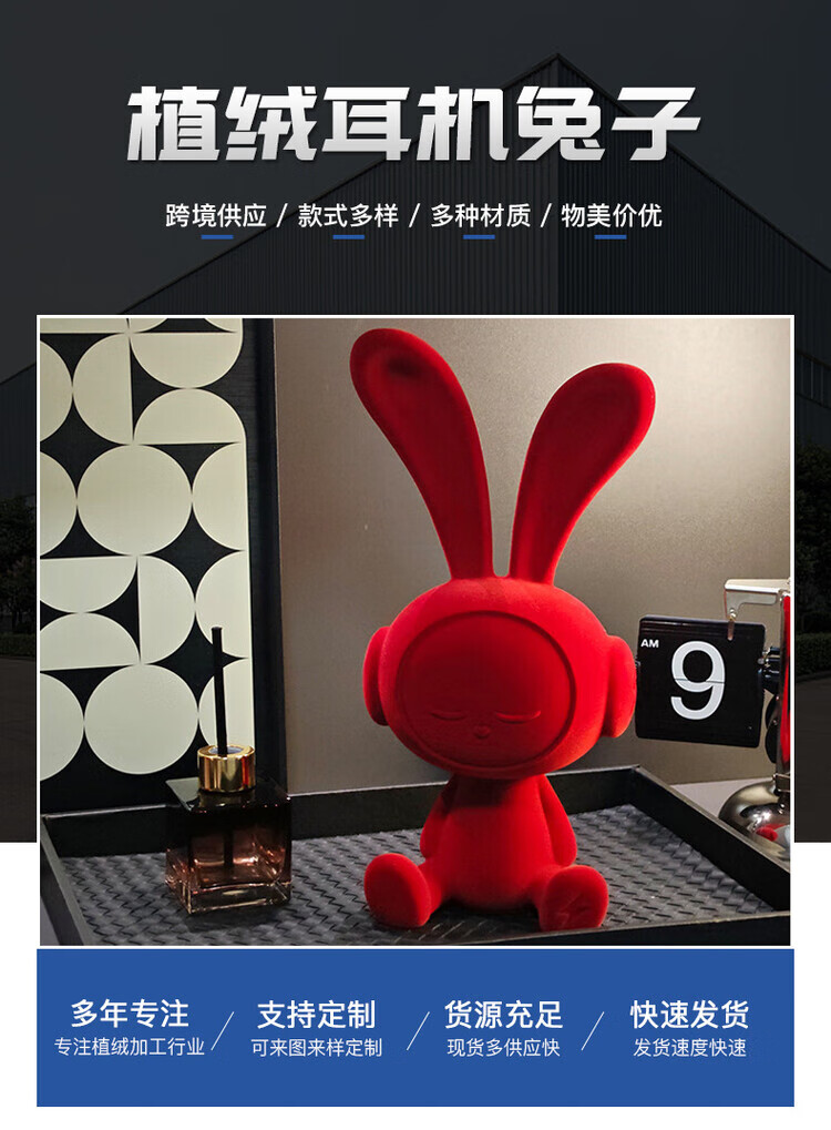 OYKTN植绒耳机兔子摆件桌摆玄关客厅动物兔子树脂植绒工艺品公仔 红色 31*16*12cm