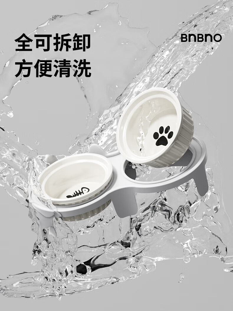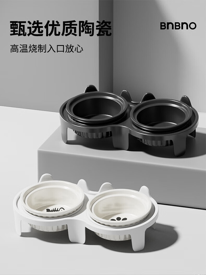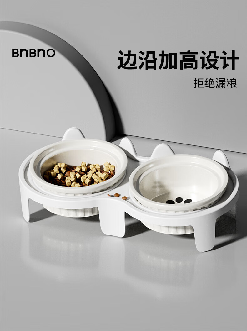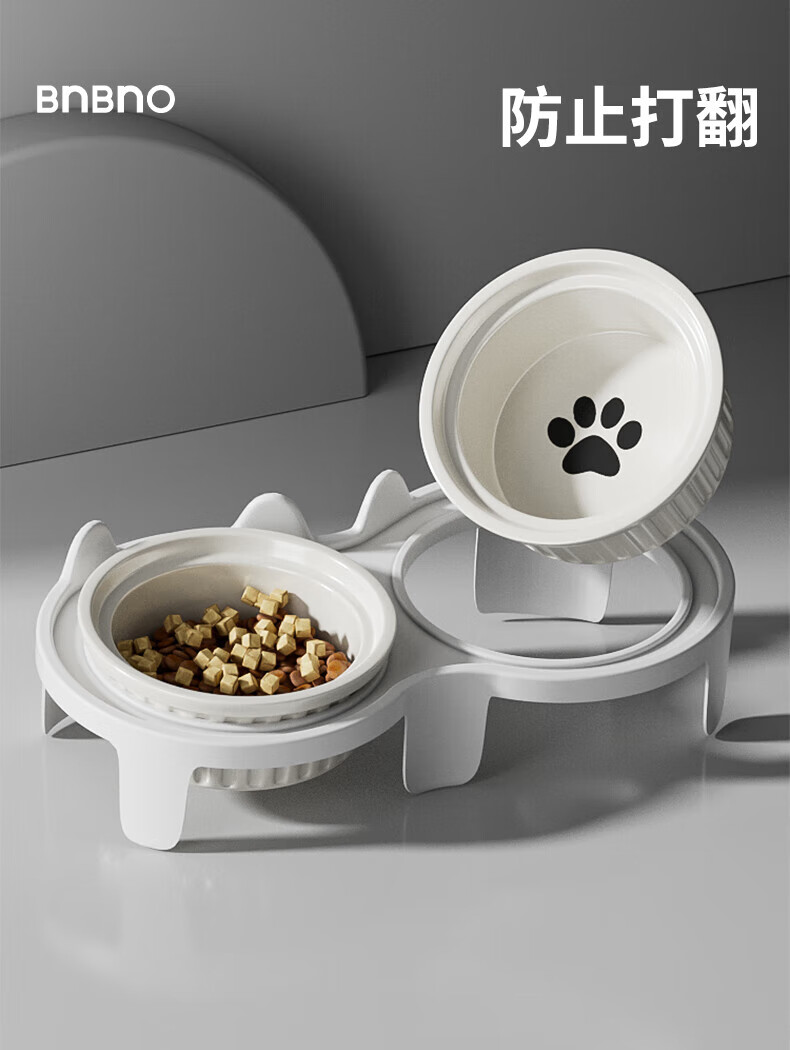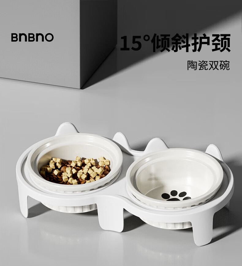 BNBNO猫碗陶瓷猫食盆猫咪饭碗双碗斜口狗狗碗喝水碗保护颈椎防打翻用品