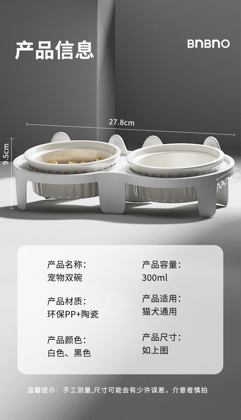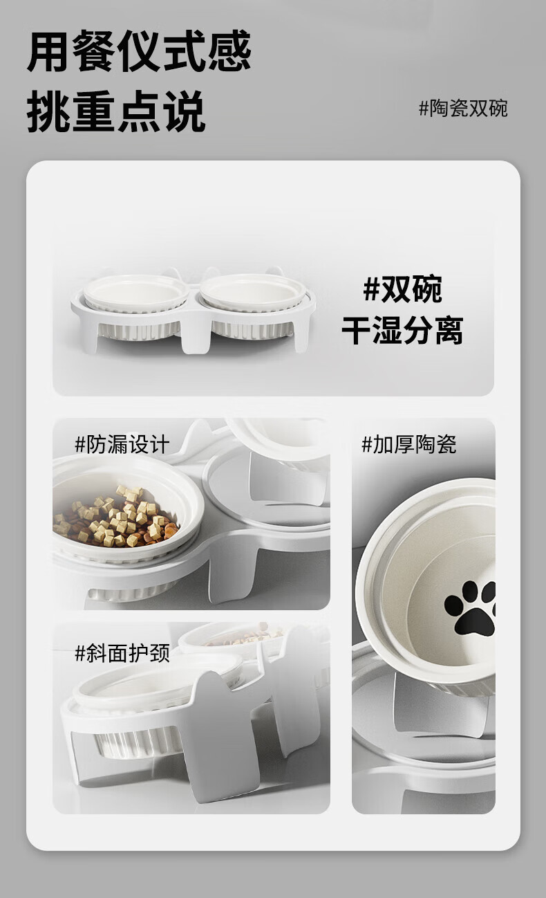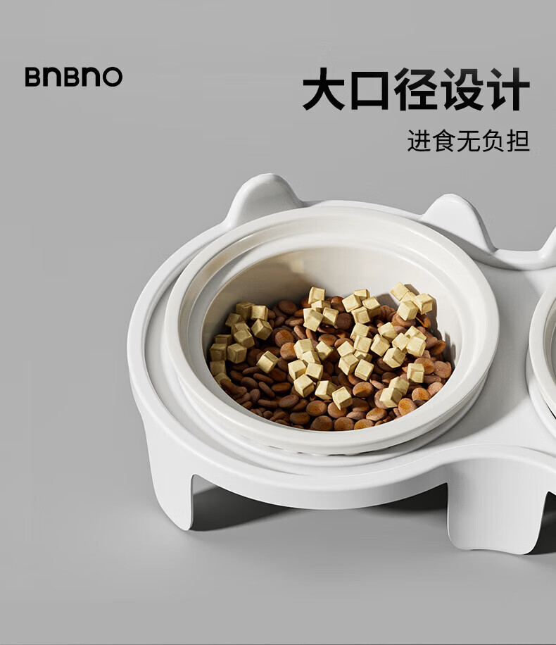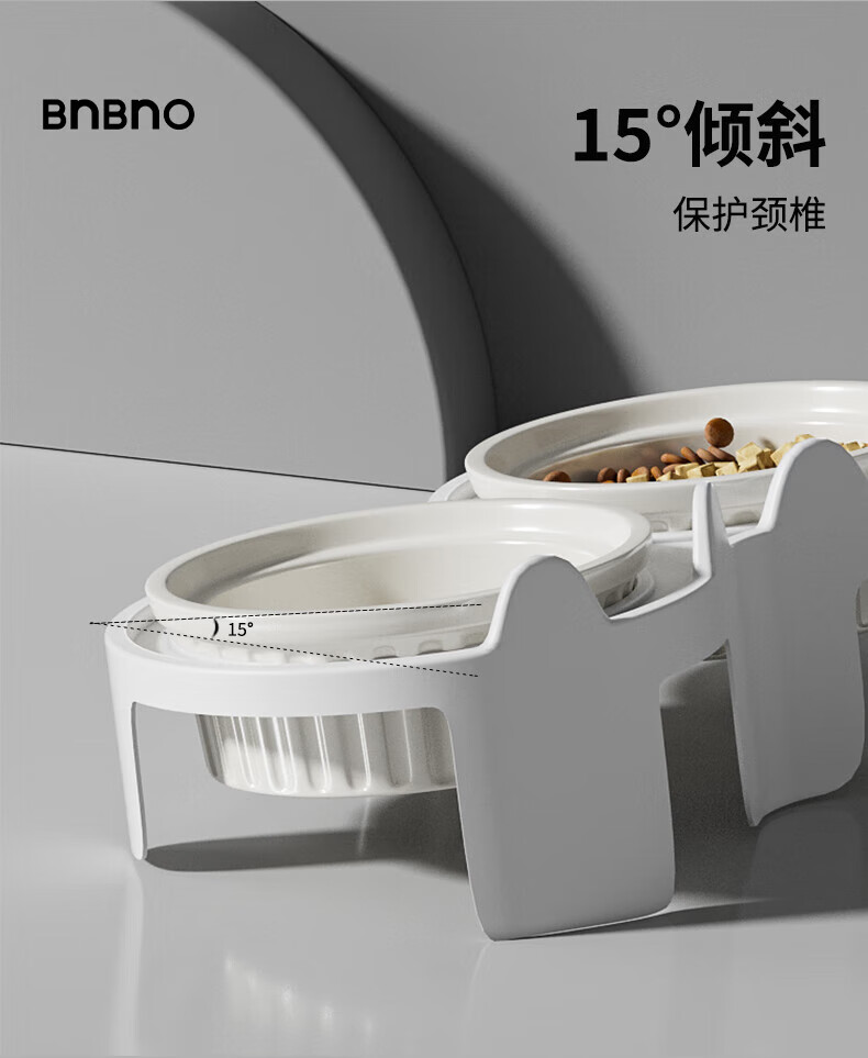 BNBNO猫碗陶瓷猫食盆猫咪饭碗双碗斜口狗狗碗喝水碗保护颈椎防打翻用品