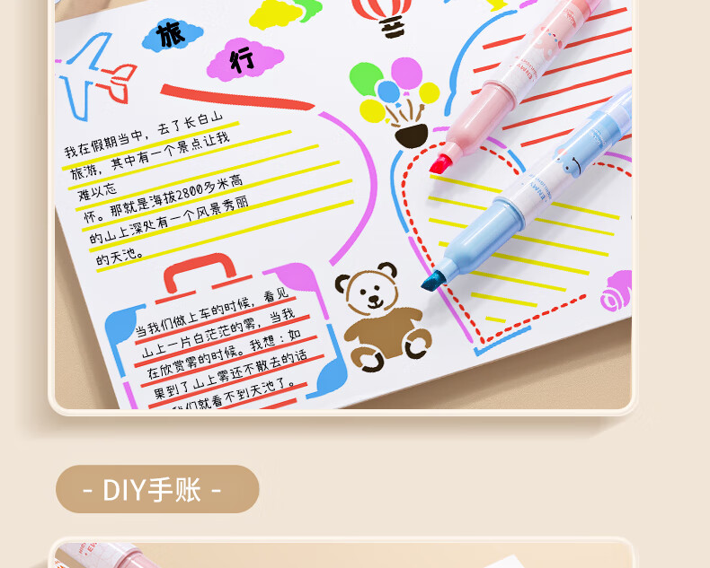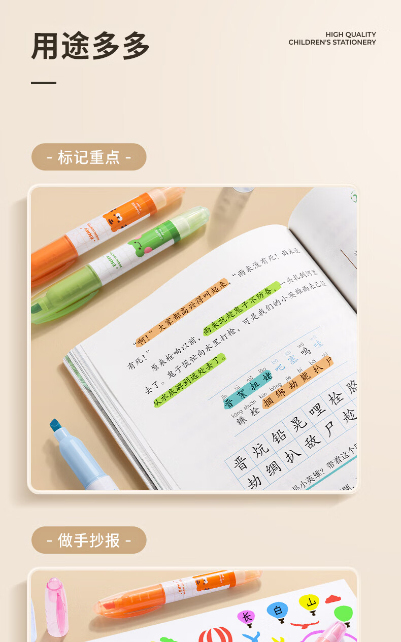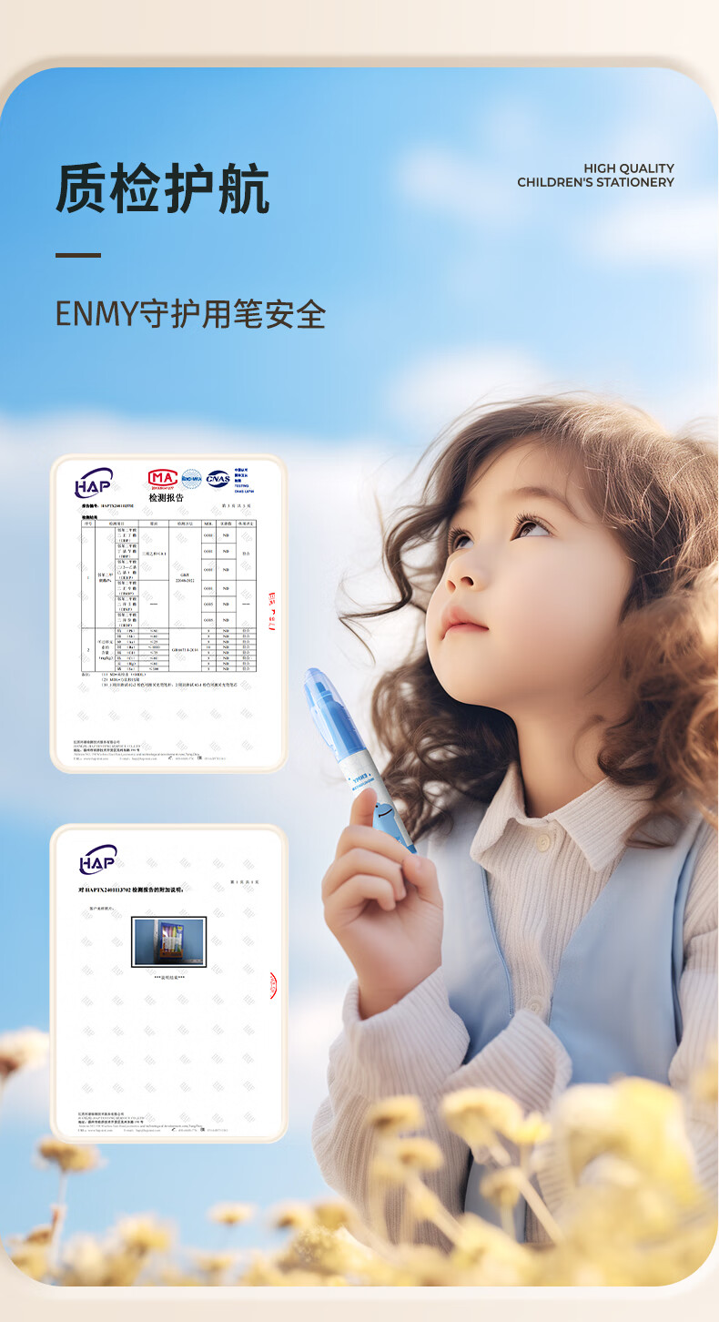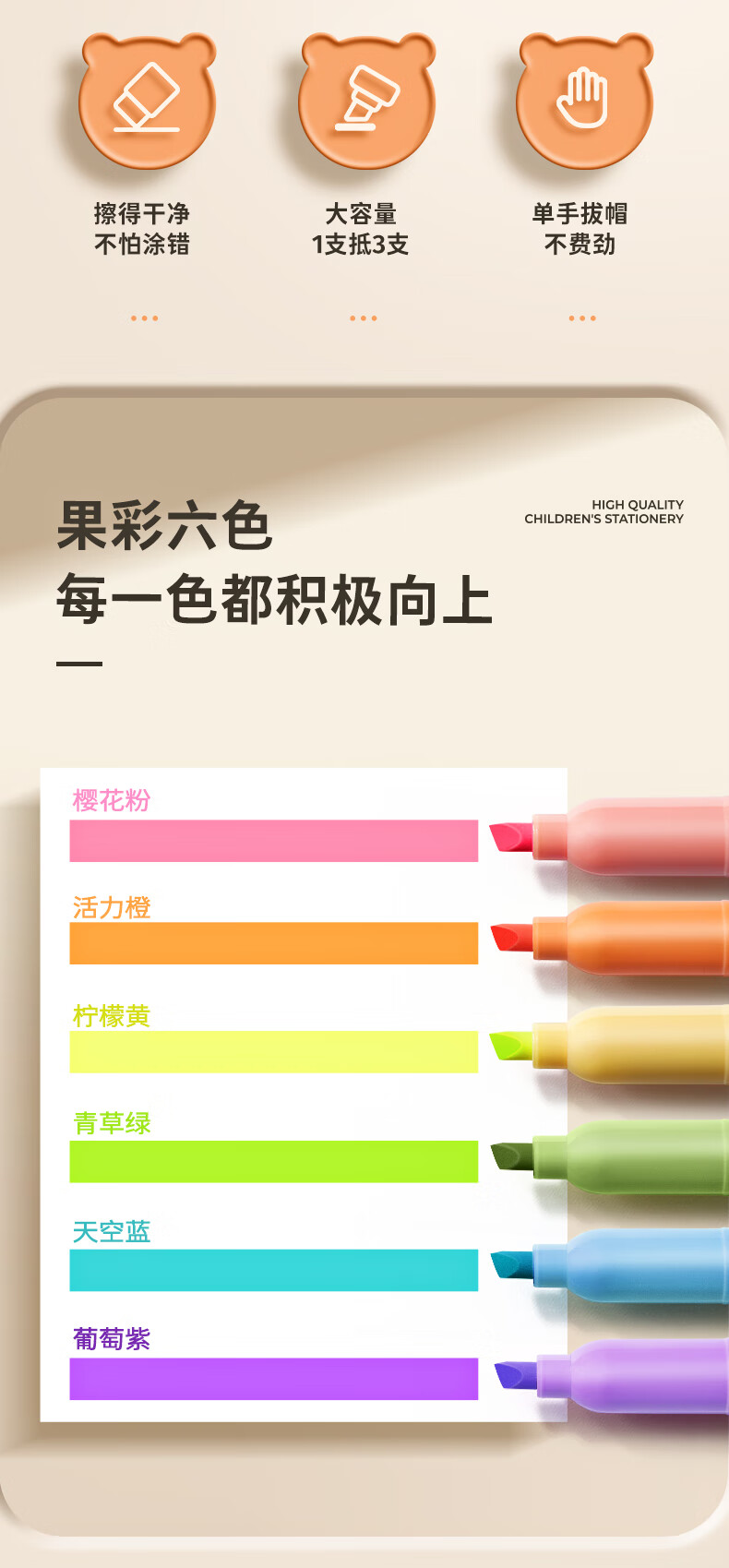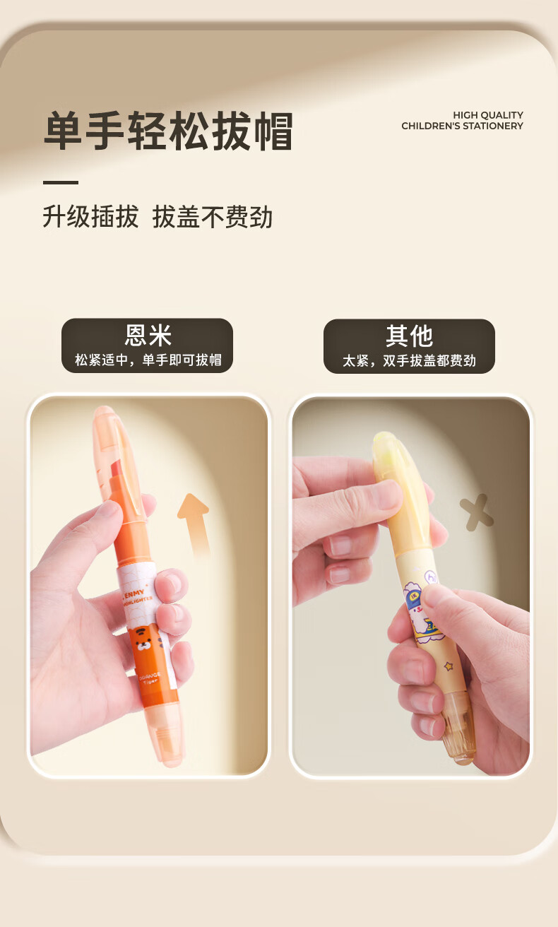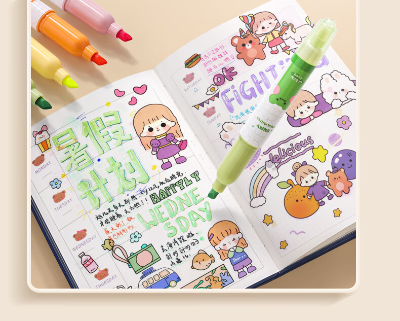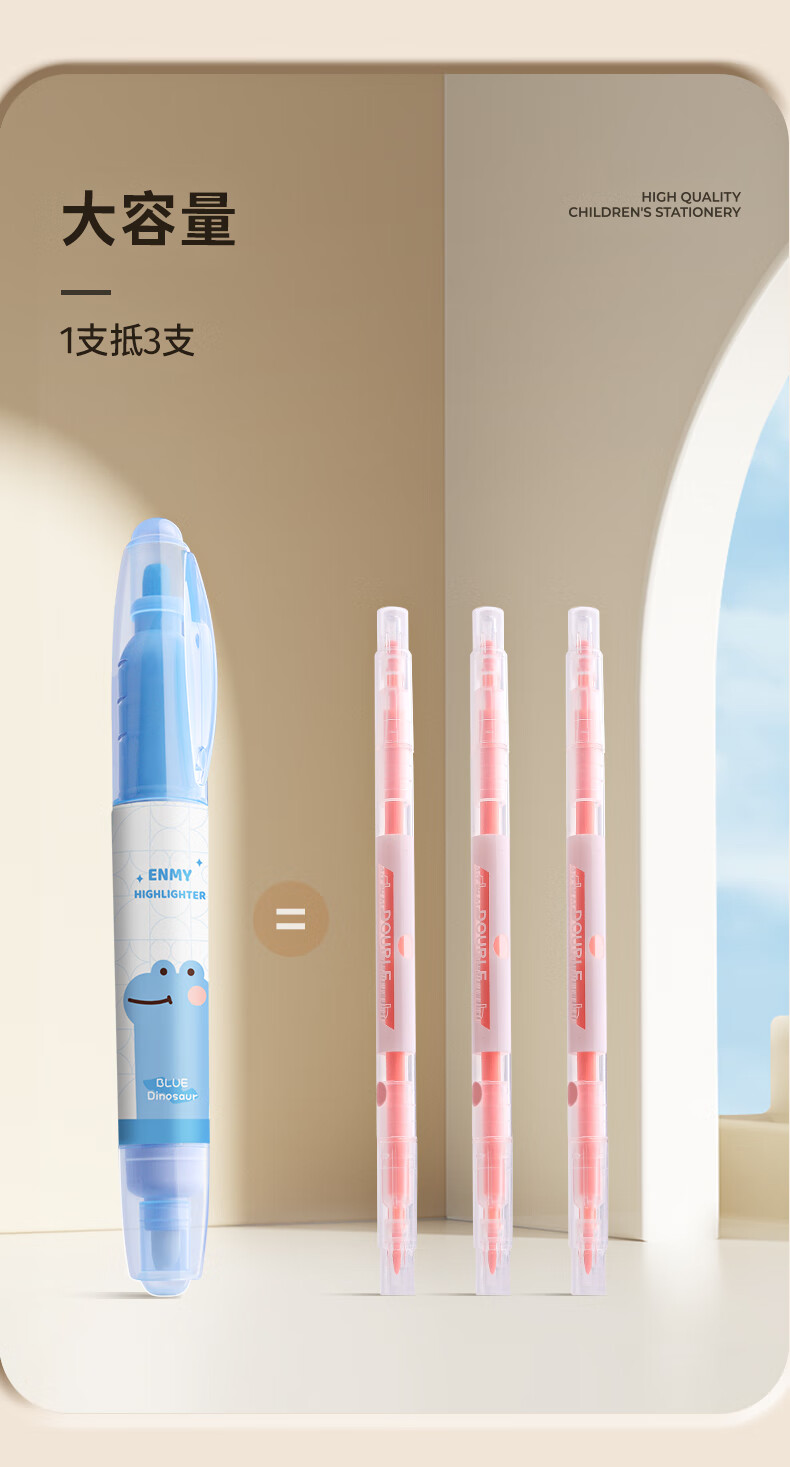 恩米enmy双头可擦荧光笔荧光色6支/盒学生复习醒目标记笔水性记号笔划重点多色笔开学礼物必备用品