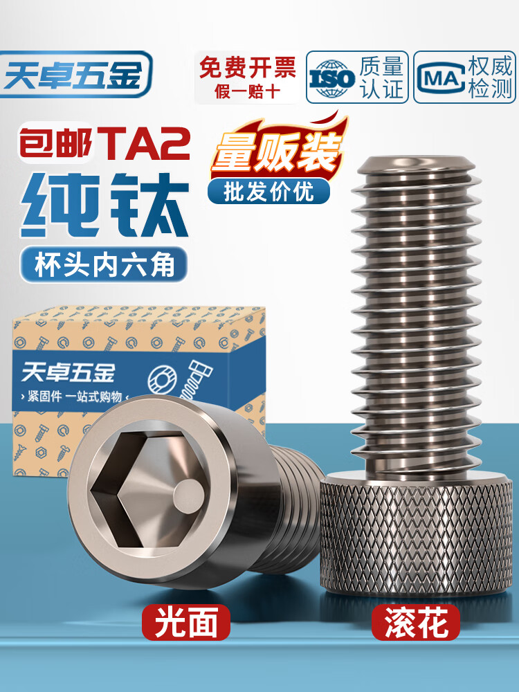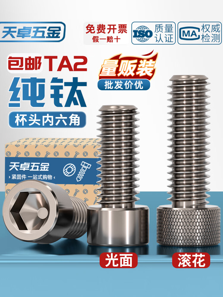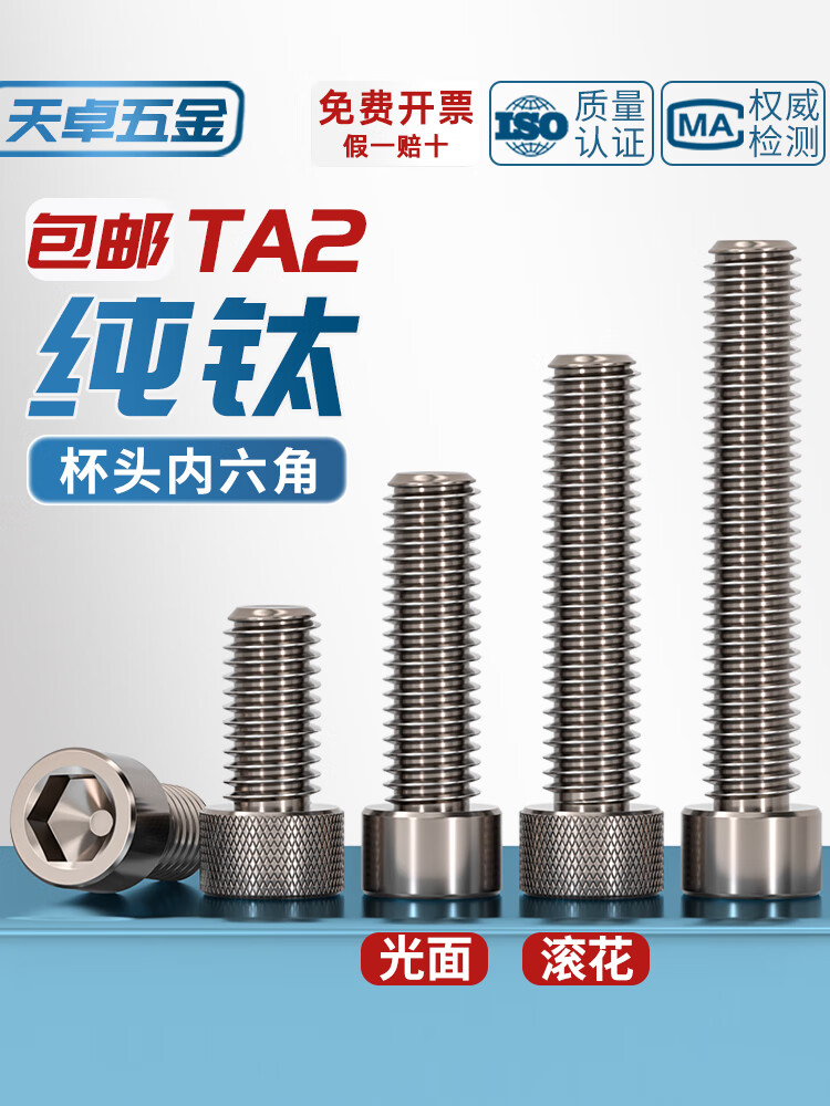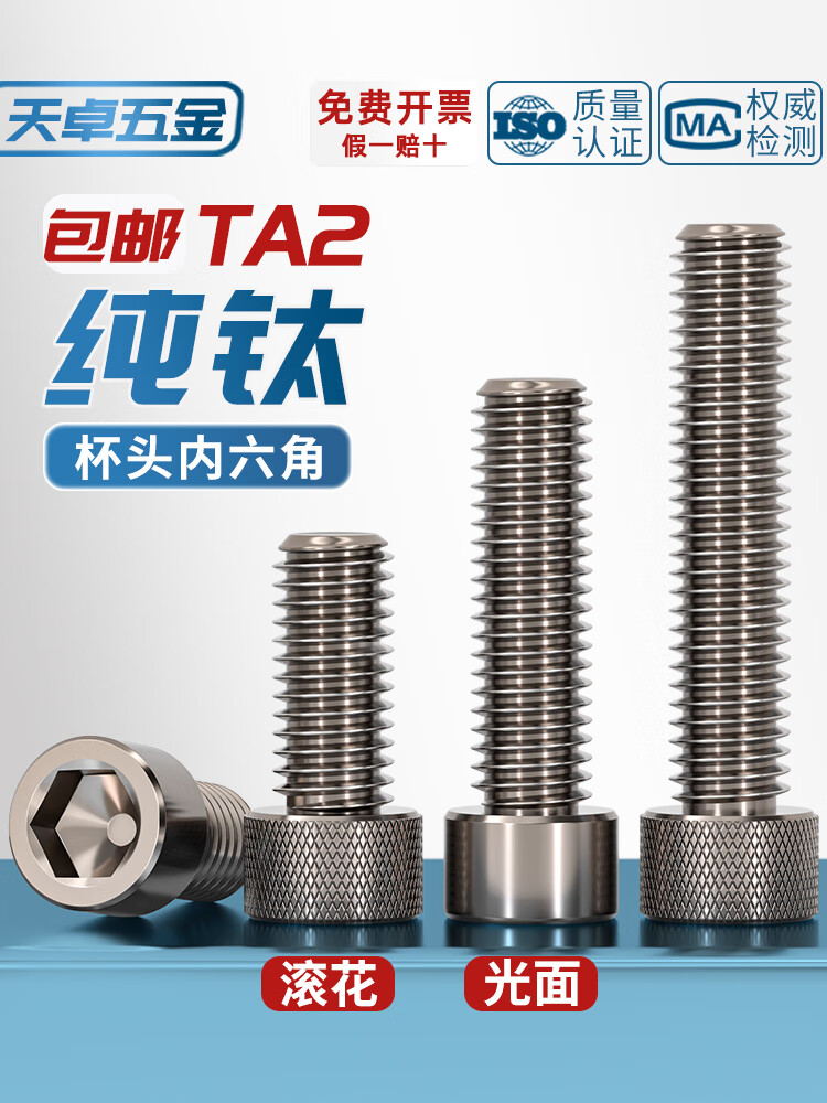 天卓五金国标TA2纯钛内六角螺丝钛合金圆柱头螺栓杯头螺钉M3M4M5M6M8M10mm 滚花 M3*10-8个