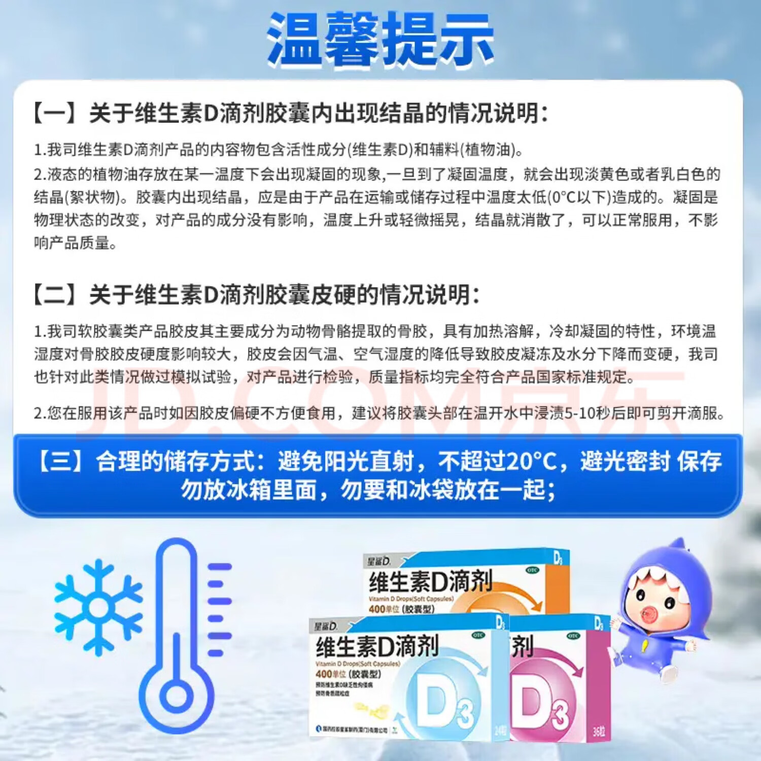 [星鲨]维生素D滴剂 400IU*36粒 1盒装 400IU*36粒 儿童维生素d3星鲨 d3婴幼儿预防佝偻病 促进钙吸收 半月量