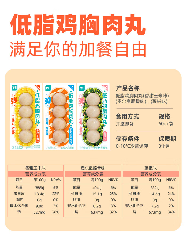 优形【京东速发】低脂鸡胸肉高蛋白健身营养生鲜早餐休闲零食充饥食品 奥尔良*6+烧烤*6袋100g*12袋