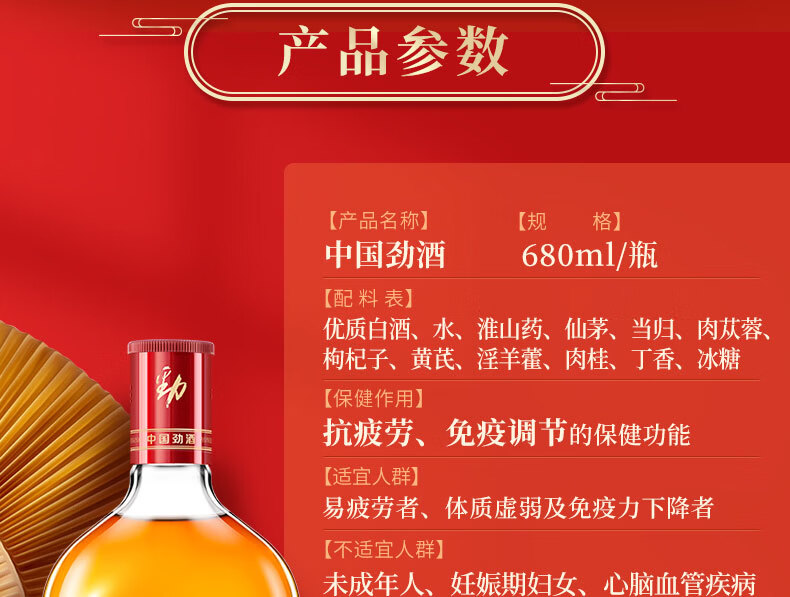劲牌劲酒 中国劲酒35度 600mL/680mL 居家聚会自饮 节日礼品 低度 35度 680mL 1瓶 +人参八珍酒1瓶