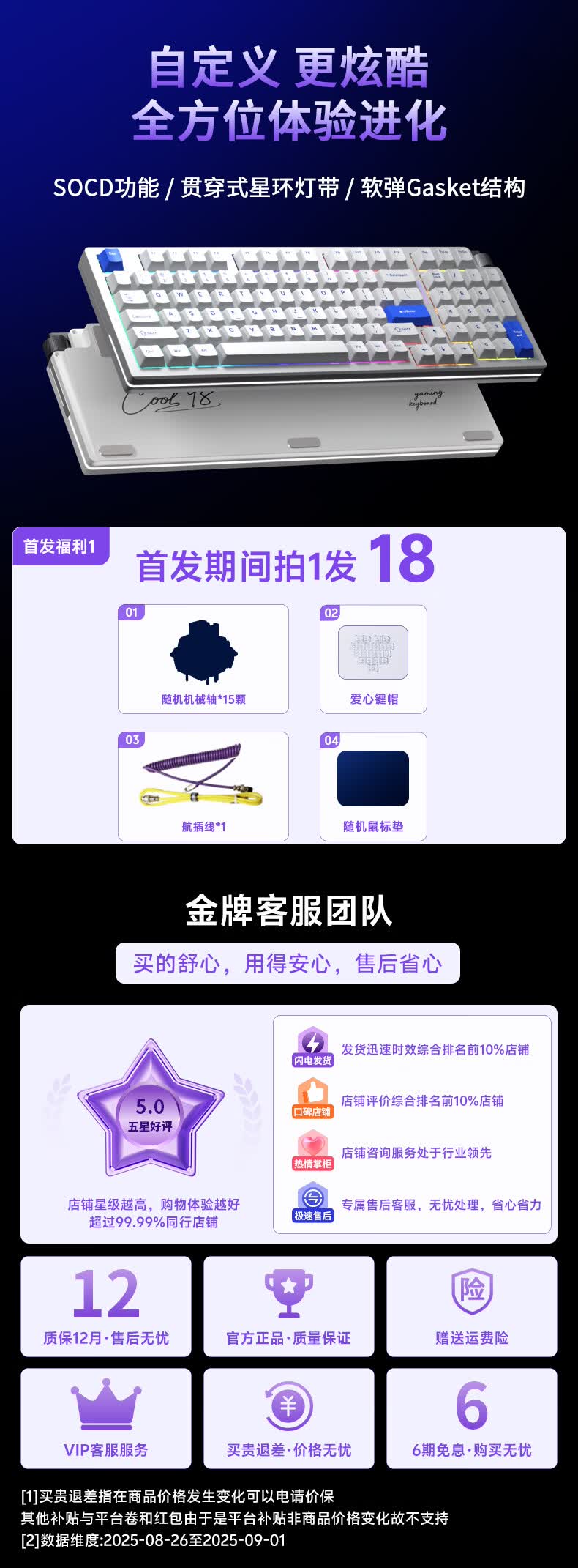 达尔优Cool98 电竞游戏机械键盘客制化三模无线星环灯带透明键盘98键三角洲无畏契约FPS网页双驱动热插拔 动力紫(桃C拿铁轴)