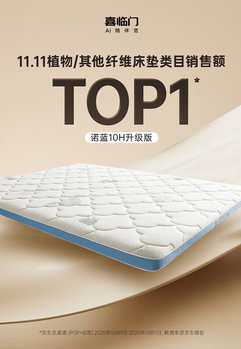喜临门母婴适用 诺蓝国补偏硬支撑脊椎黄麻 A类亲肤面料 双核抗菌防螨床 【0胶升级】诺蓝10H 【部分京仓闪发】 1.5*2米(注意尺寸)