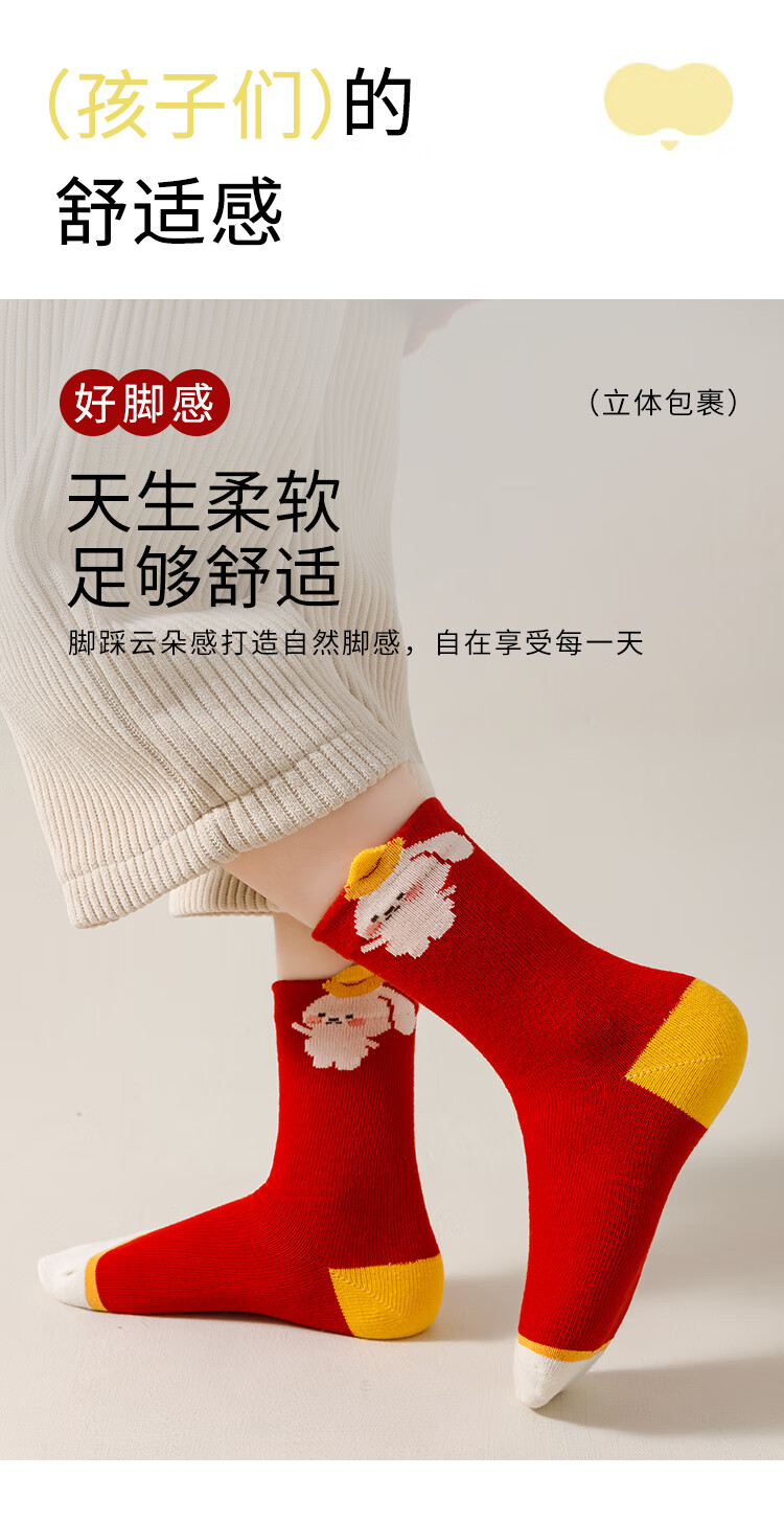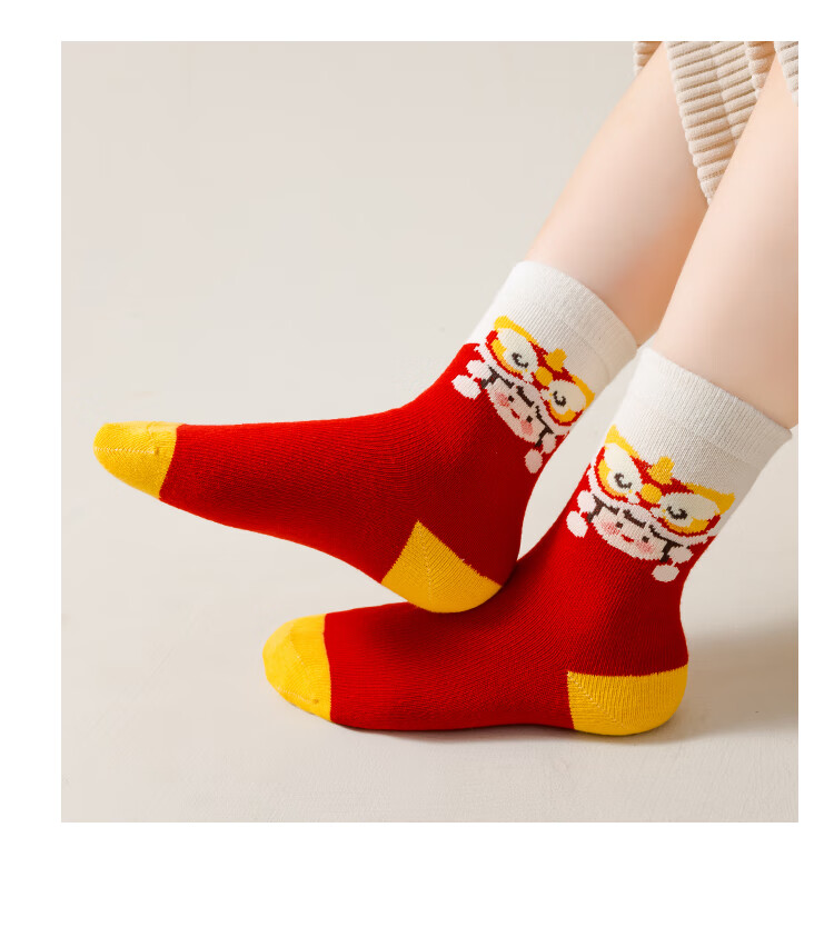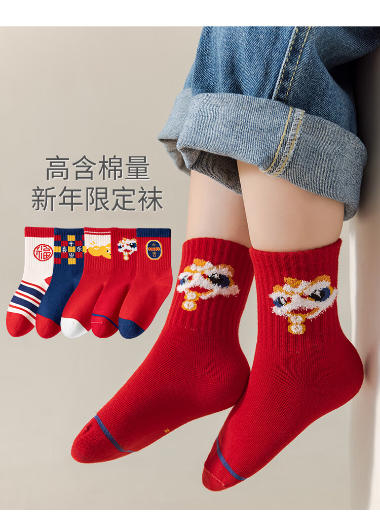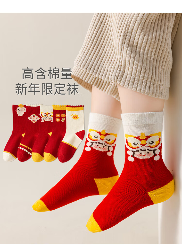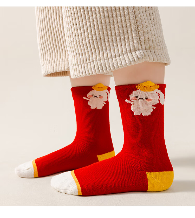 卡拉美拉(Caramella)儿童袜子女童男童秋冬款棉袜红色中筒袜亲肤透气可爱卡通休闲袜 男童红袜5色 5双 1-3岁 (S)