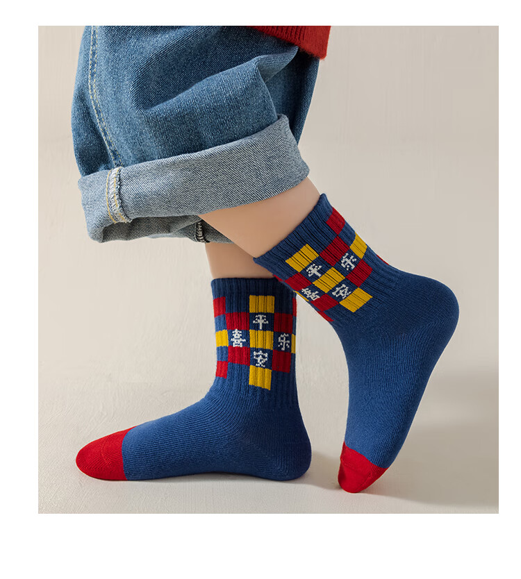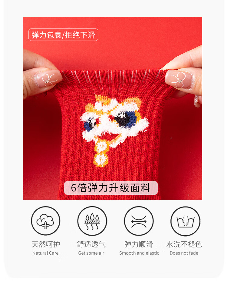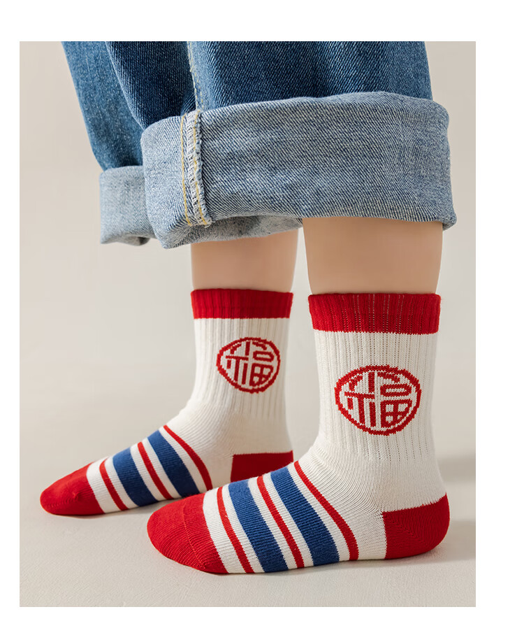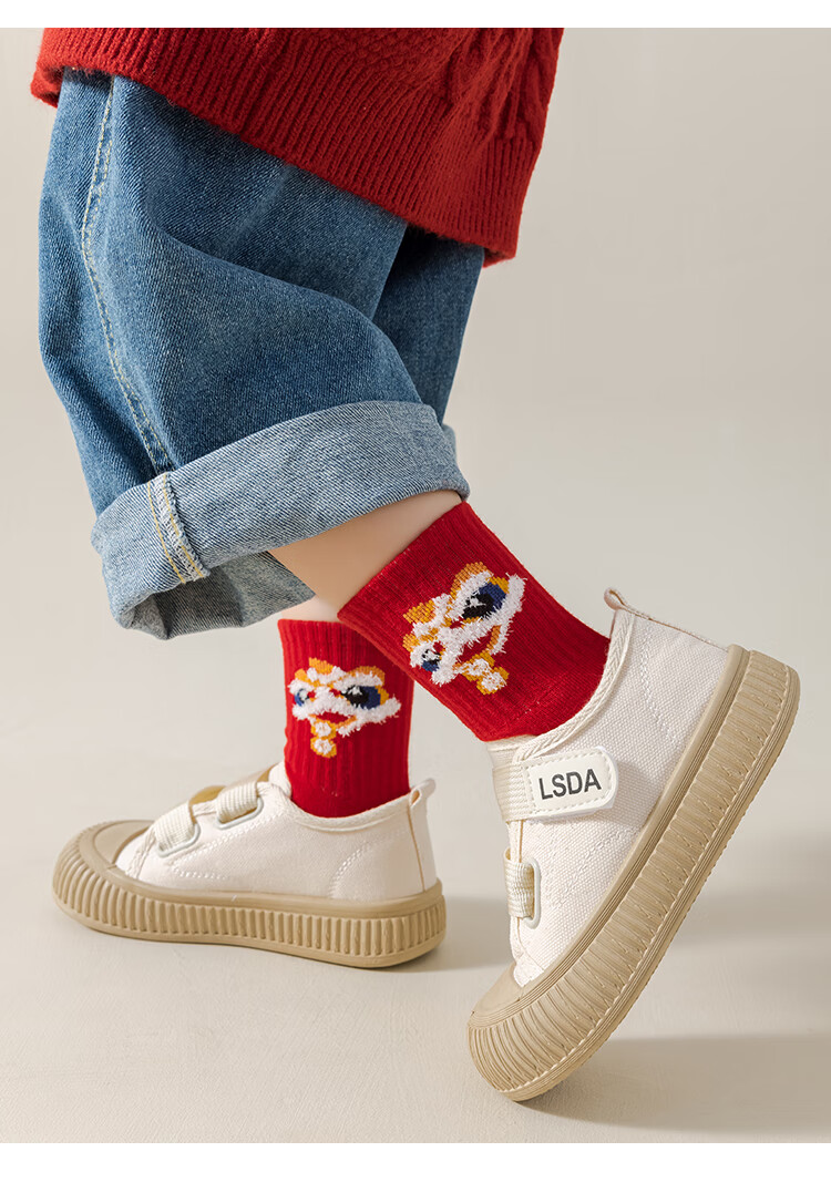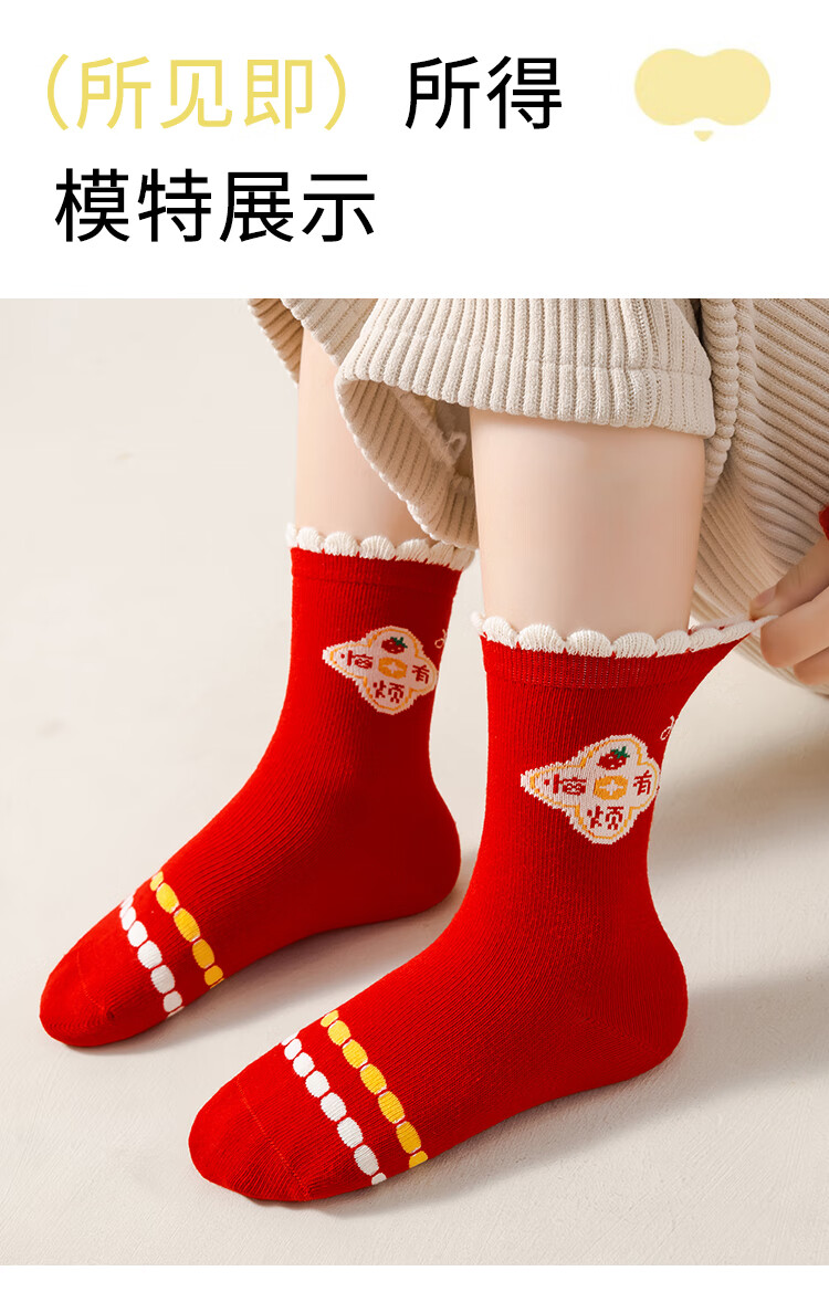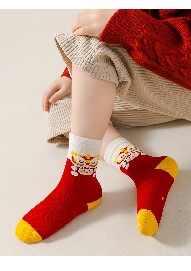 卡拉美拉(Caramella)儿童袜子女童男童秋冬款棉袜红色中筒袜亲肤透气可爱卡通休闲袜 男童红袜5色 5双 1-3岁 (S)